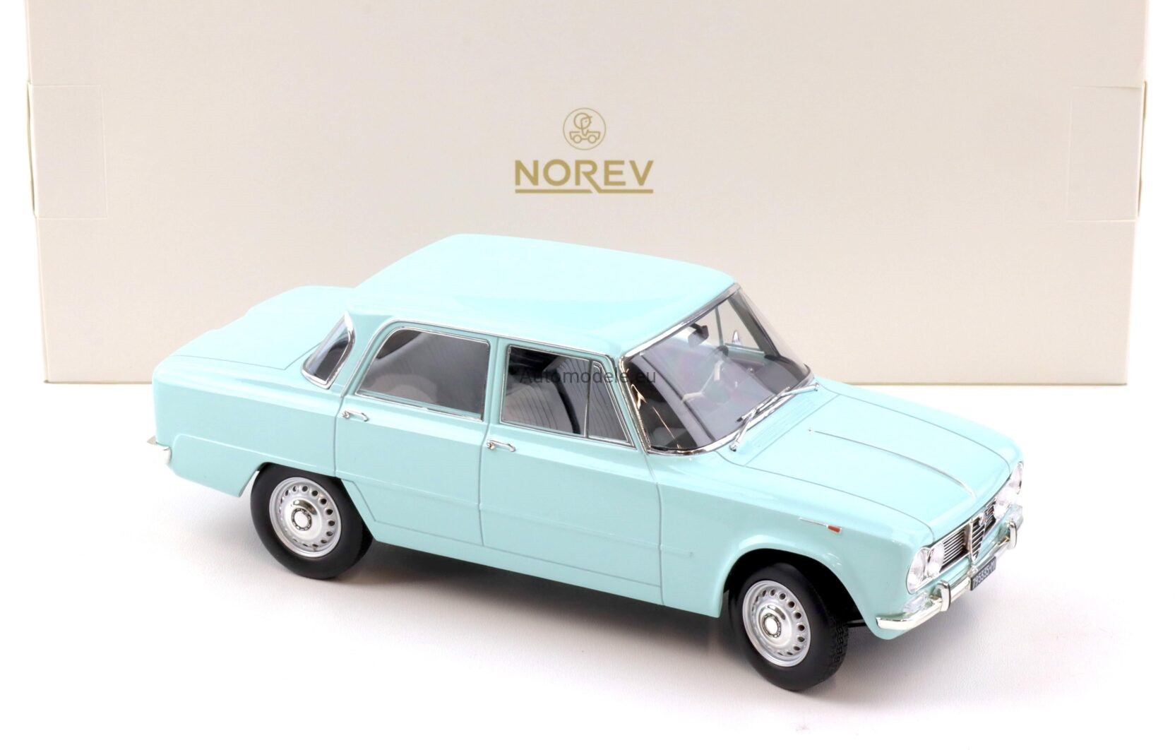 Kolekcjonerski metalowy model samochodu Alfa Romeo Giulia TI 105 Sedan z 1964 roku w skali 1/18 wyprodukowany przez firmę Norev
