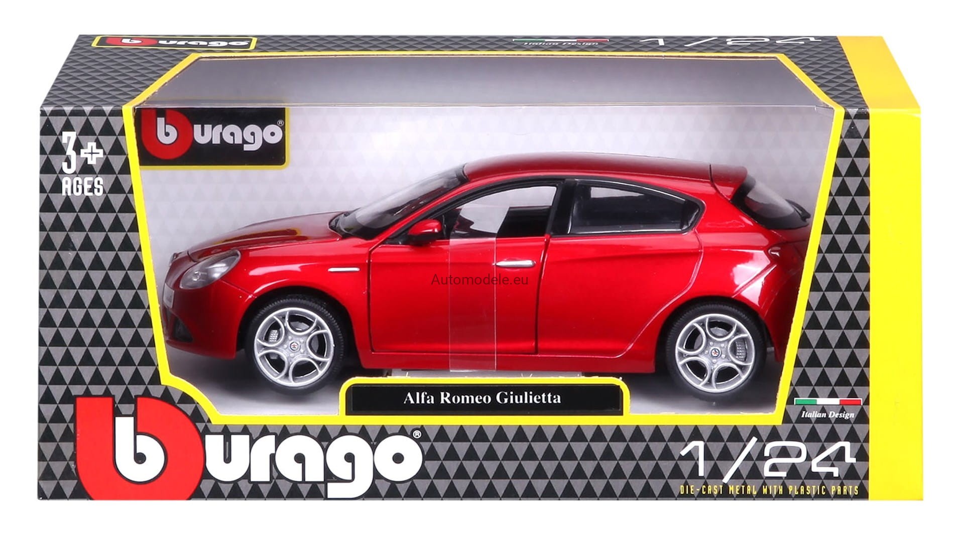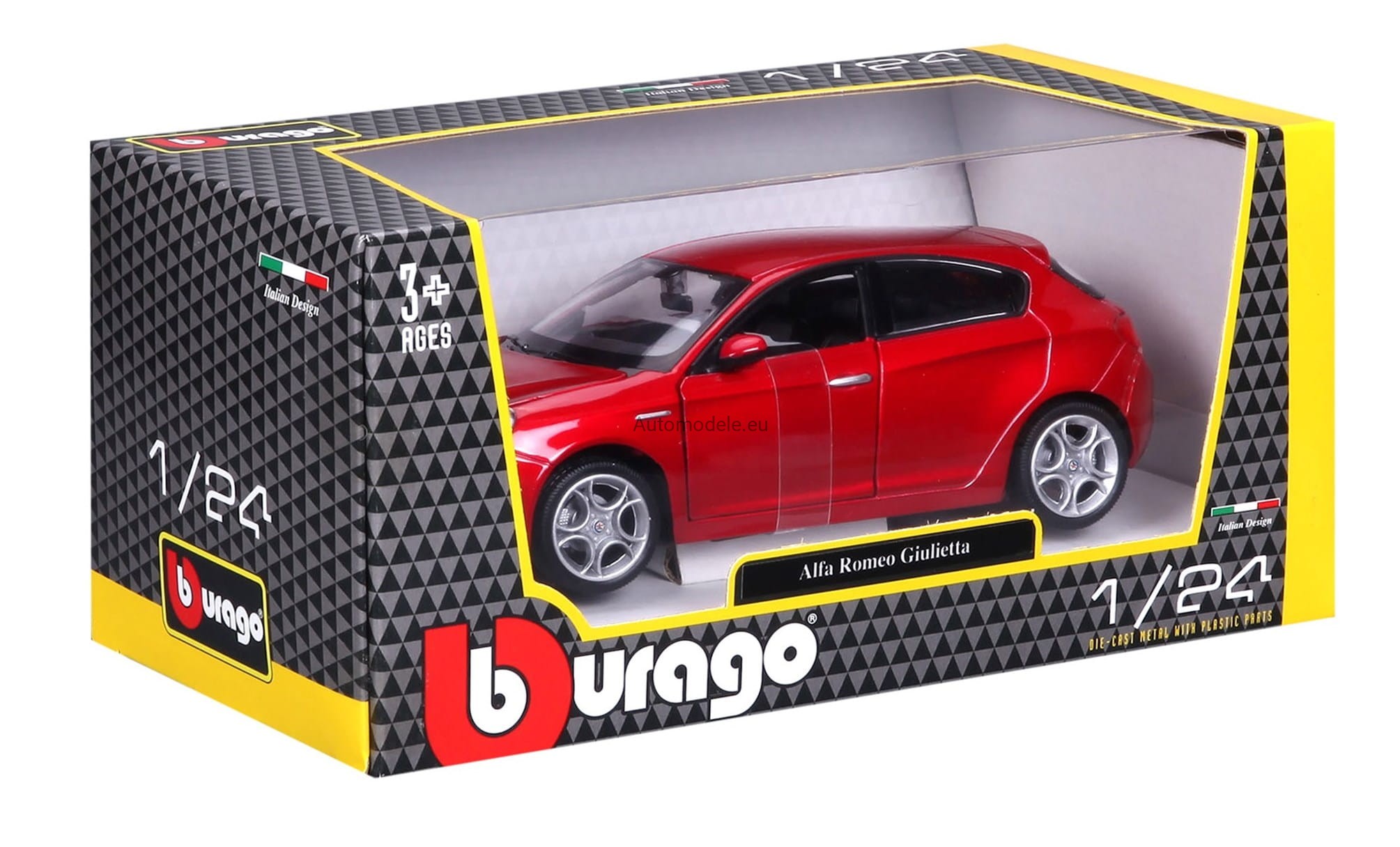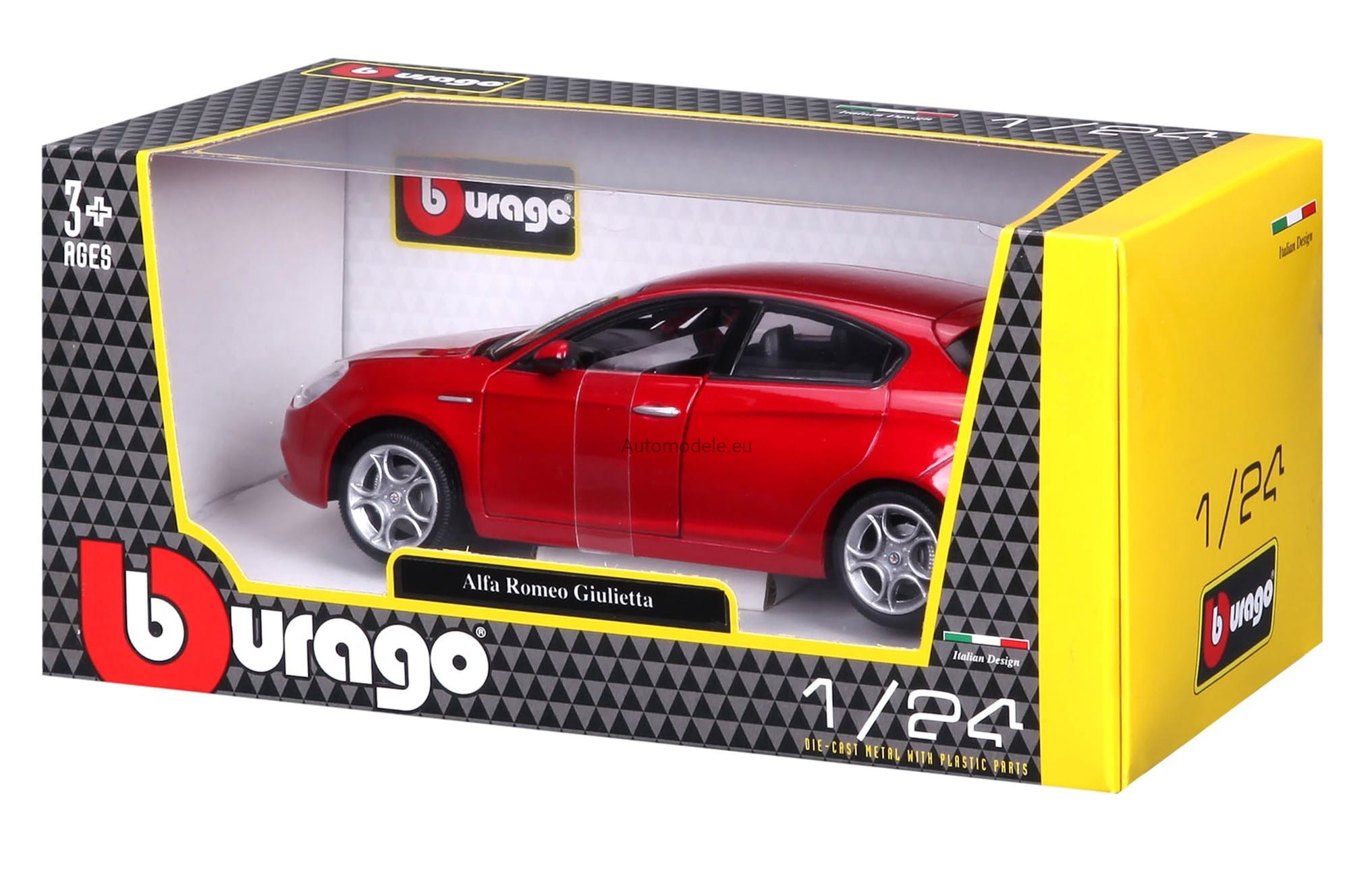 Model samochodu Alfa Romeo Giulietta w skali 1:24 od Bburago. Numer katalogowy: 22128Rd
