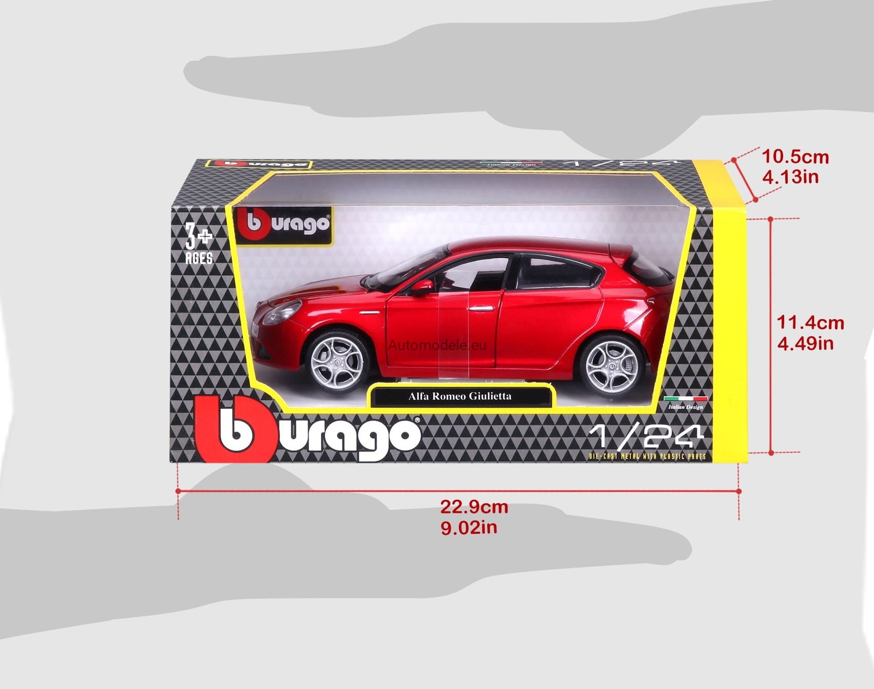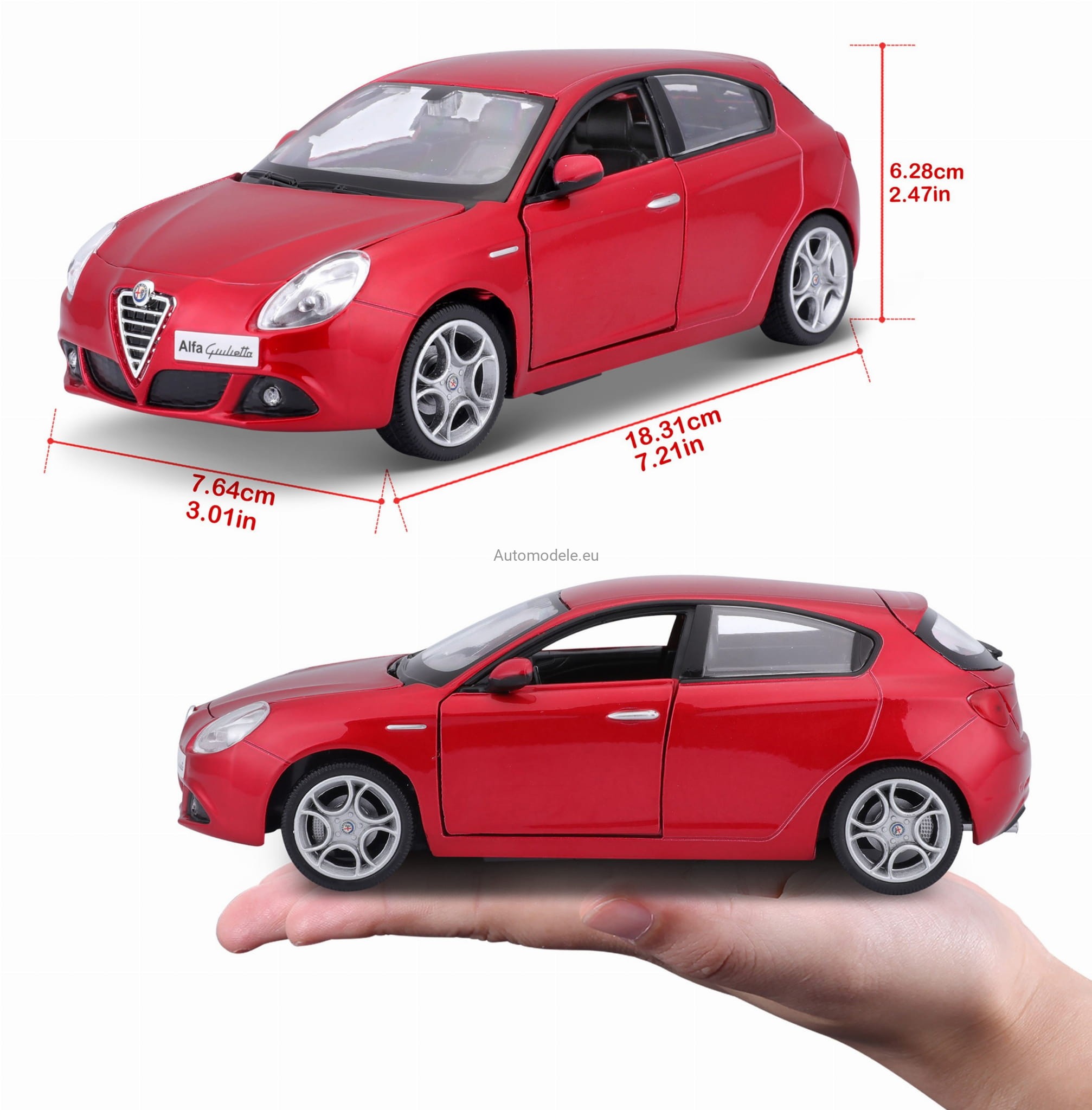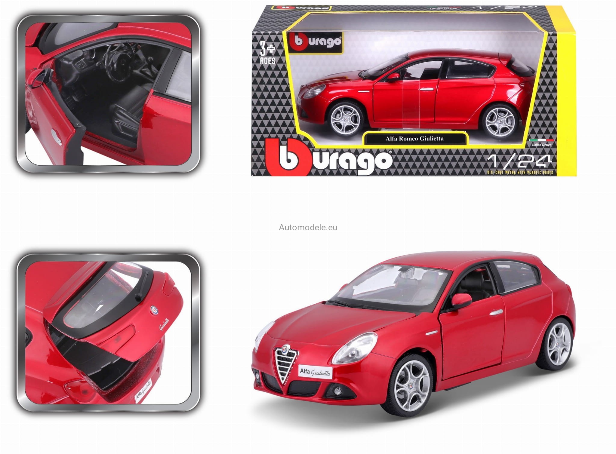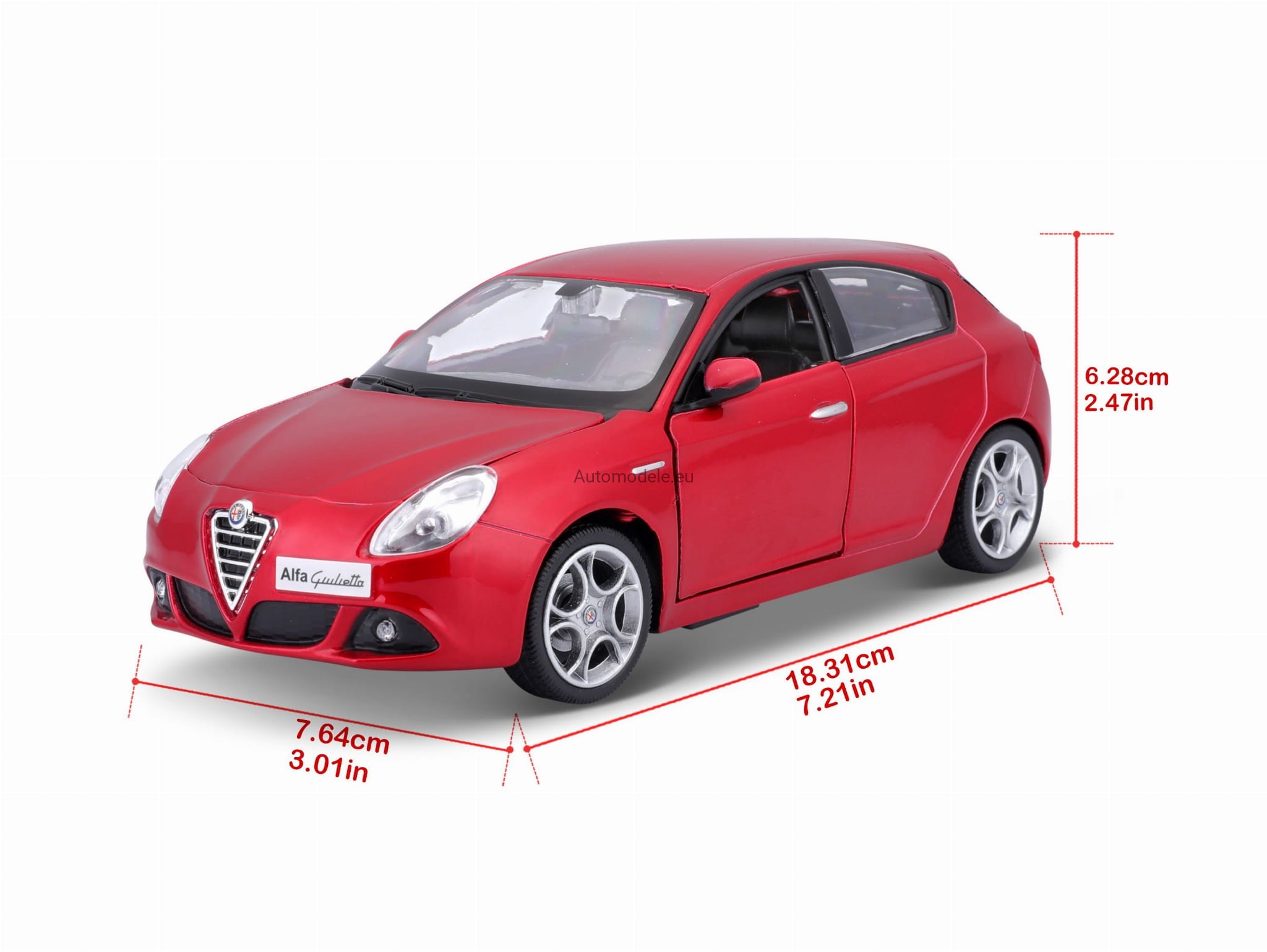 Model samochodu Alfa Romeo Giulietta w skali 1:24 od Bburago. Numer katalogowy: 22128Rd