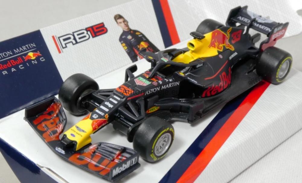 Model bolidu Aston Martin Red Bull RB15 #33 Max Verstappen 2019 Formula 1 F1 w skali 1:43 od Bburago. Numer katalogowy: 38139 / 38039 #33