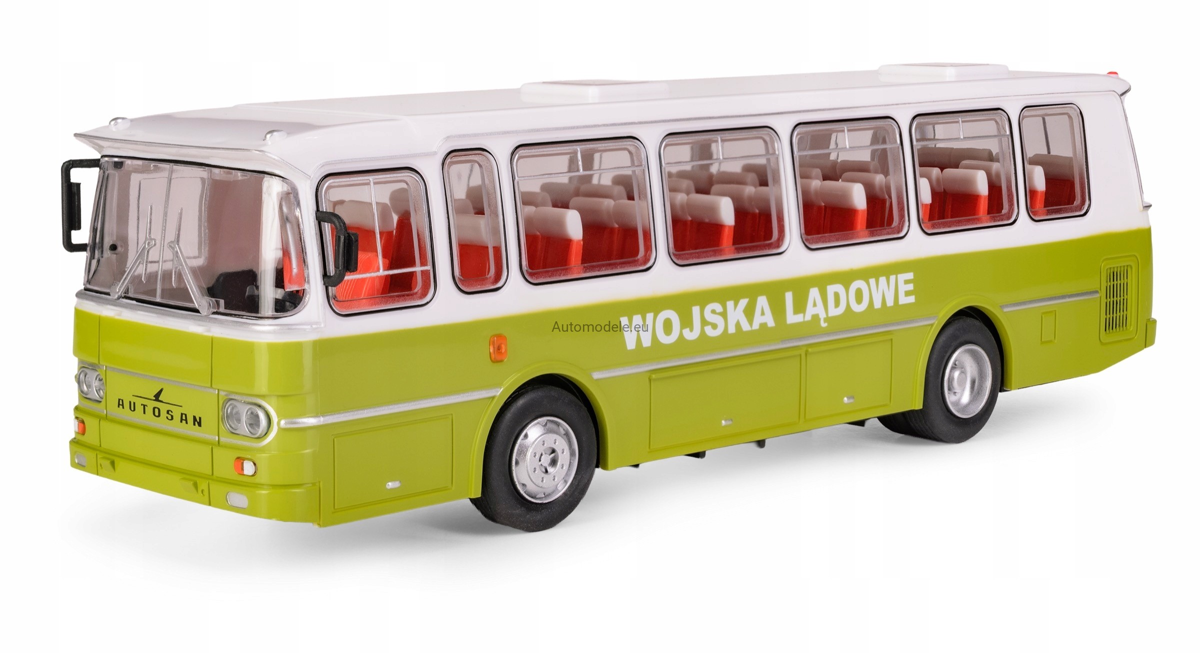 Model przedstawia autobus produkowany przez Autosan – jednego z najważniejszych producentów autobusów w Polsce, w specjalnym wojskowym wydaniu.