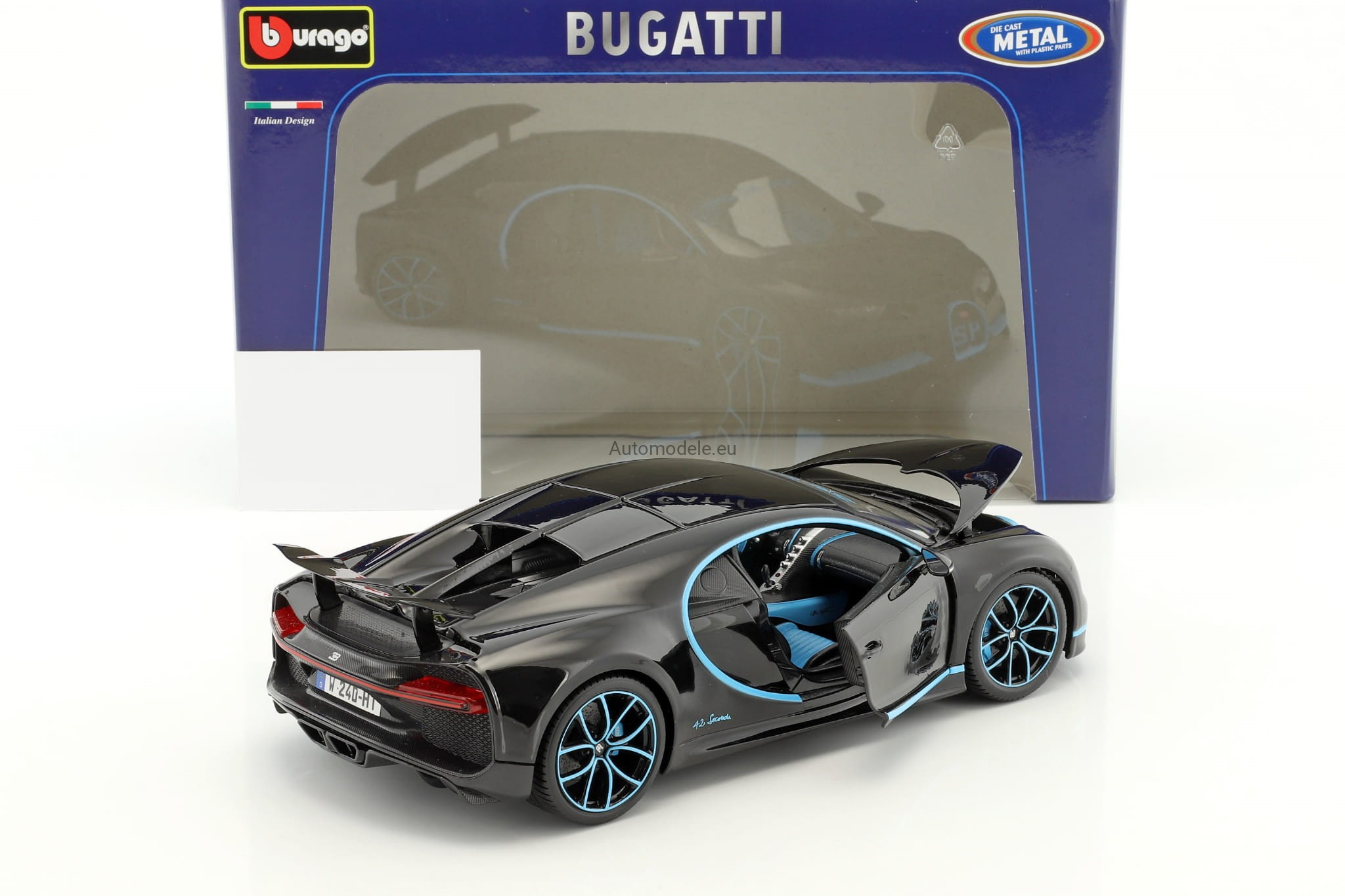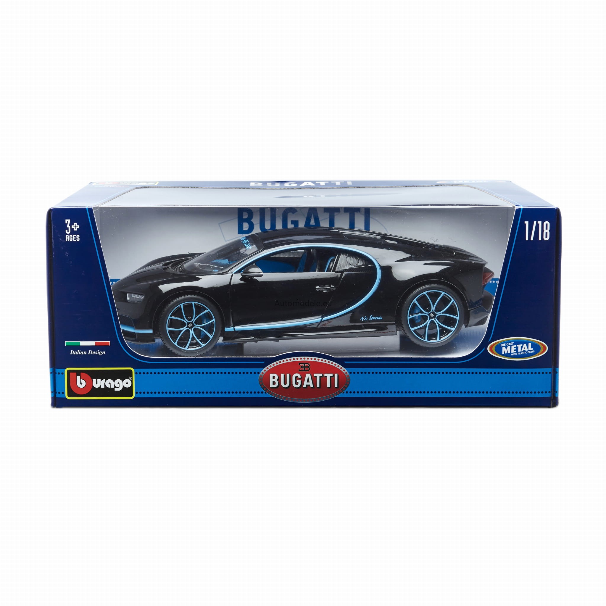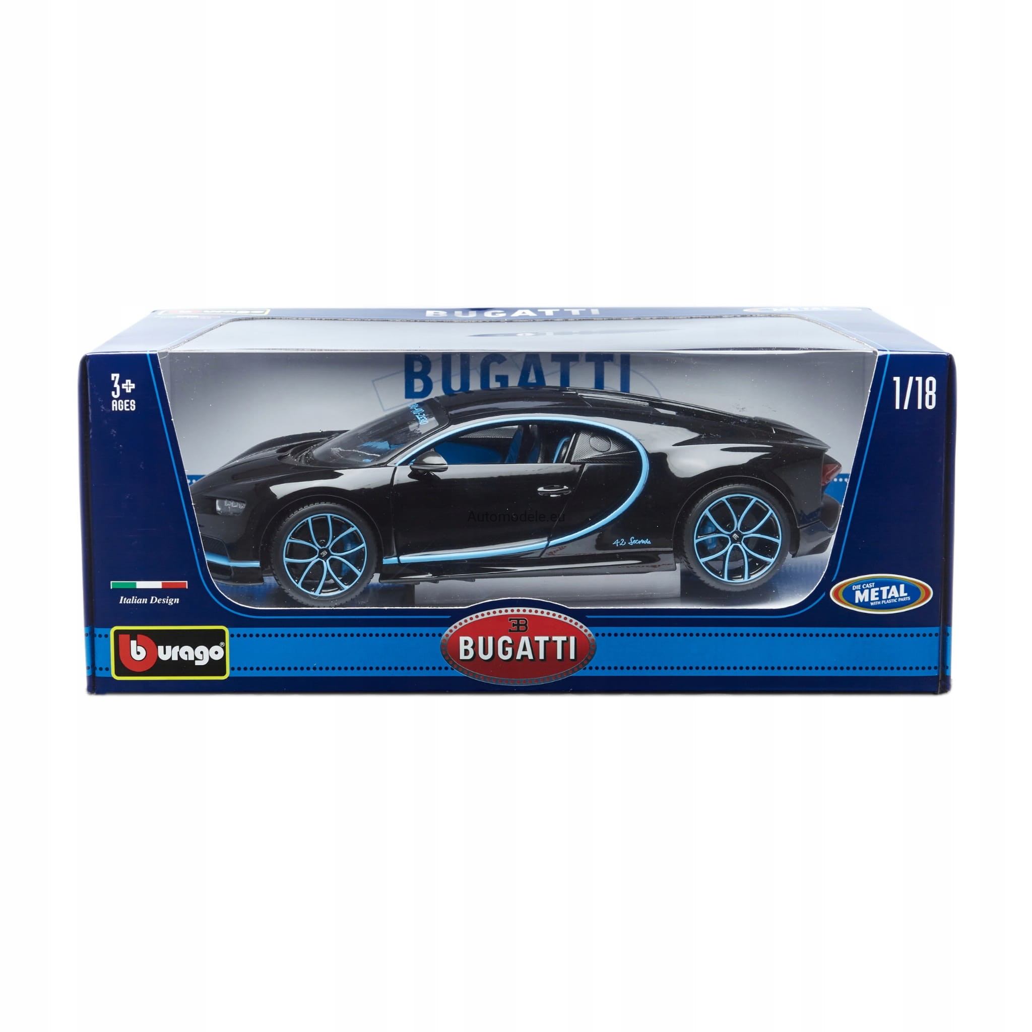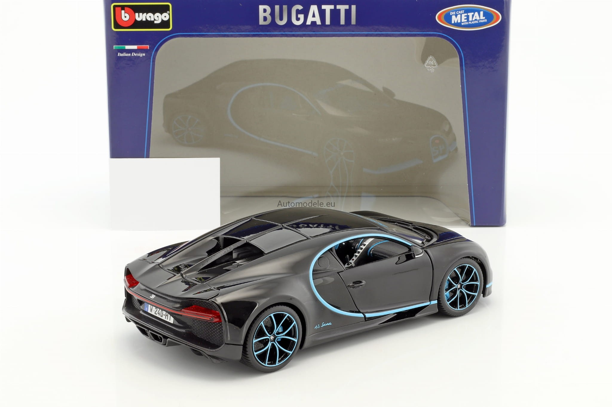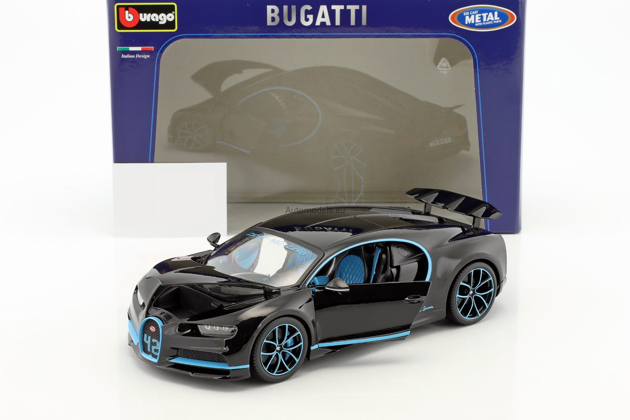 Model samochodu Bugatti Chiron World Record Car #42 J.-P. Montoya z 2017 roku w skali 1:18 od BBurago. Numer katalogowy: 11040Bk
