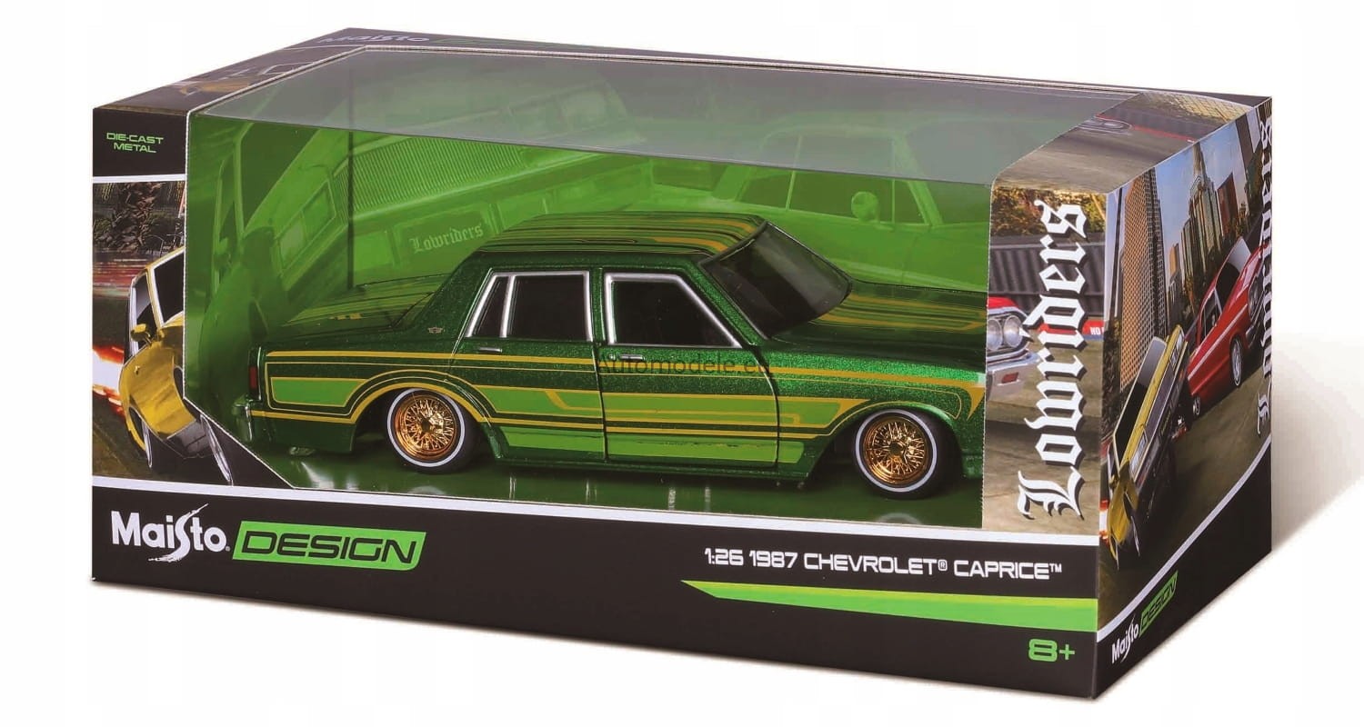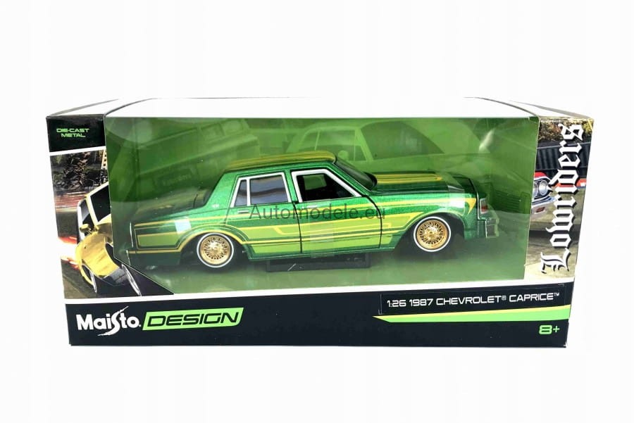 Kolekcjonerski metalowy model samochodu Chevrolet Caprice Lowrider z 1987 roku w skali 1/26 od Maisto