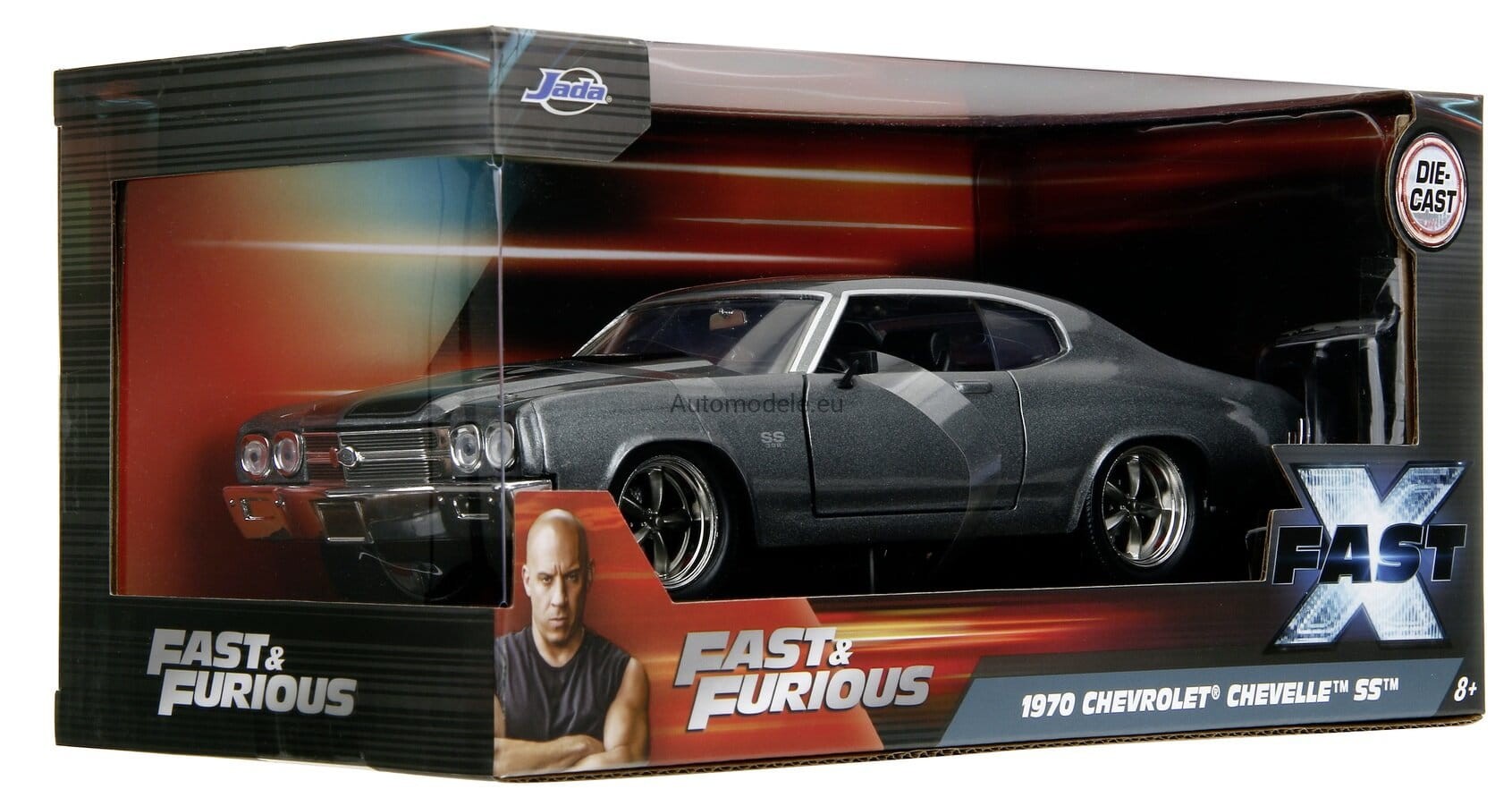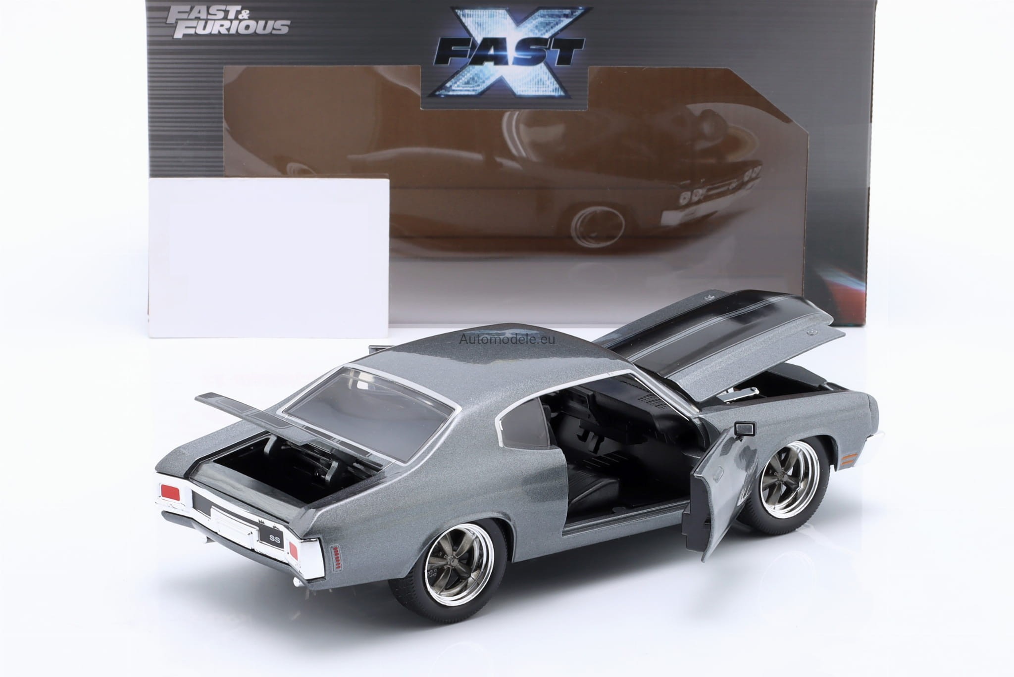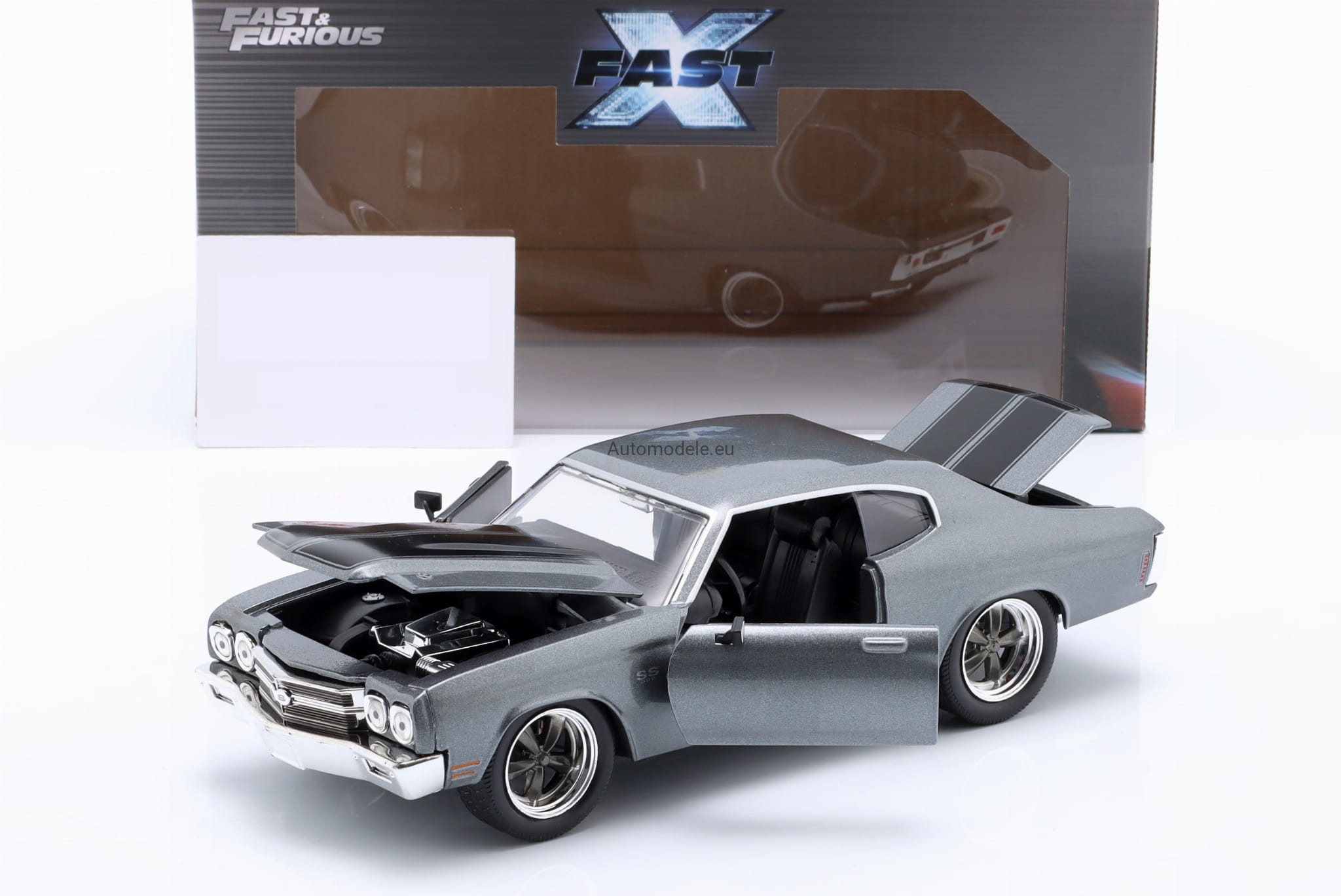 Kolekcjonerski metalowy model samochodu Chevrolet Chevelle SS 1970 Fast X (Fast & Furious 10) Grey Metallic w skali 1/24 wyprodukowany przez znaną, cenioną i renomowaną firmę Jada Toys