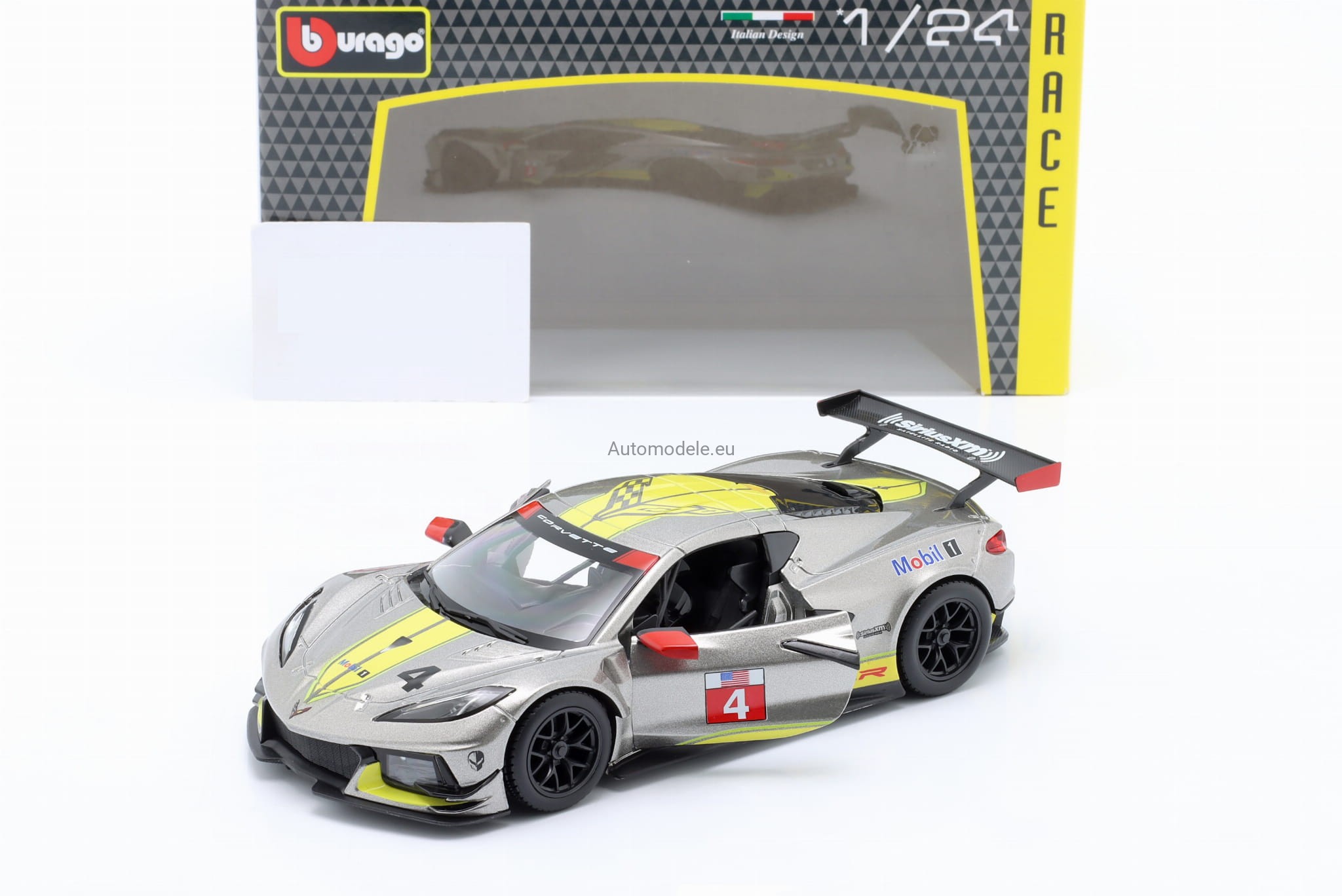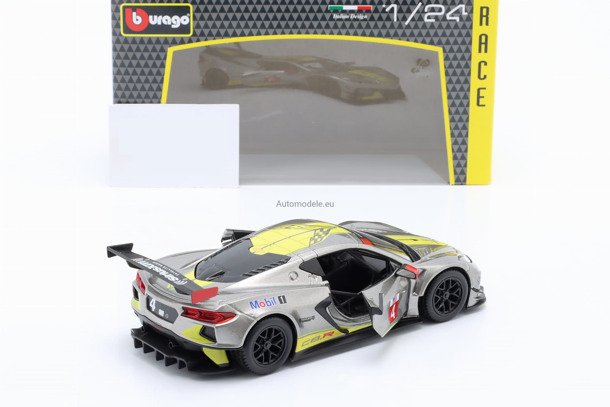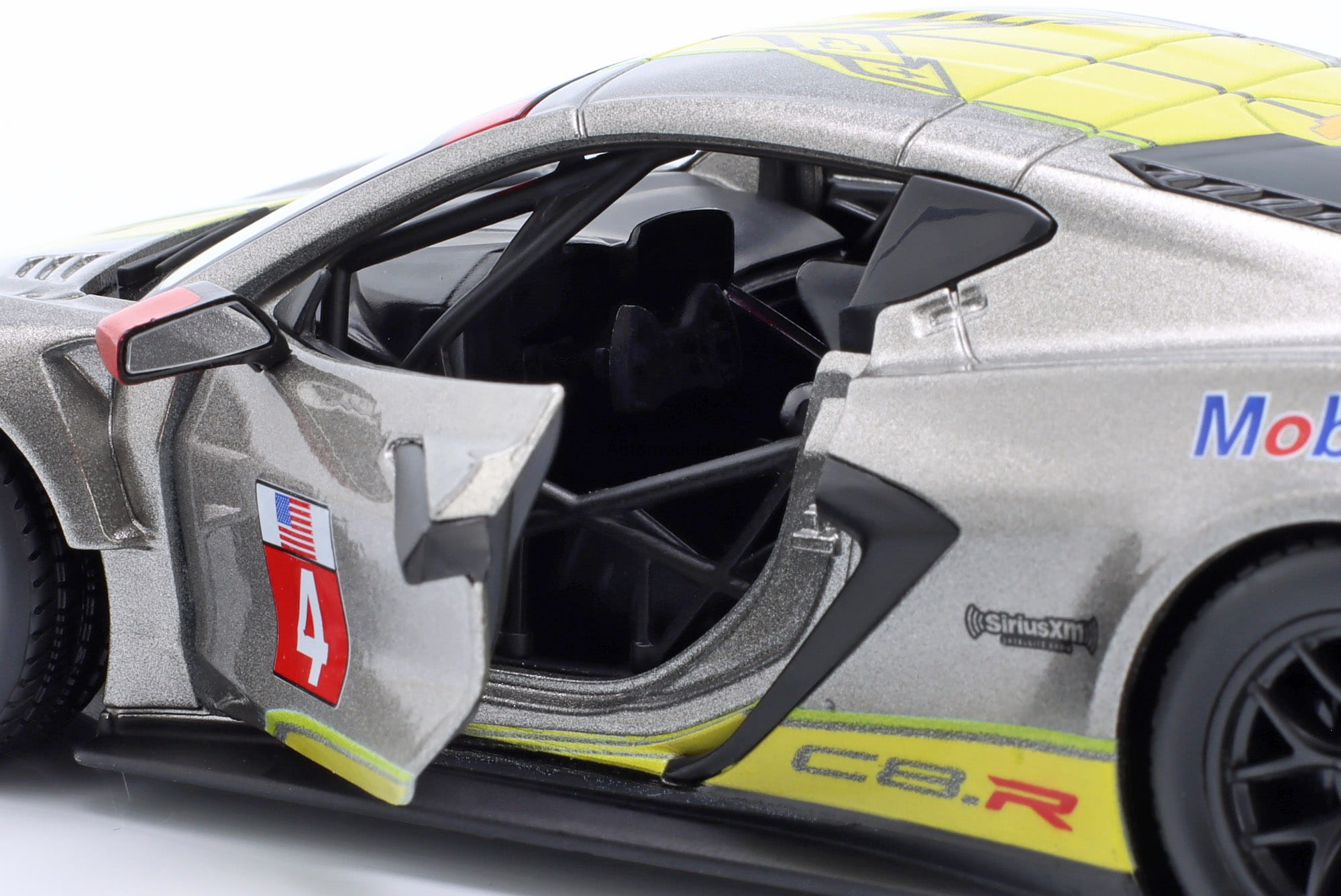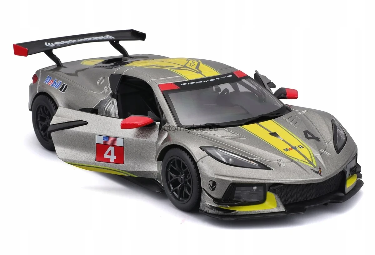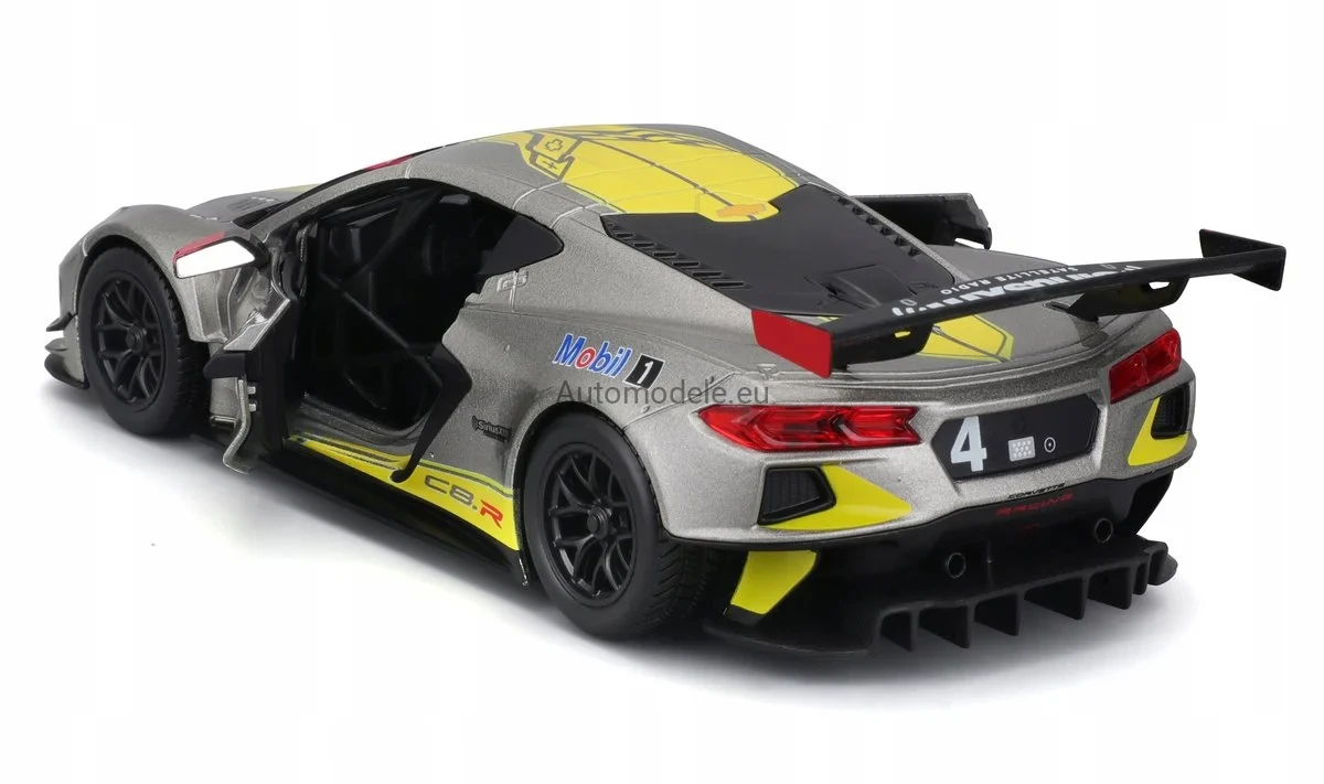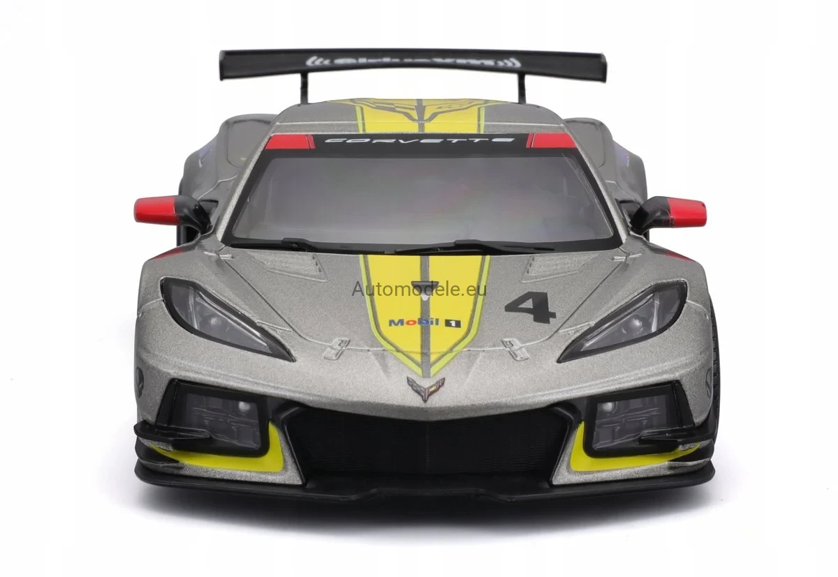 Kolekcjonerski metalowy model samochodu Chevrolet Corvette C8.R C8R 6.2L V8 #4 Grigia e Gialla Presentation Car 2020 roku Racing Race Series w skali 1:24 od Bburago