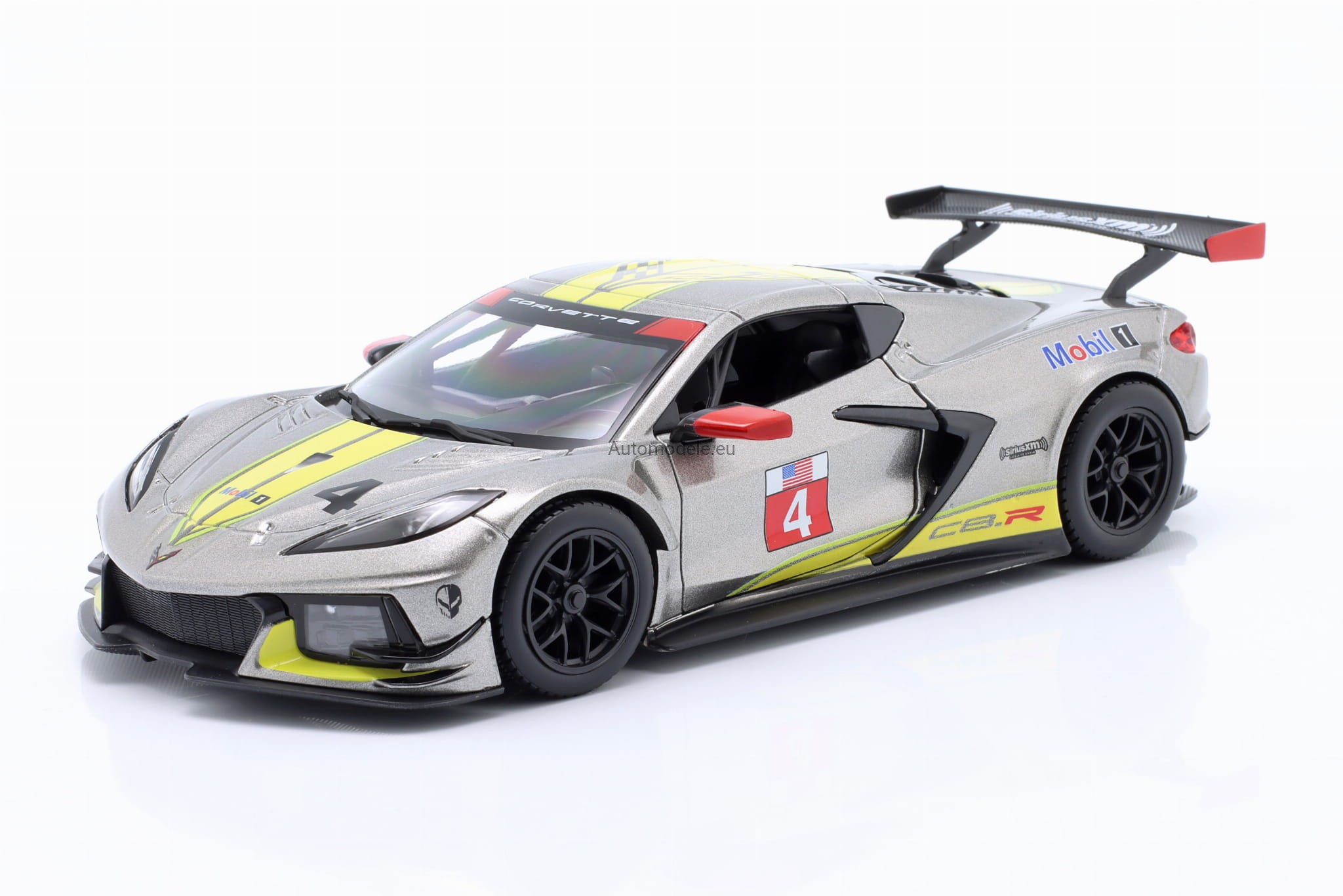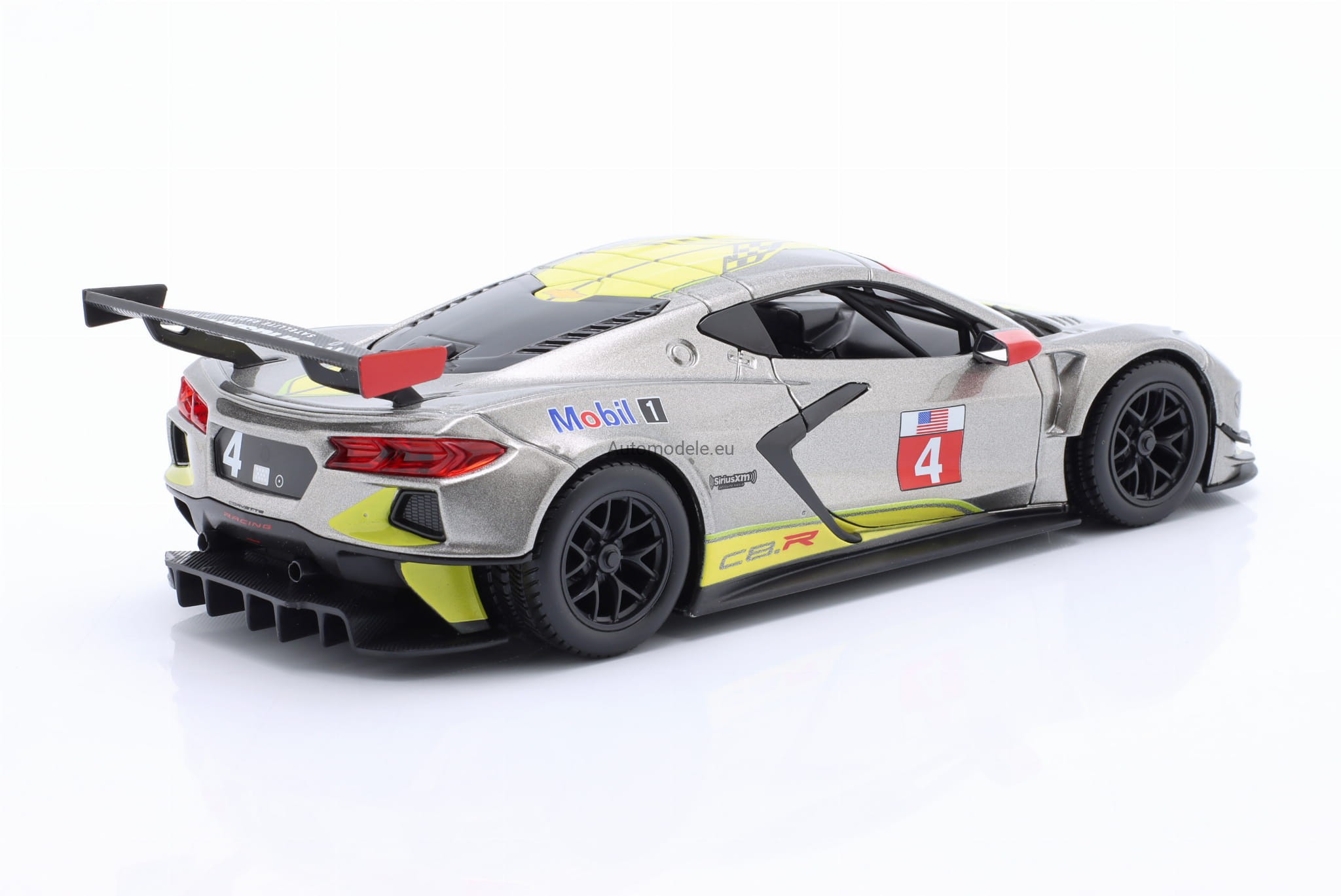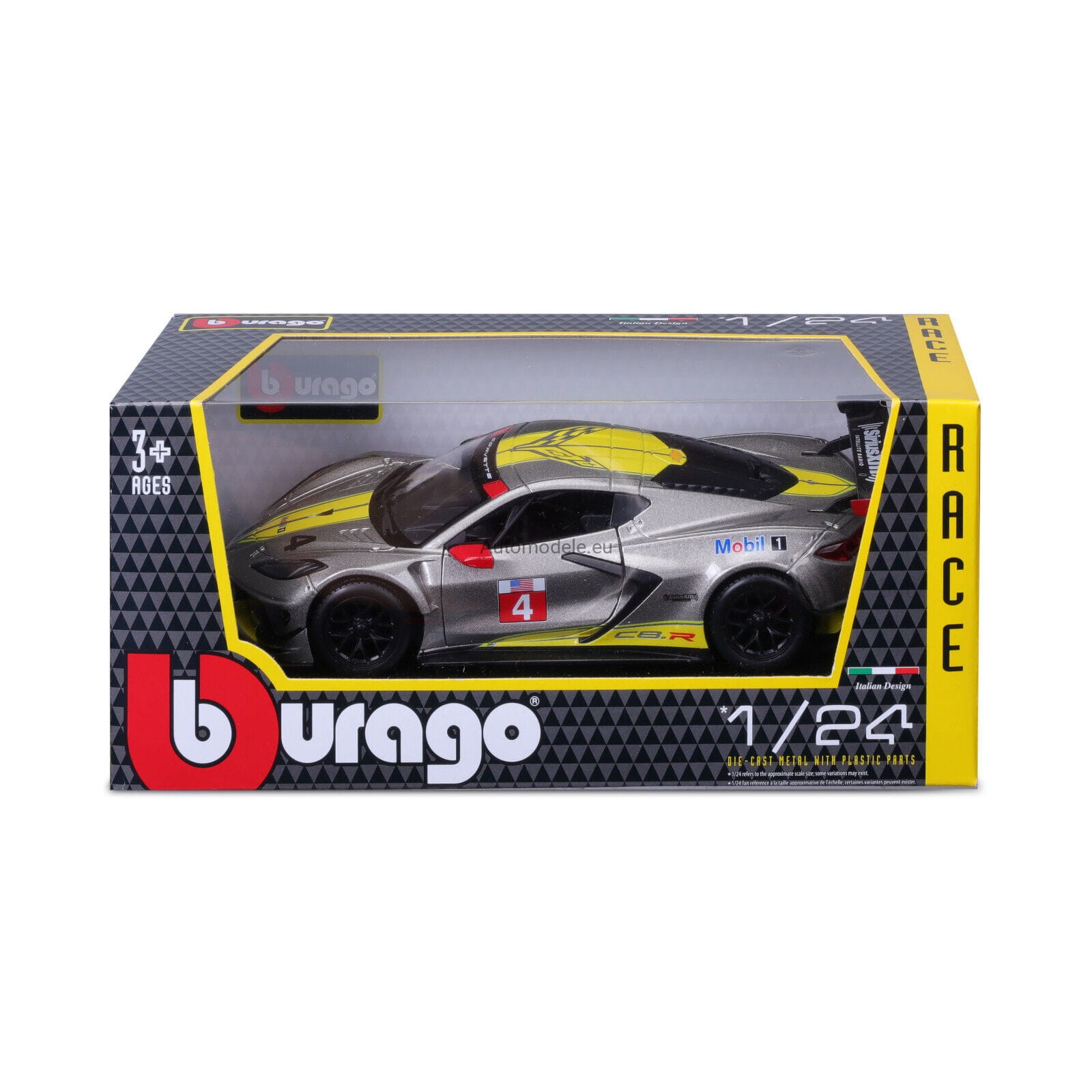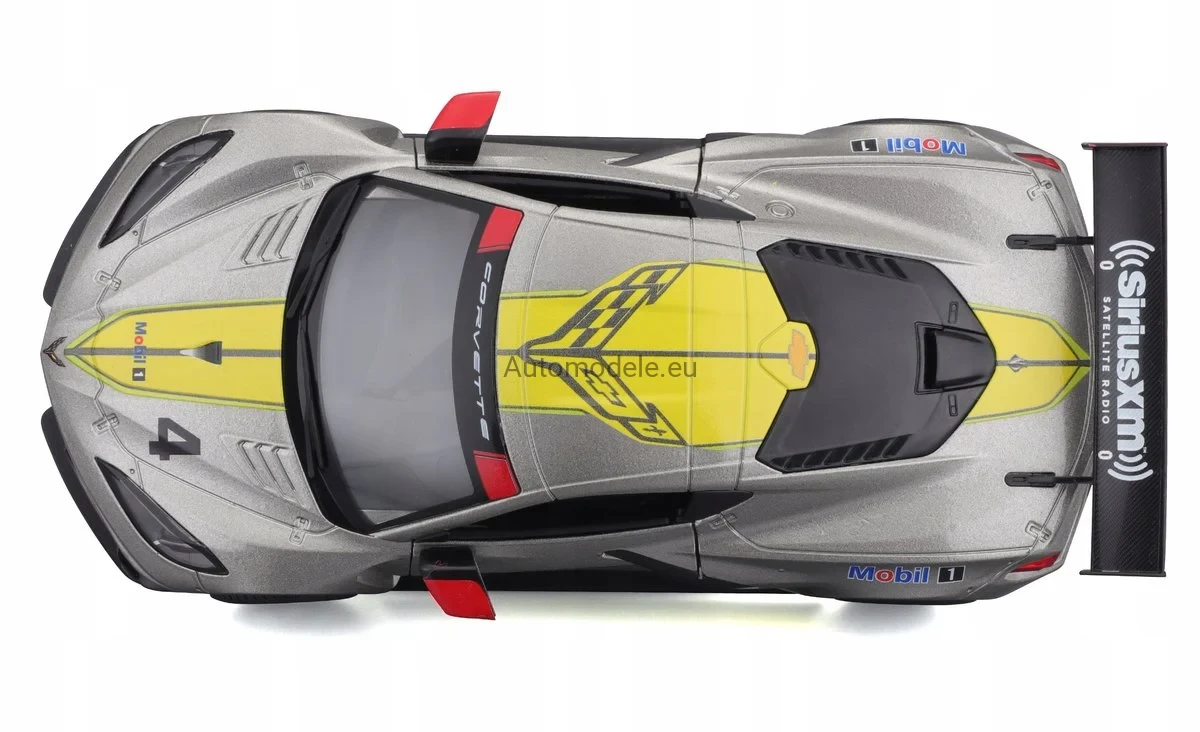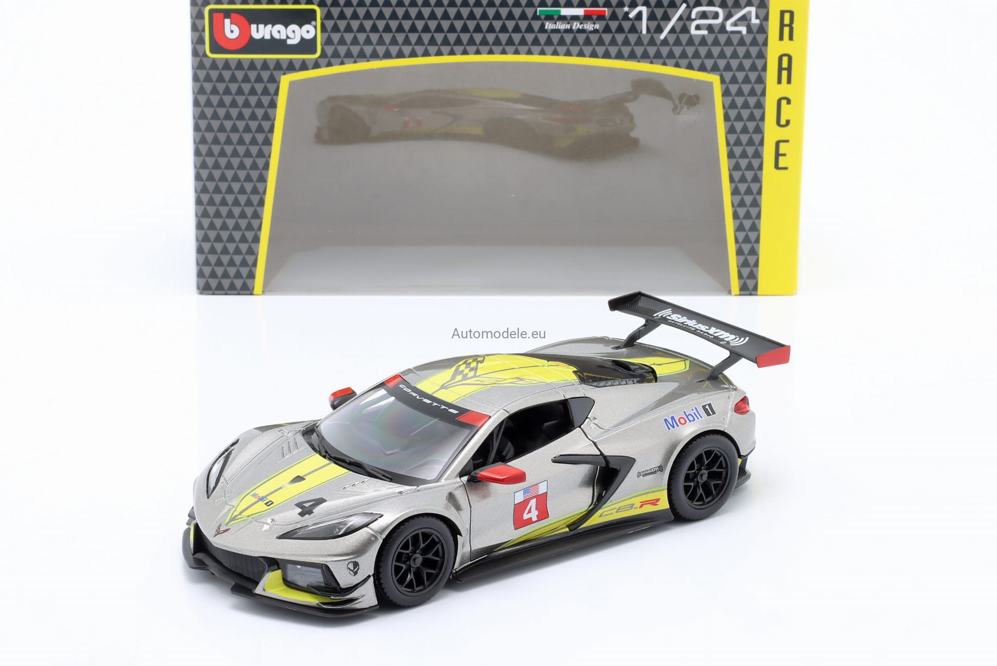 Kolekcjonerski metalowy model samochodu Chevrolet Corvette C8.R C8R 6.2L V8 #4 Grigia e Gialla Presentation Car 2020 roku Racing Race Series w skali 1:24 od Bburago