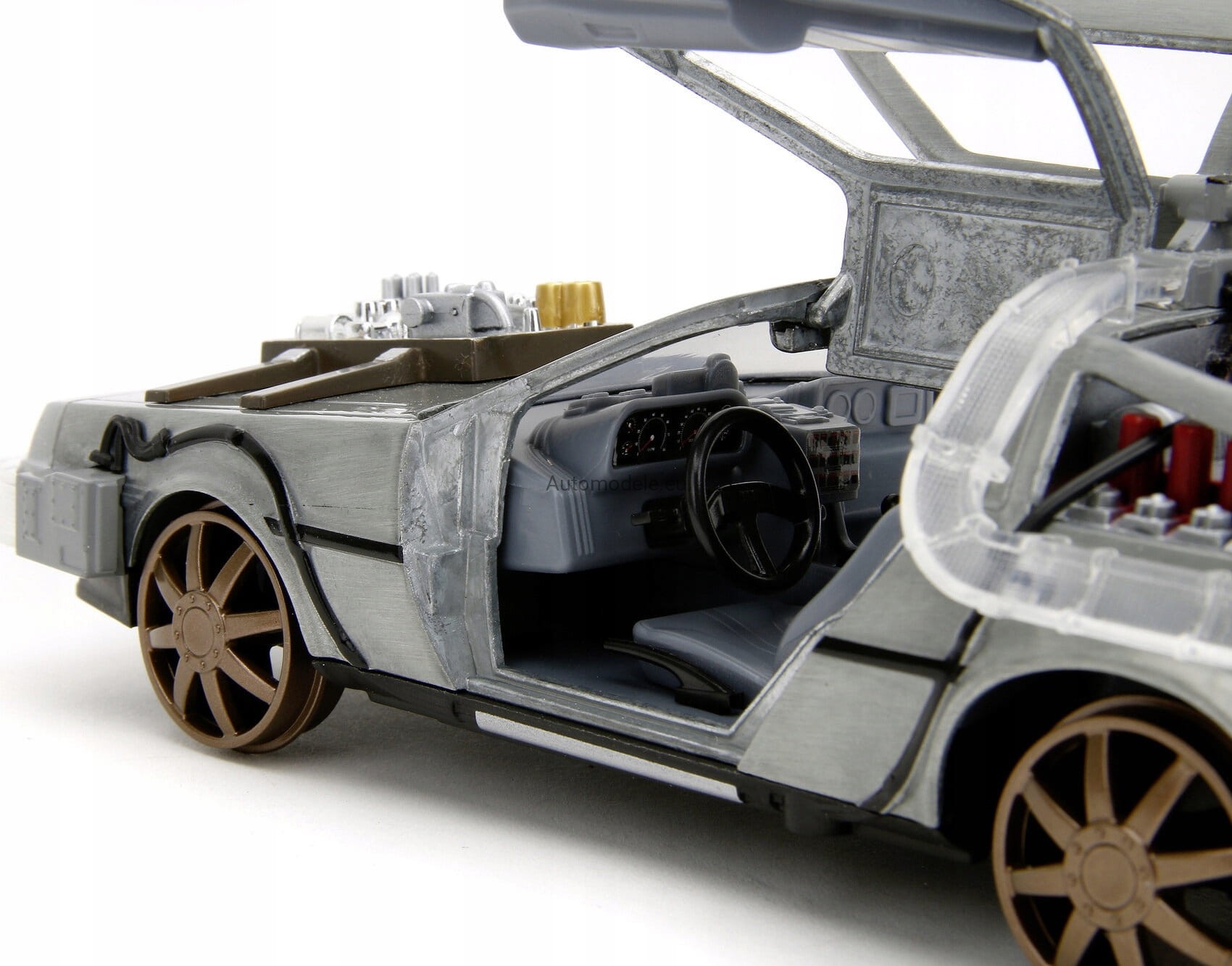 Kolekcjonerski metalowy model samochodu DeLorean De Lorean DMC-12 Railroad Time Machine Back to the Future III w skali 1/24 wyprodukowany przez znaną, cenioną i renomowaną firmę Jada Toys