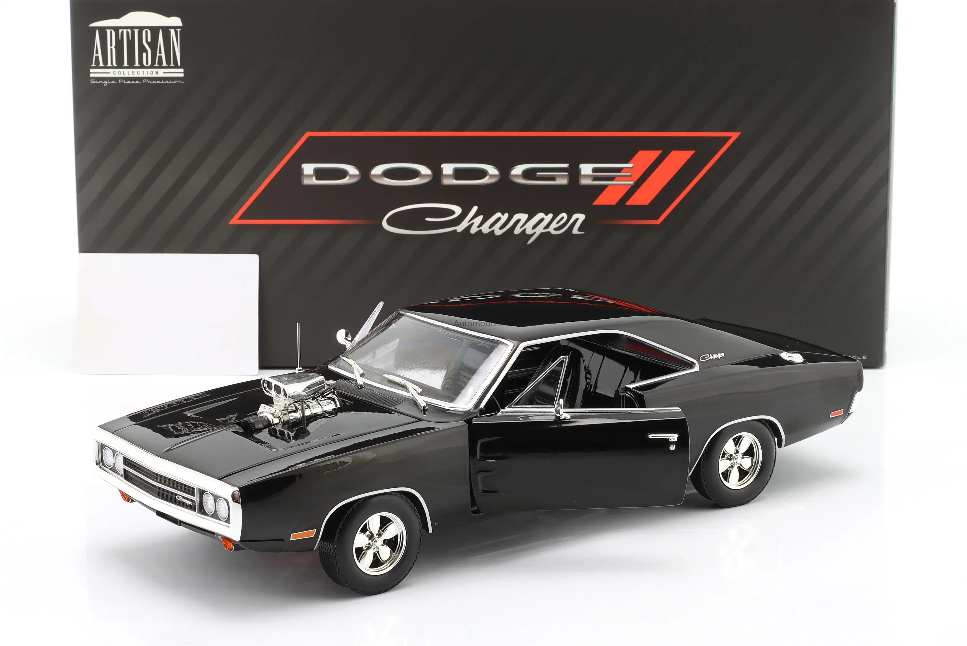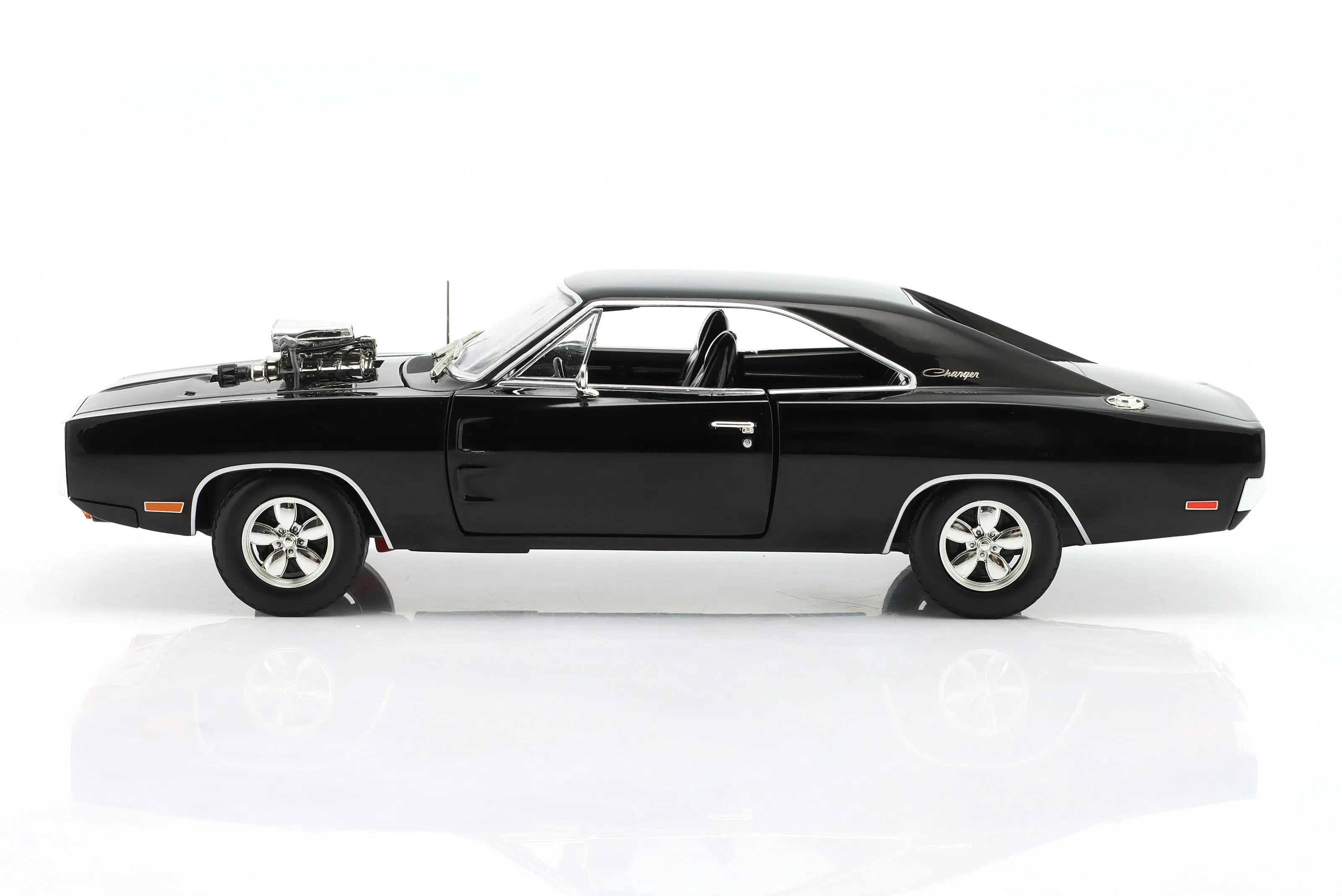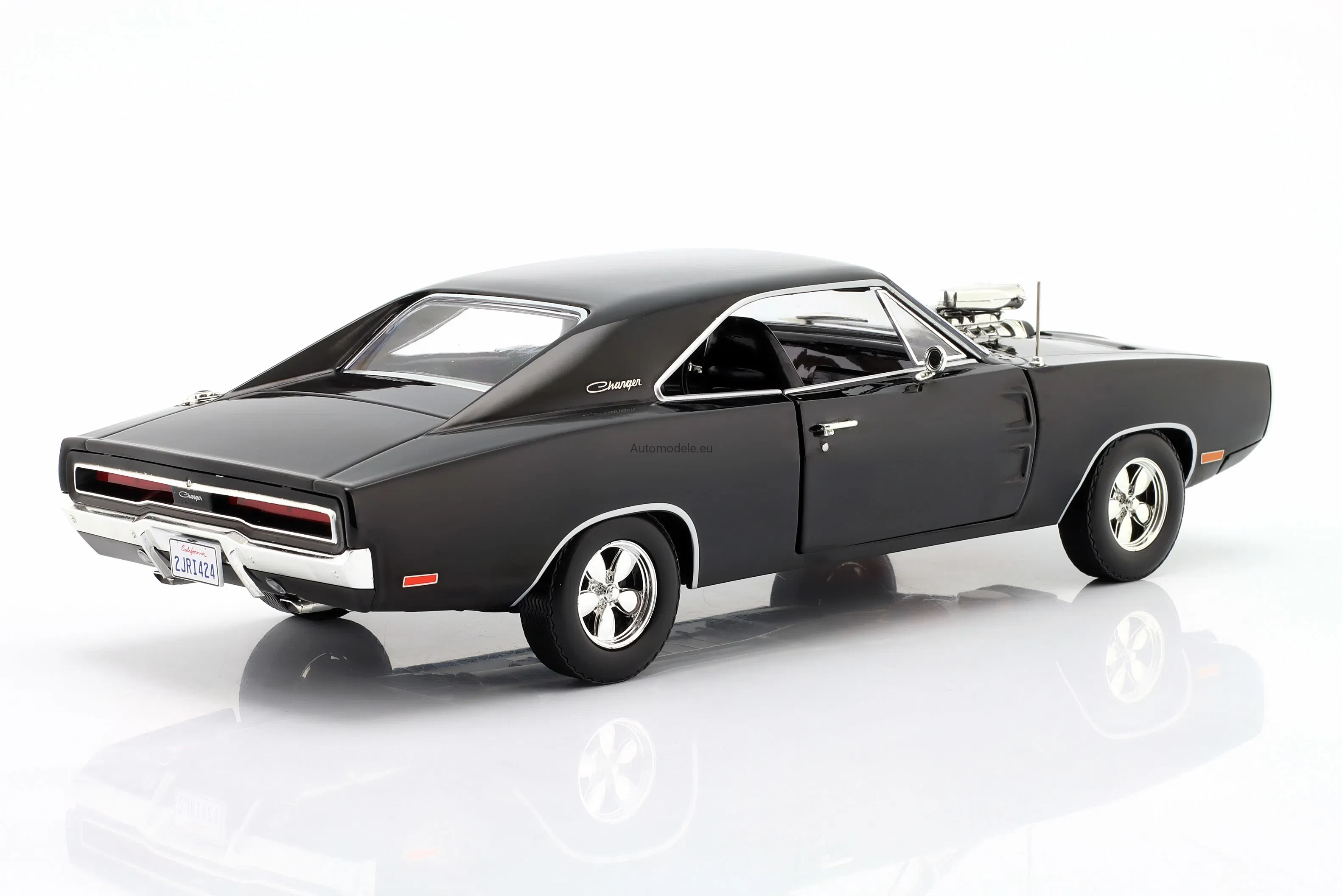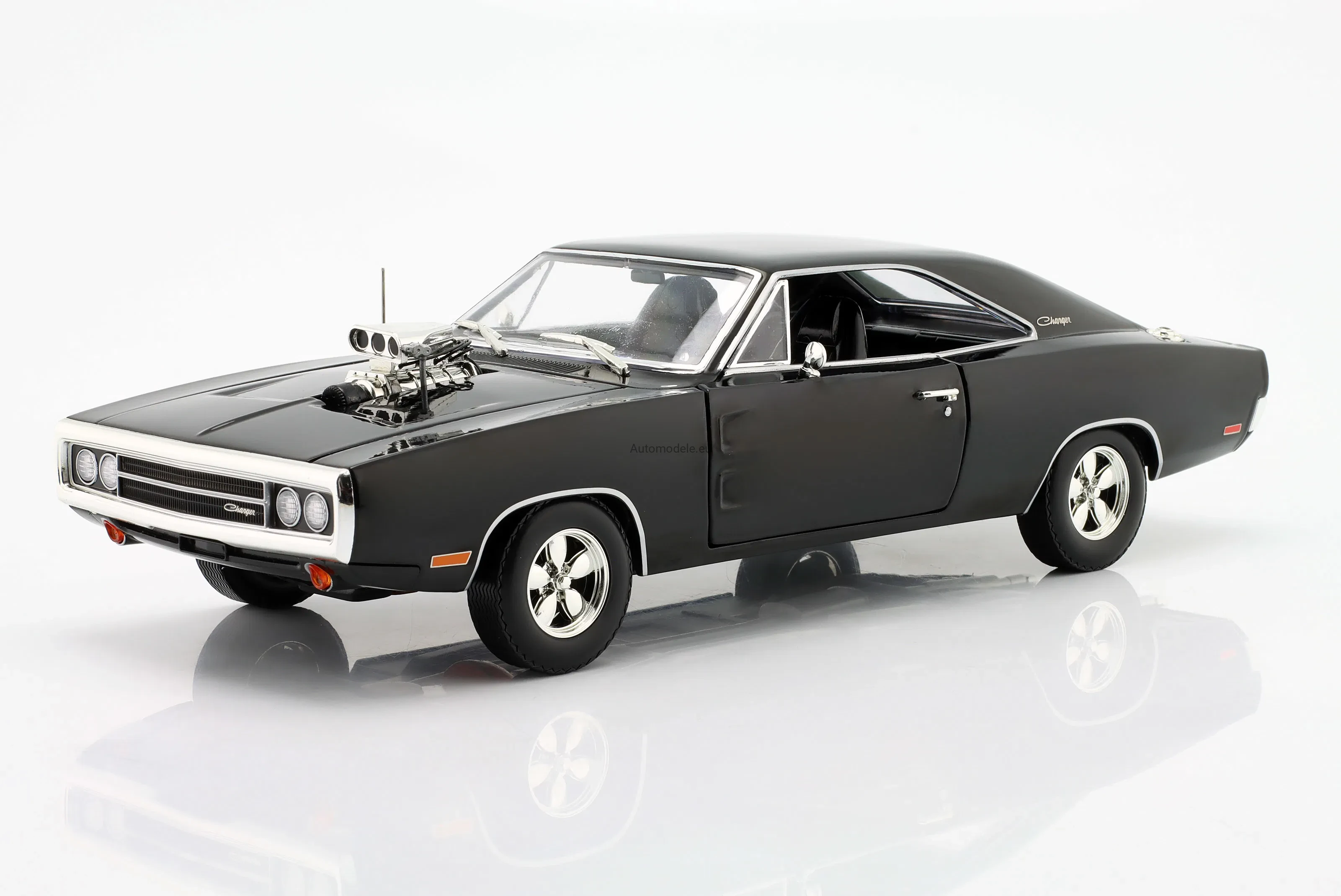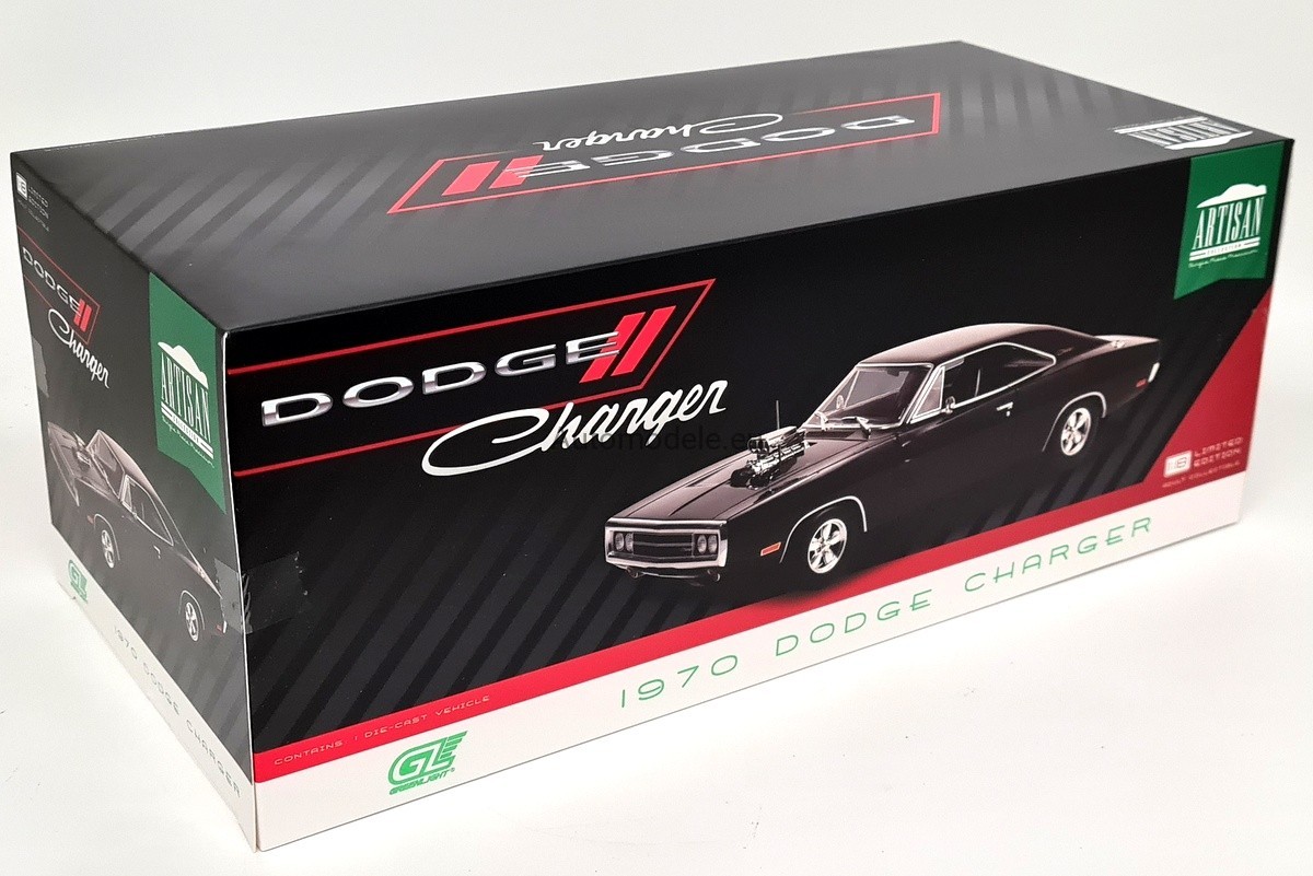 Kolekcjonerski metalowy model samochodu Dodge Charger with Blown Engine z 1970 roku w skali 1/18 wyprodukowany przez firmę Greenlight
