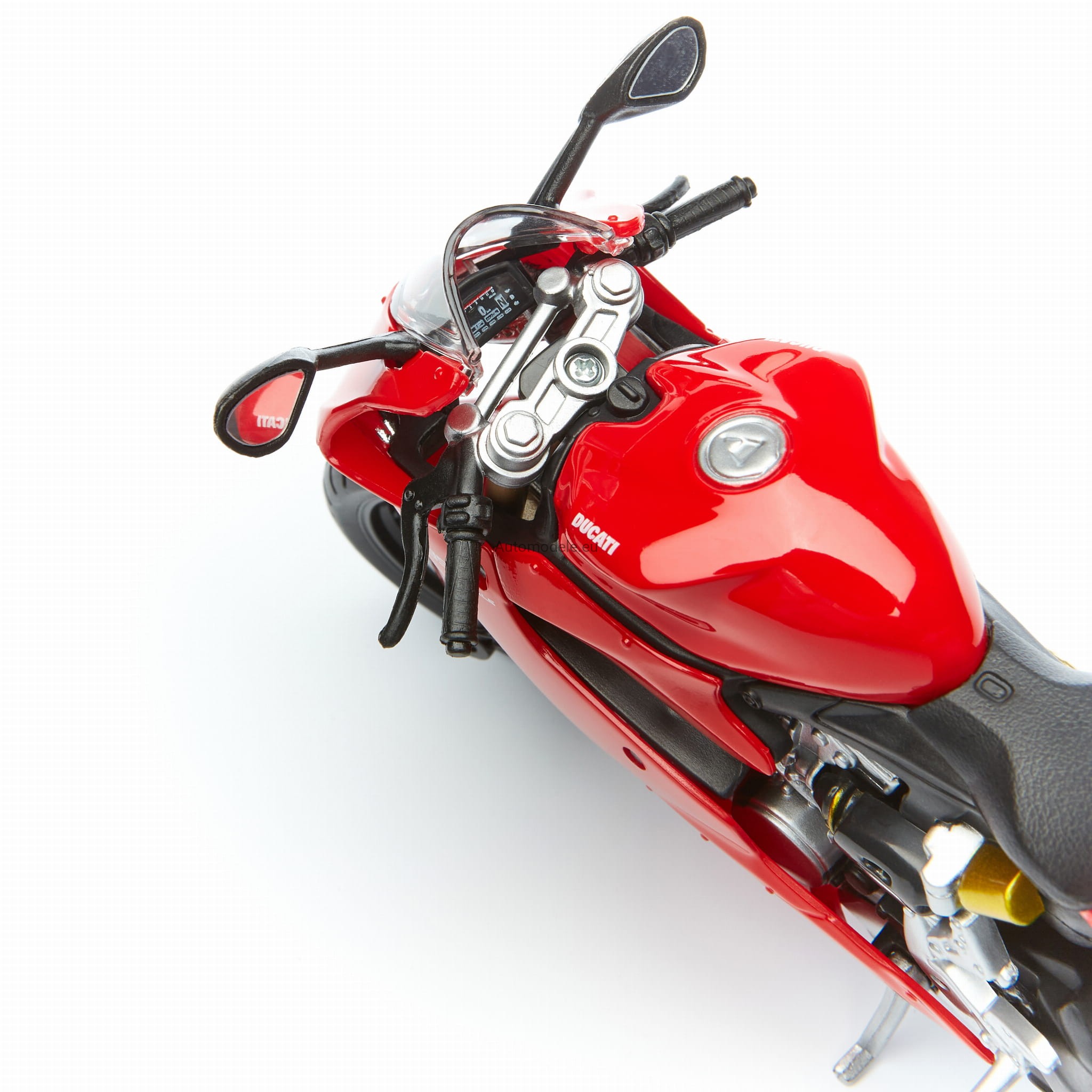 Model w skali 1:12, charakteryzuje się dużą dbałością o szczegóły oraz ruchomym zawieszeniem. Motocykl wyposażony w nóżkę, na której można go postawić. Jest wiernym odwzorowaniem w skali prawdziwego motocykla. Wymiary opakowania: szer. 21 cm, wys. 12 cm, gł. 7 cm. Wiek: 3+.