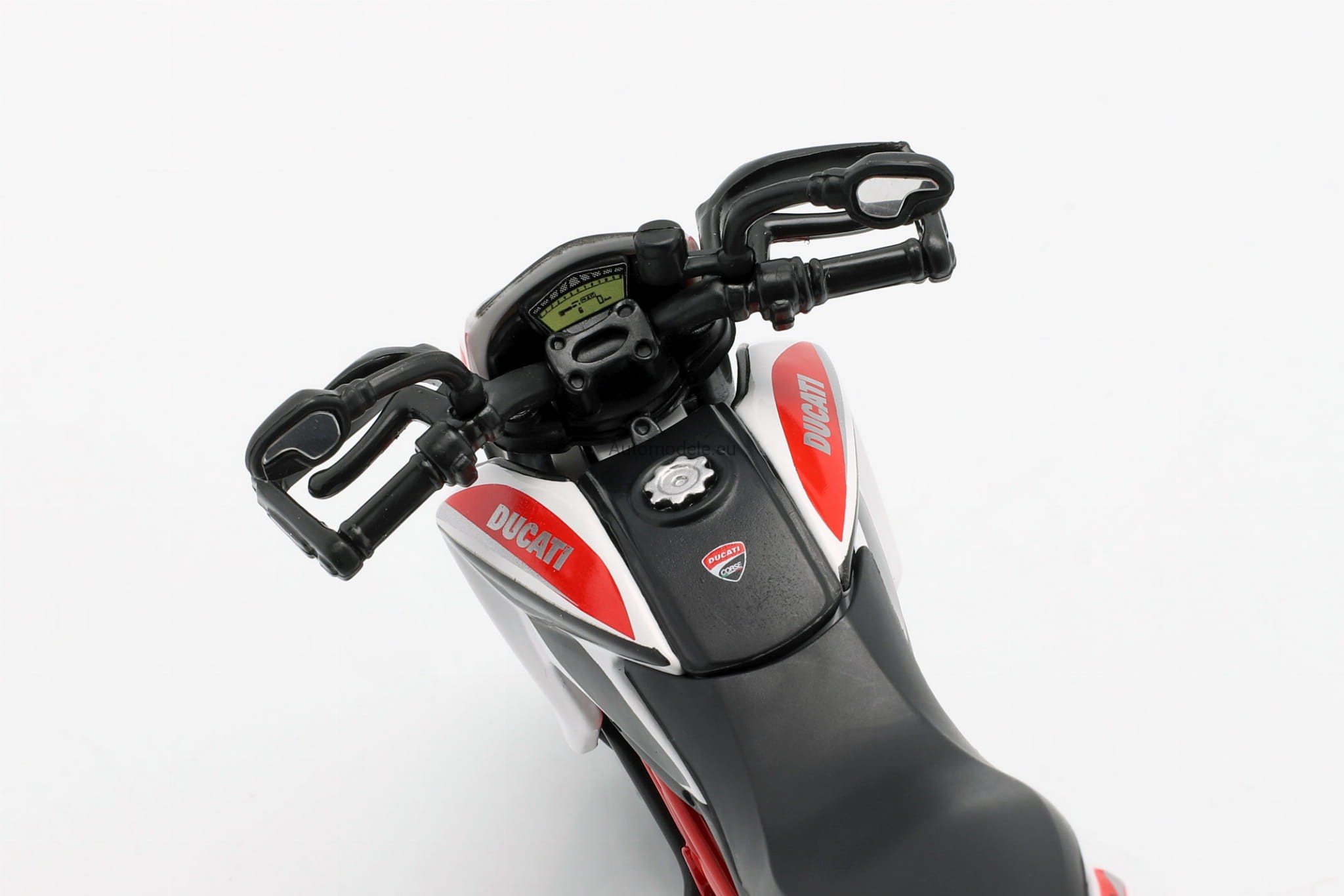 Model w skali 1:12, charakteryzuje się dużą dbałością o szczegóły oraz ruchomym zawieszeniem. Motocykl wyposażony w nóżkę, na której można go postawić. Jest wiernym odwzorowaniem w skali prawdziwego motocykla. Wymiary opakowania: szer. 21 cm, wys. 12 cm, gł. 7 cm. Wiek: 3+.