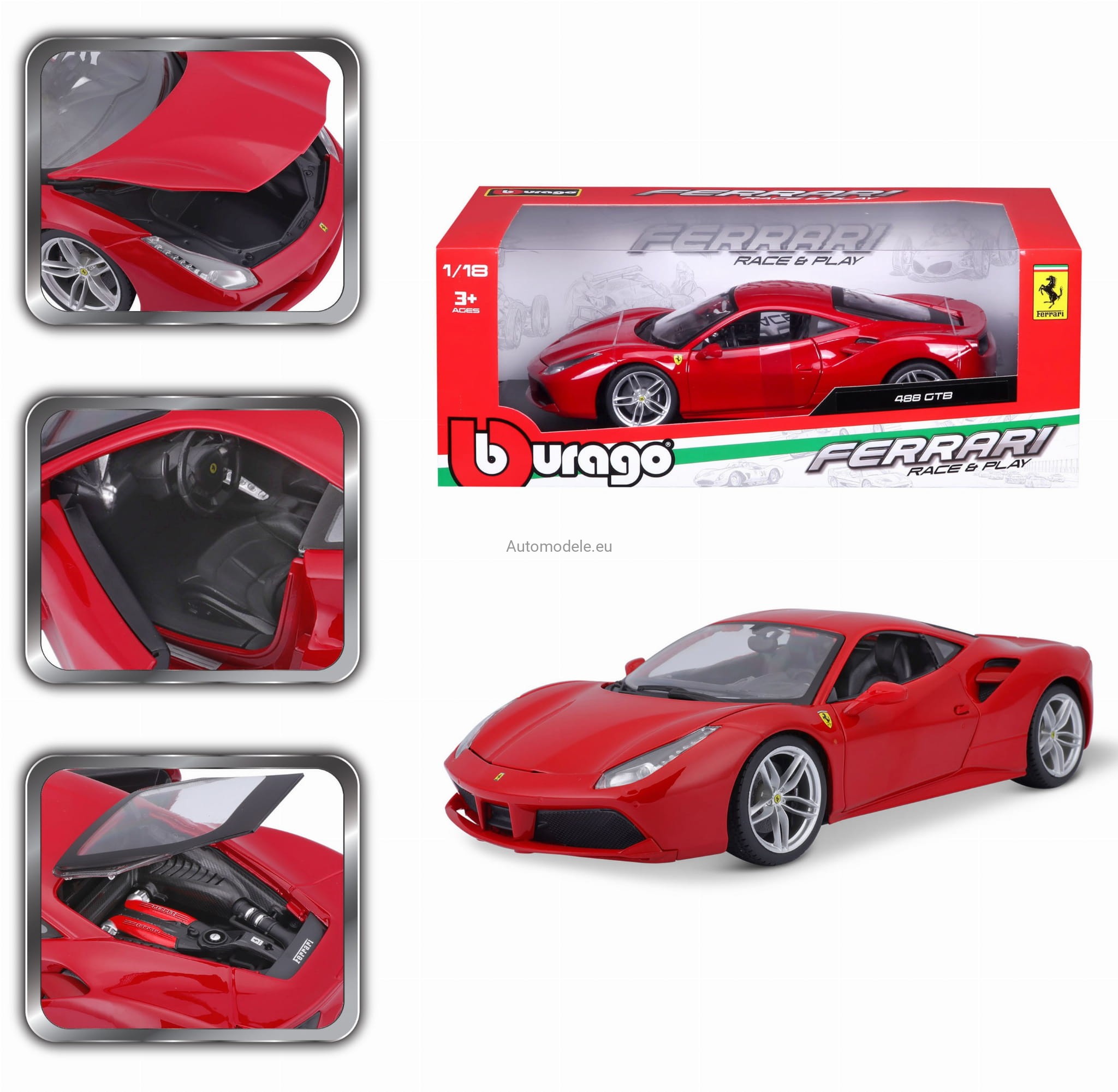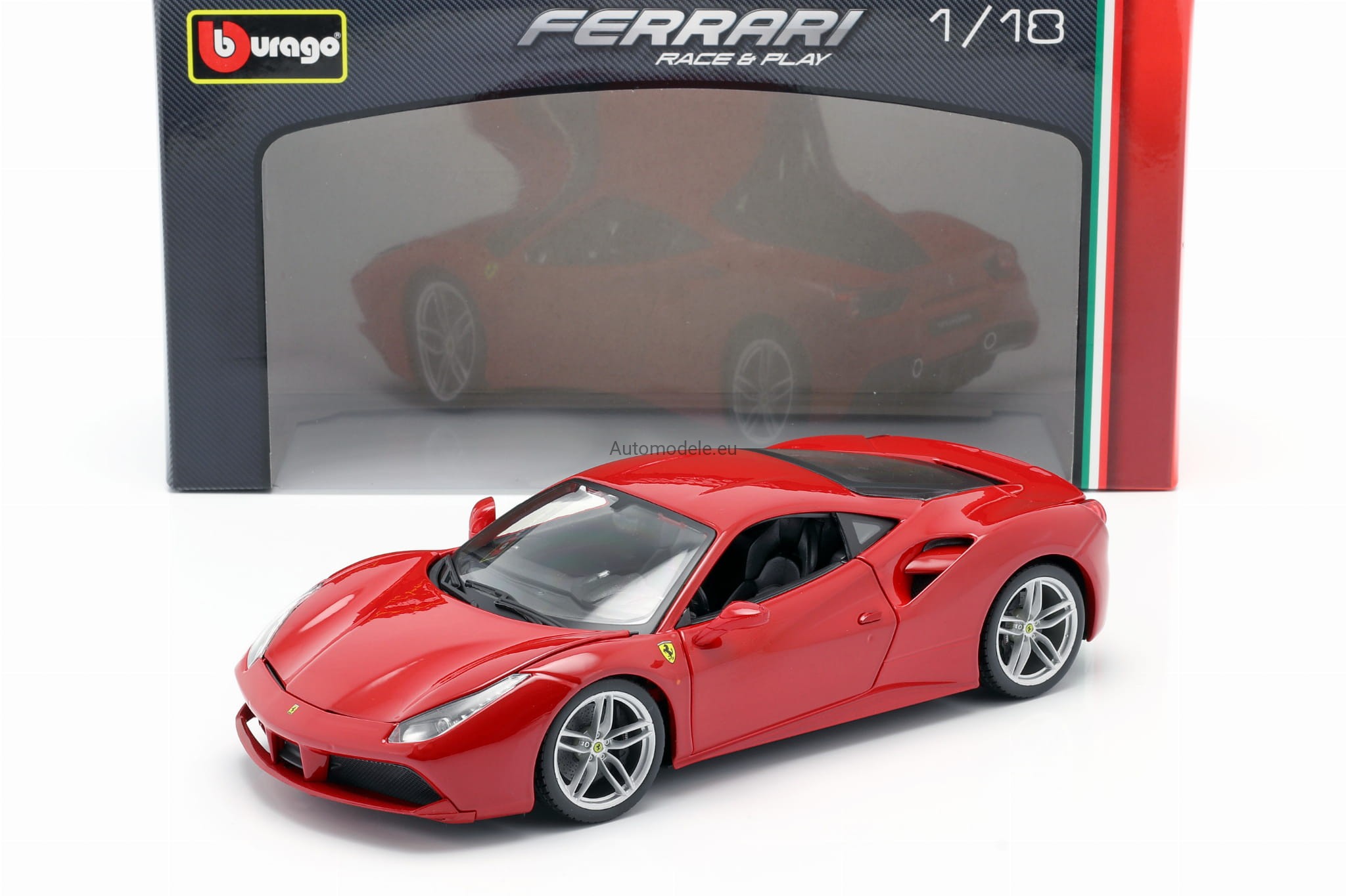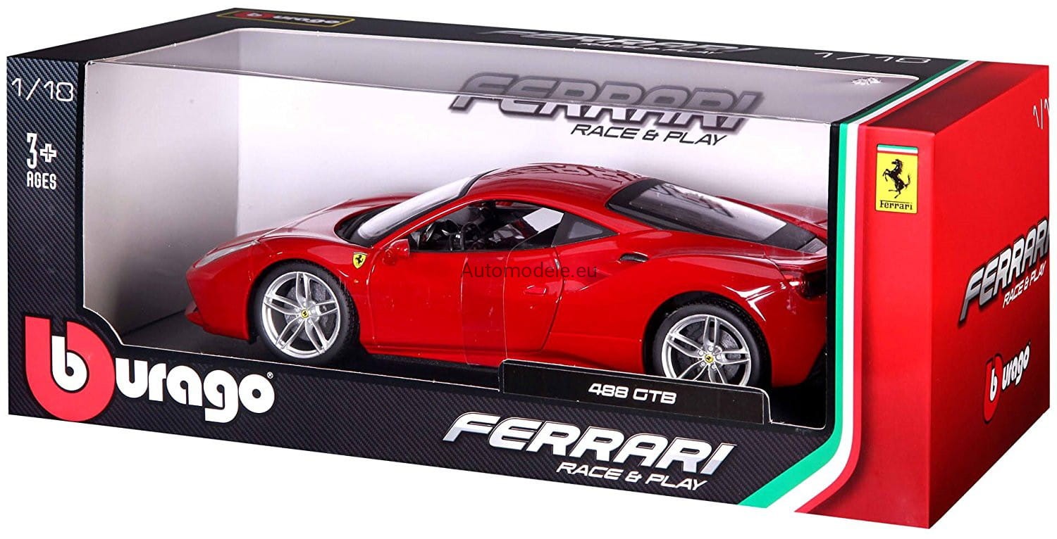 Kolekcjonerski metalowy model samochodu Ferrari 488 GTB 488GTB z 2015 roku w skali 1/18 wyprodukowany przez firmę Bburago