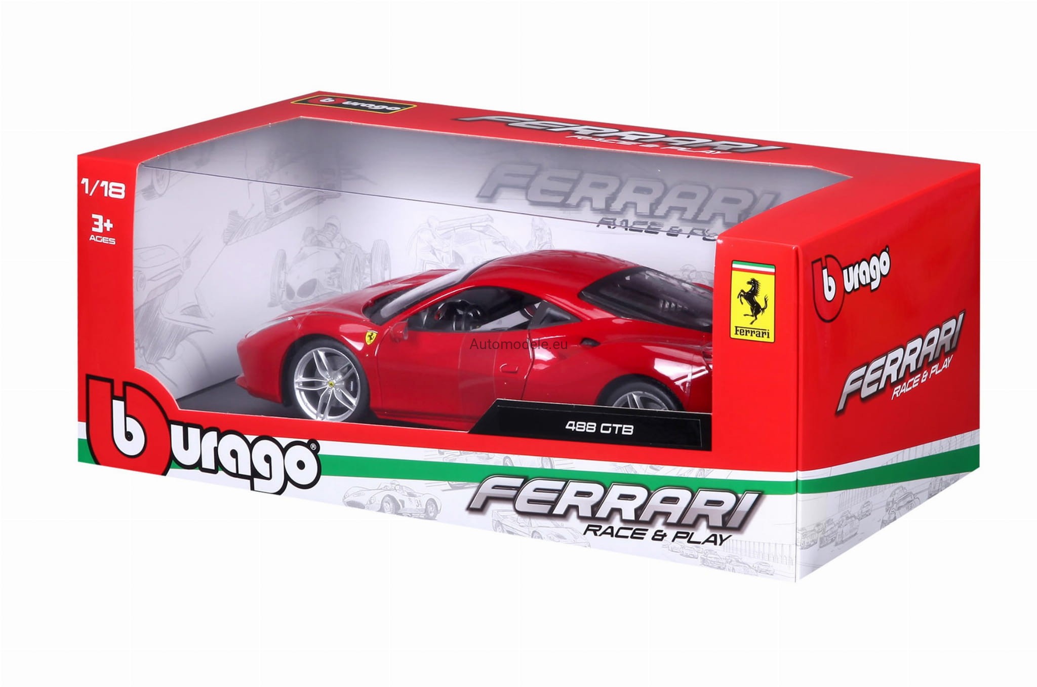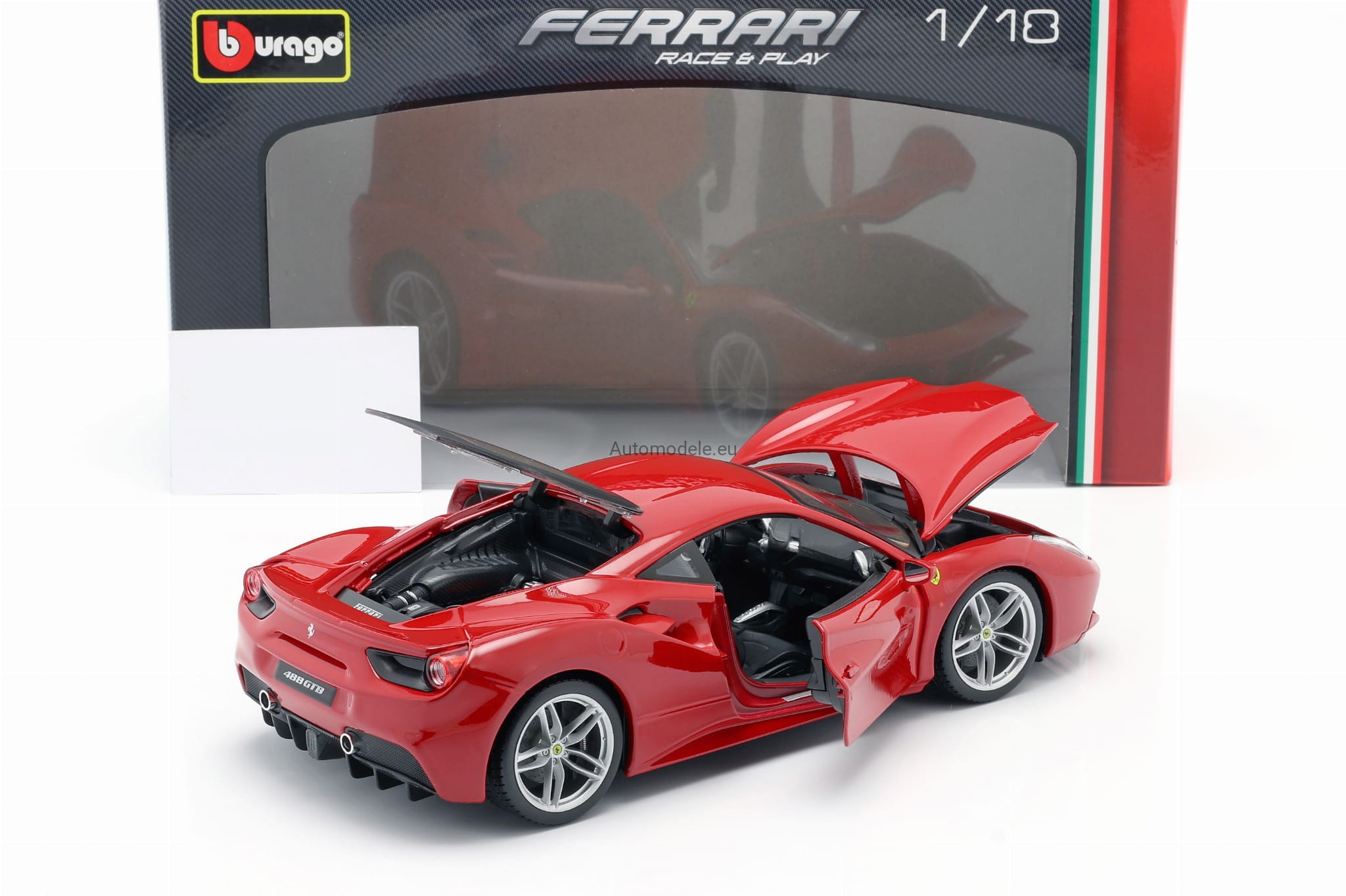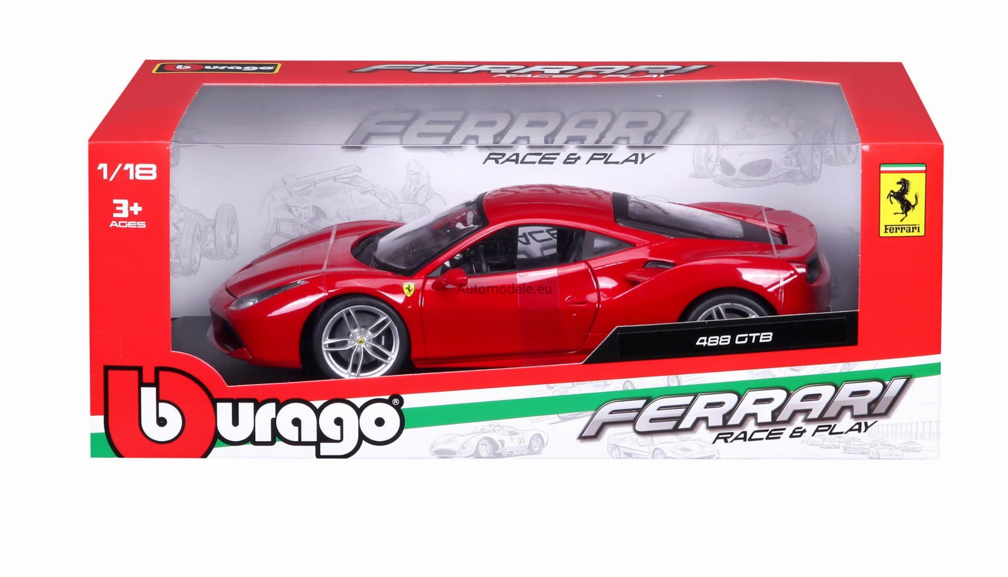 Kolekcjonerski metalowy model samochodu Ferrari 488 GTB 488GTB z 2015 roku w skali 1/18 wyprodukowany przez firmę Bburago
