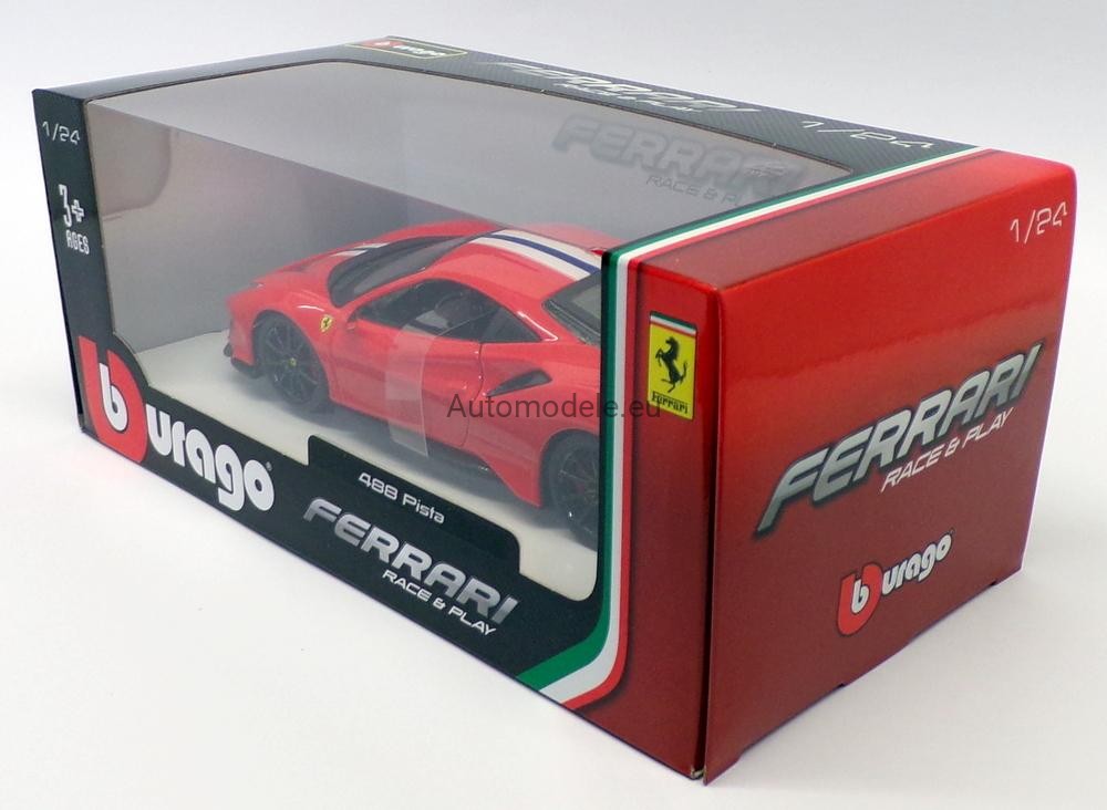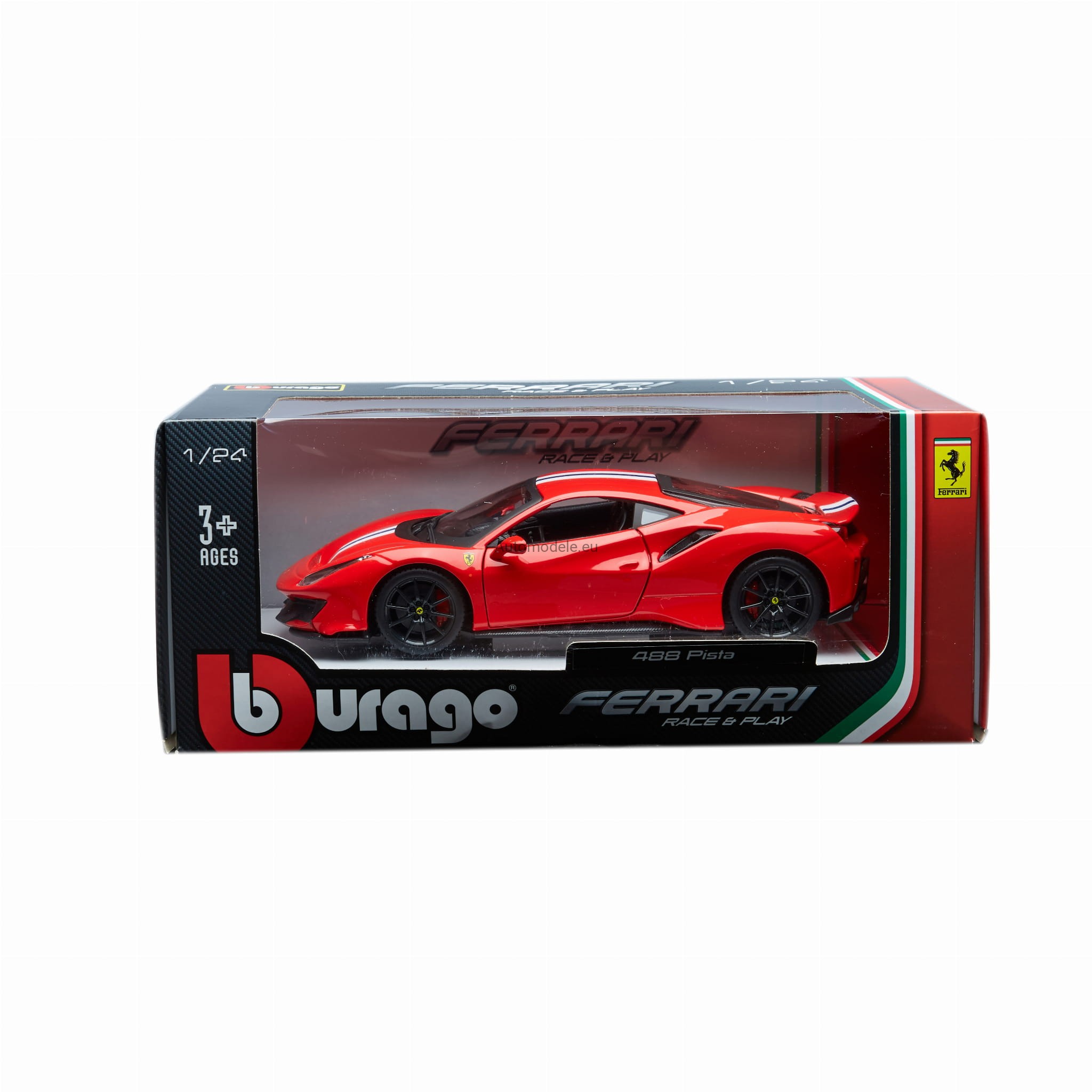 Kolekcjonerski metalowy model samochodu Ferrari 488 Pista z 2018 roku w skali 1:24 od Bburago. Numer katalogowy: 26026 / 18-26026 / BU26026