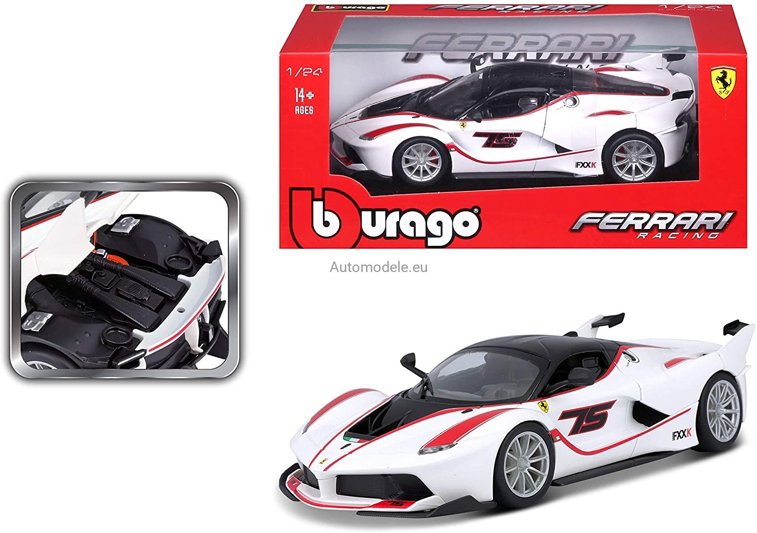 Model samochodu Ferrari FXX-K #75 z 2016 roku w skali 1:24 od Bburago. Numer katalogowy: 26301