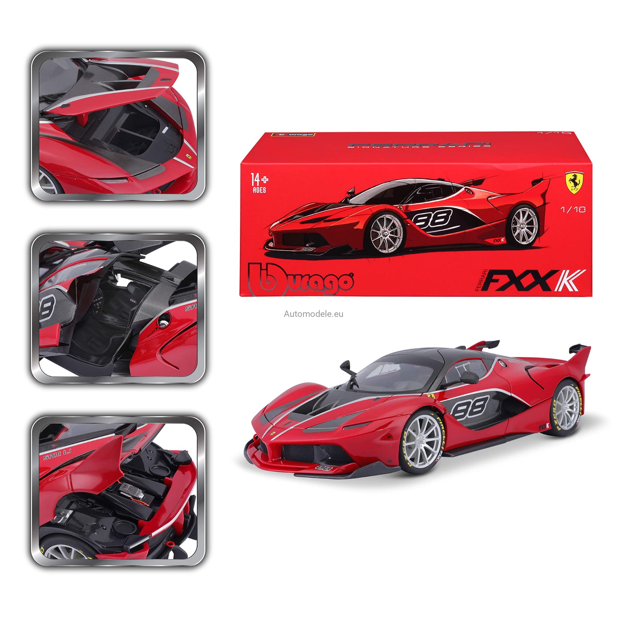 Kolekcjonerski metalowy model samochodu Ferrari FXX-K FXXK #88 z 2015 roku w skali 1/18 wyprodukowany przez firmę Bburago