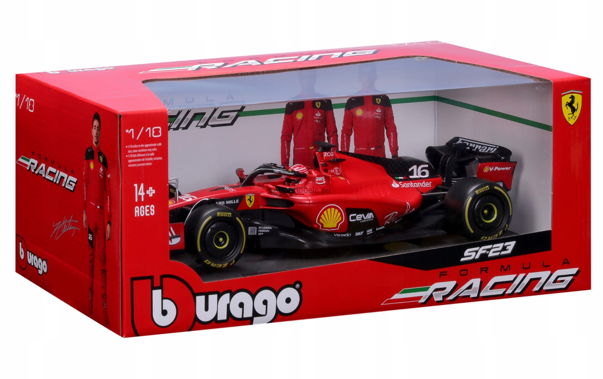 Kolekcjonerski metalowy model bolidu Ferrari SF-23 SF23 #16 Charles Leclerc F1 Formula 1 z 2023 roku w skali 1:18 od Bburago