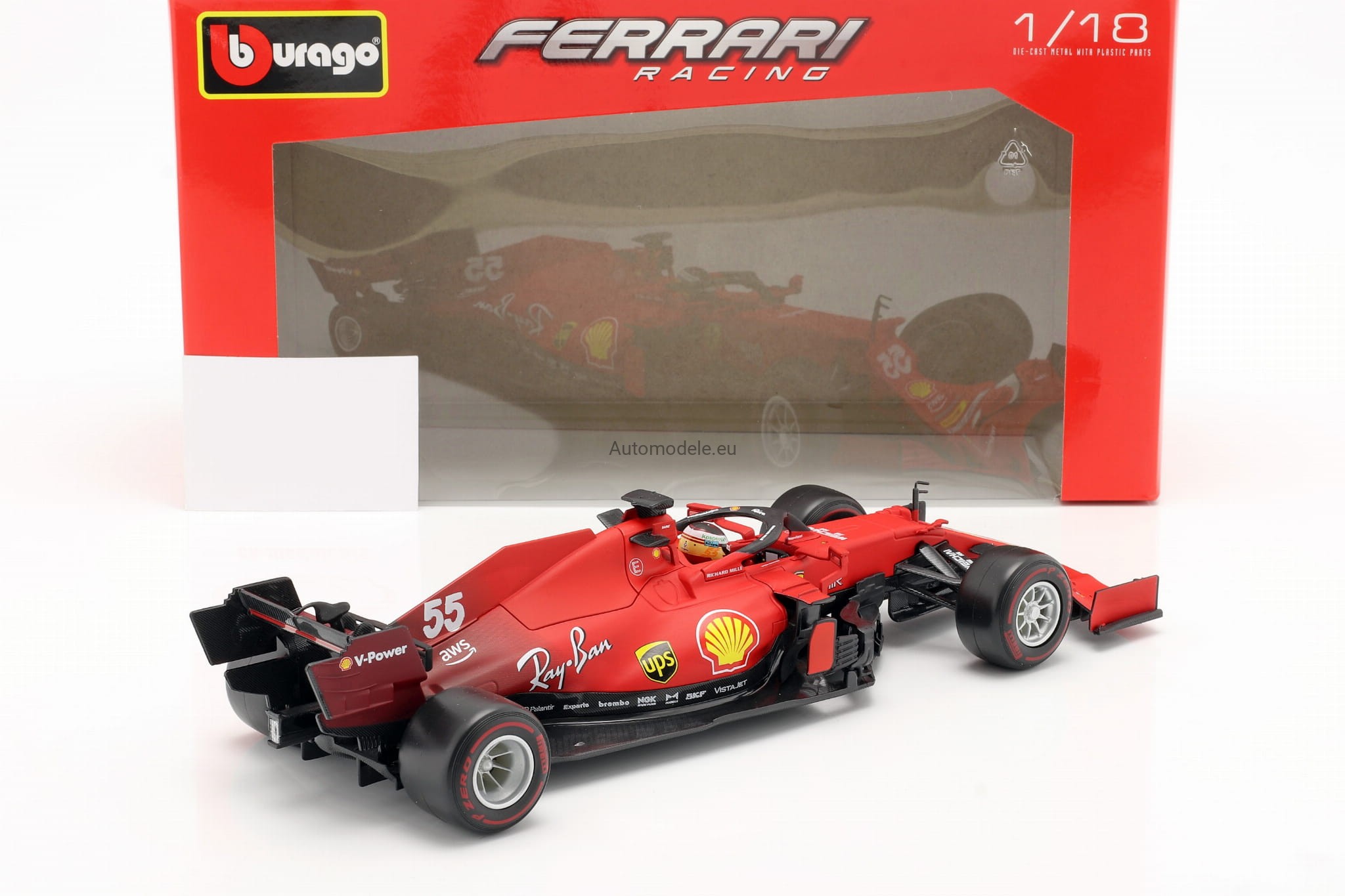 Kolekcjonerski model bolidu Ferrari SF21 Scuderia #55 Carlos Sainz jr. - F1 Formula 1, Scuderia Ferrari Mission Winnow Team z 2021 roku w skali 1/18 wyprodukowany przez firmę Bburago