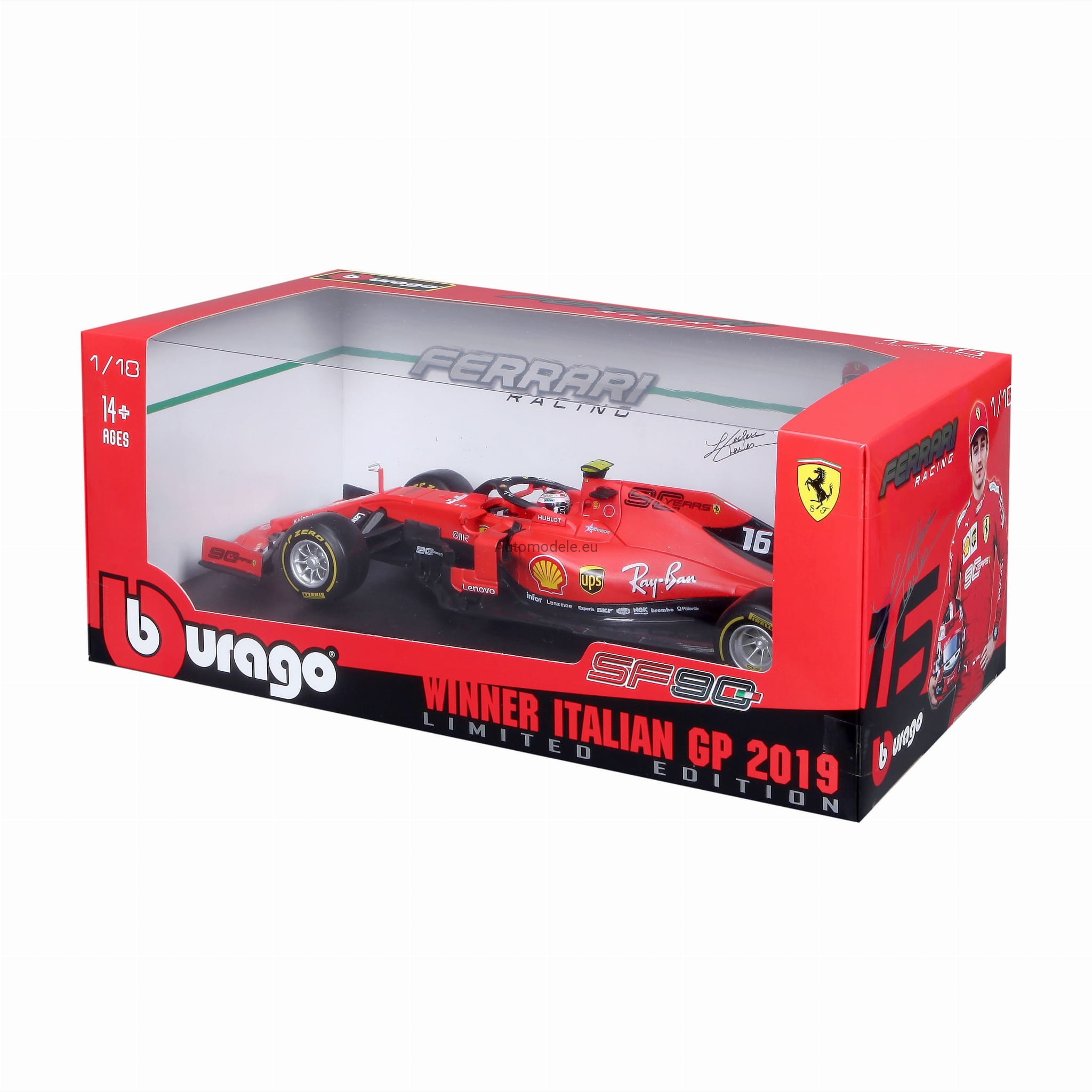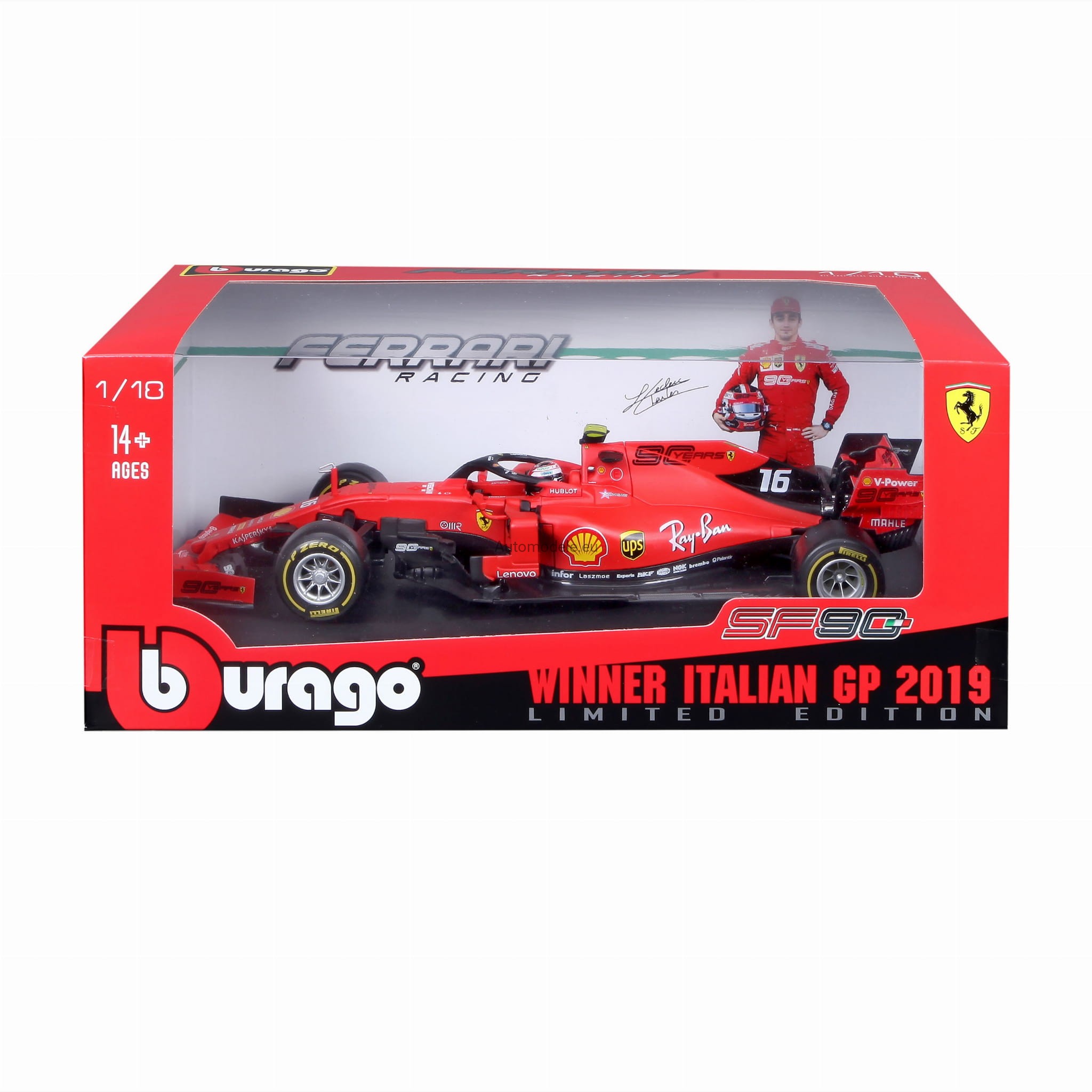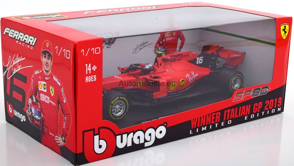 Ferrari Scuderia SF90 #16 Charles Leclerc Winner Italian GP 2019 F1 Formula 1 Bburago 1:18