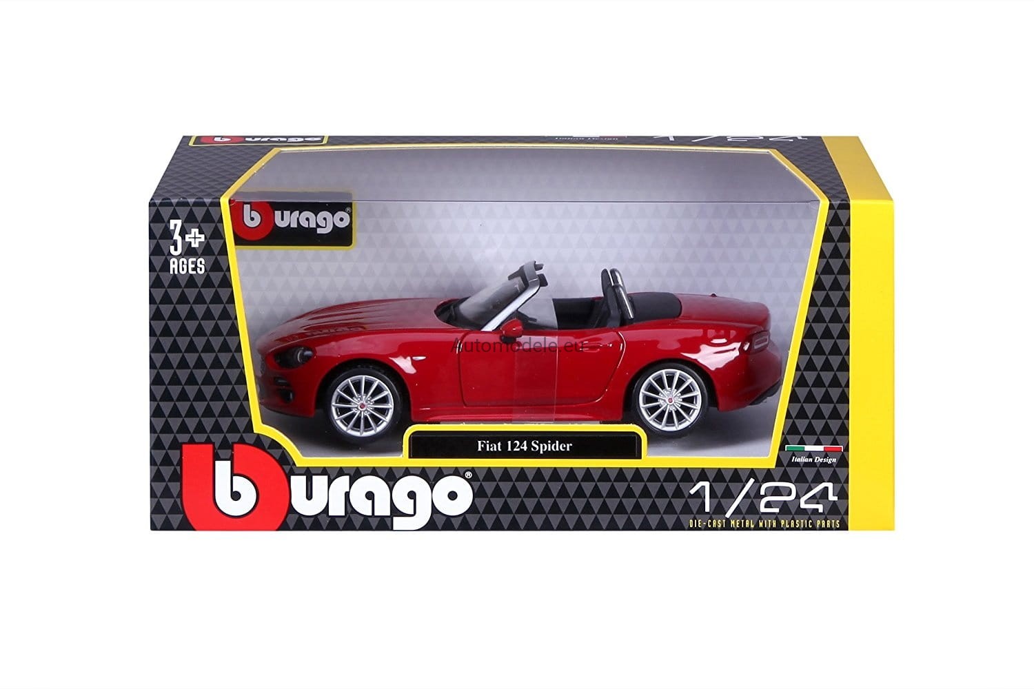Model samochodu Fiat 124 Spider w skali 1:24 od Bburago. Numer katalogowy: 21083R