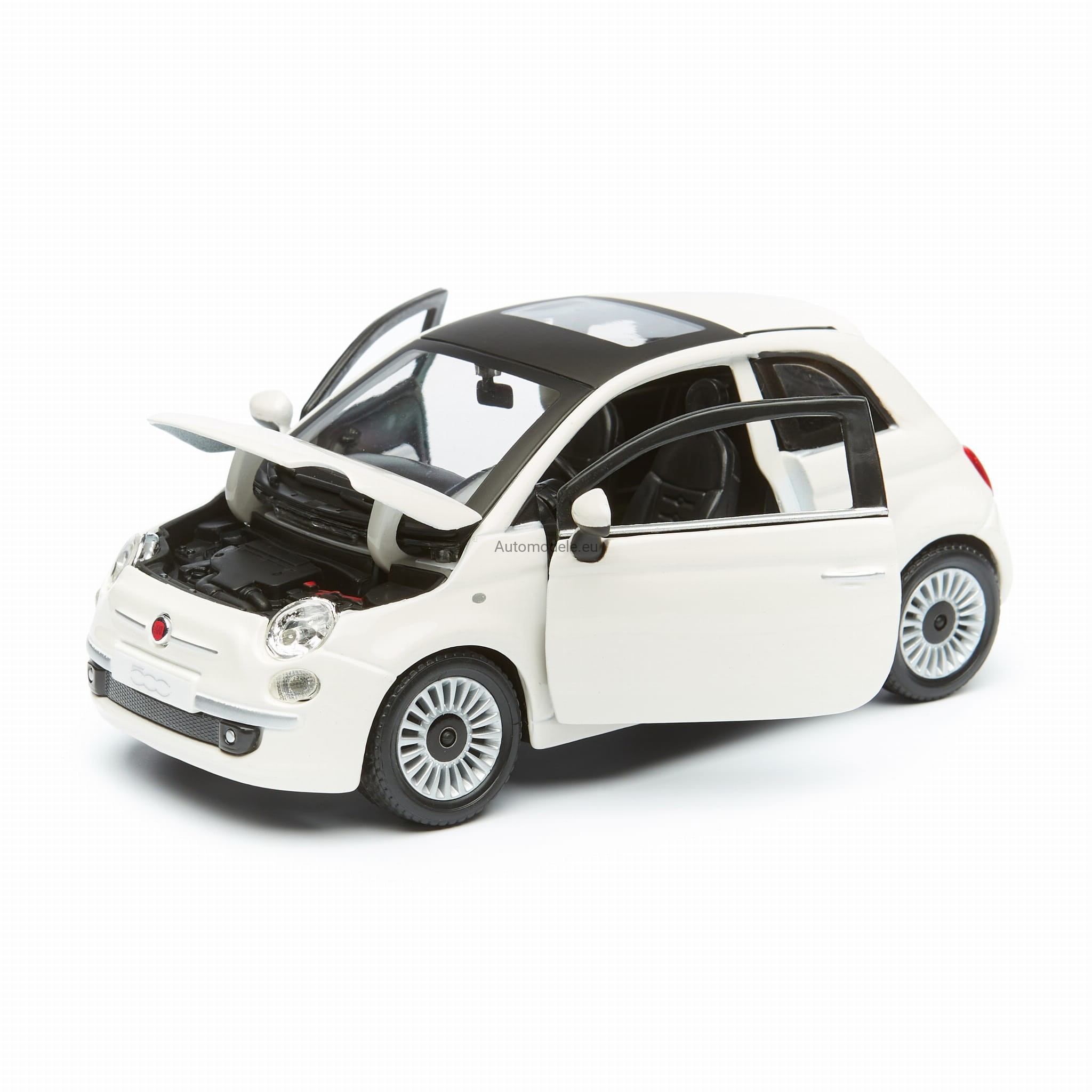 Kolekcjonerski metalowy model samochodu Fiat Nuova 500 Coupe z 2007 roku w skali 1:24 od Bburago. Numer katalogowy: 22106Wh