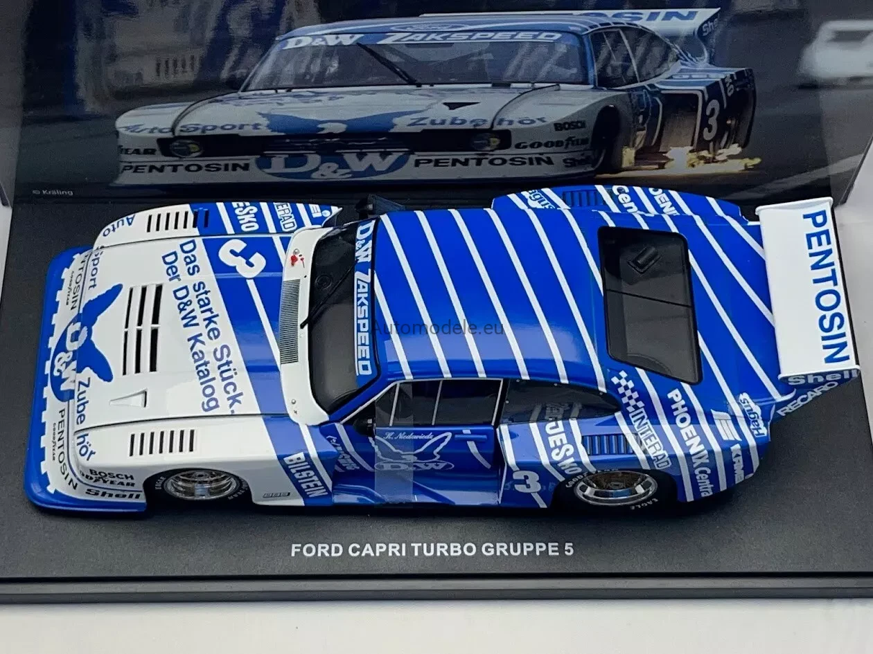 Kolekcjonerski metalowy model samochodu Ford Capri Turbo Gr. 5 #3 DRM - Klaus Niedzwiedz z 1982 roku w skali 1/18 wyprodukowany przez firmę WERK83