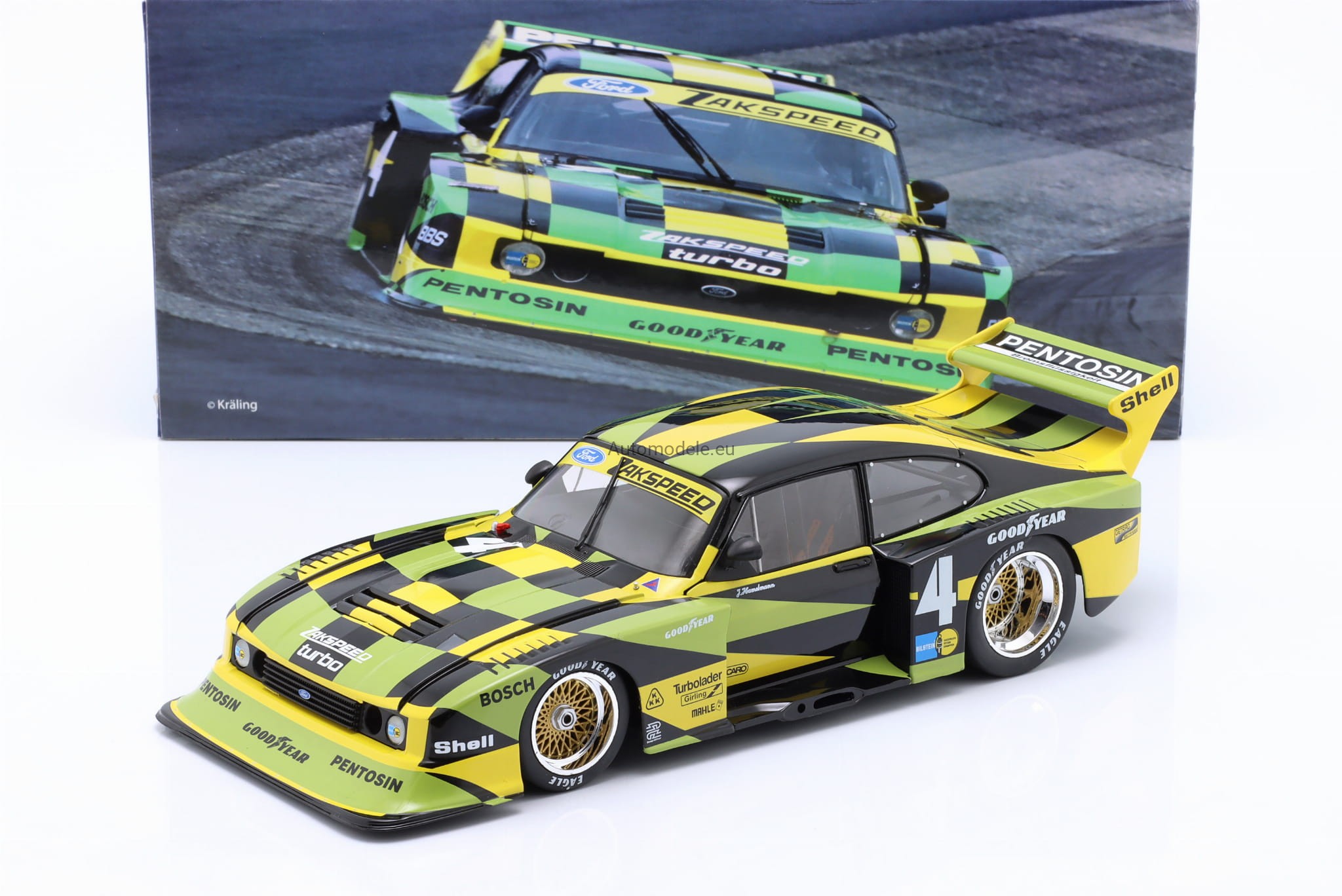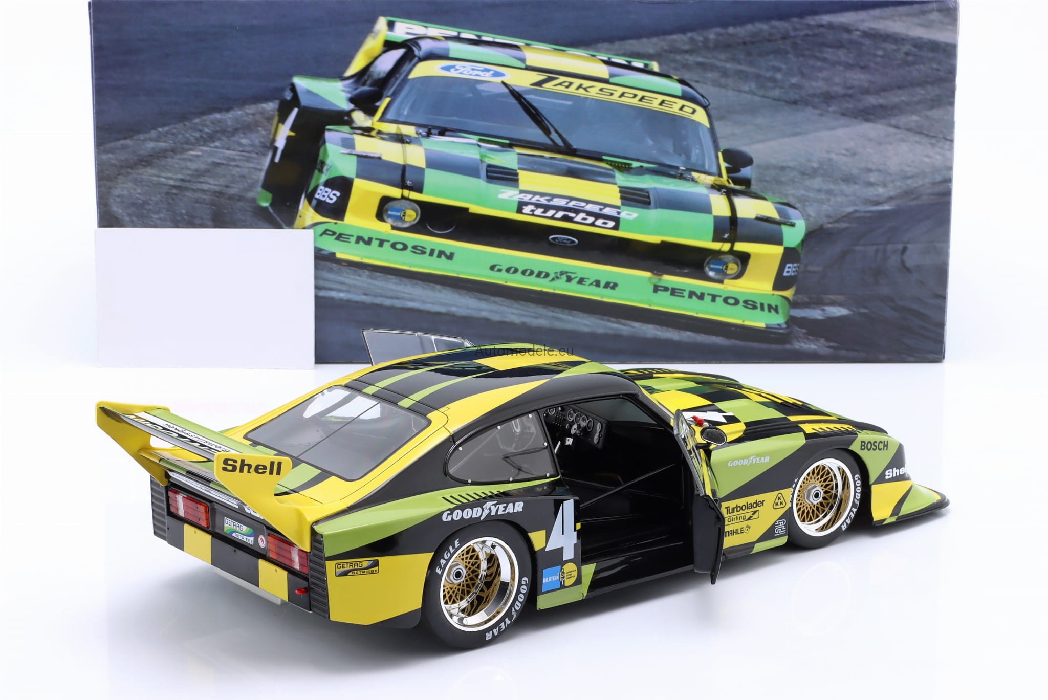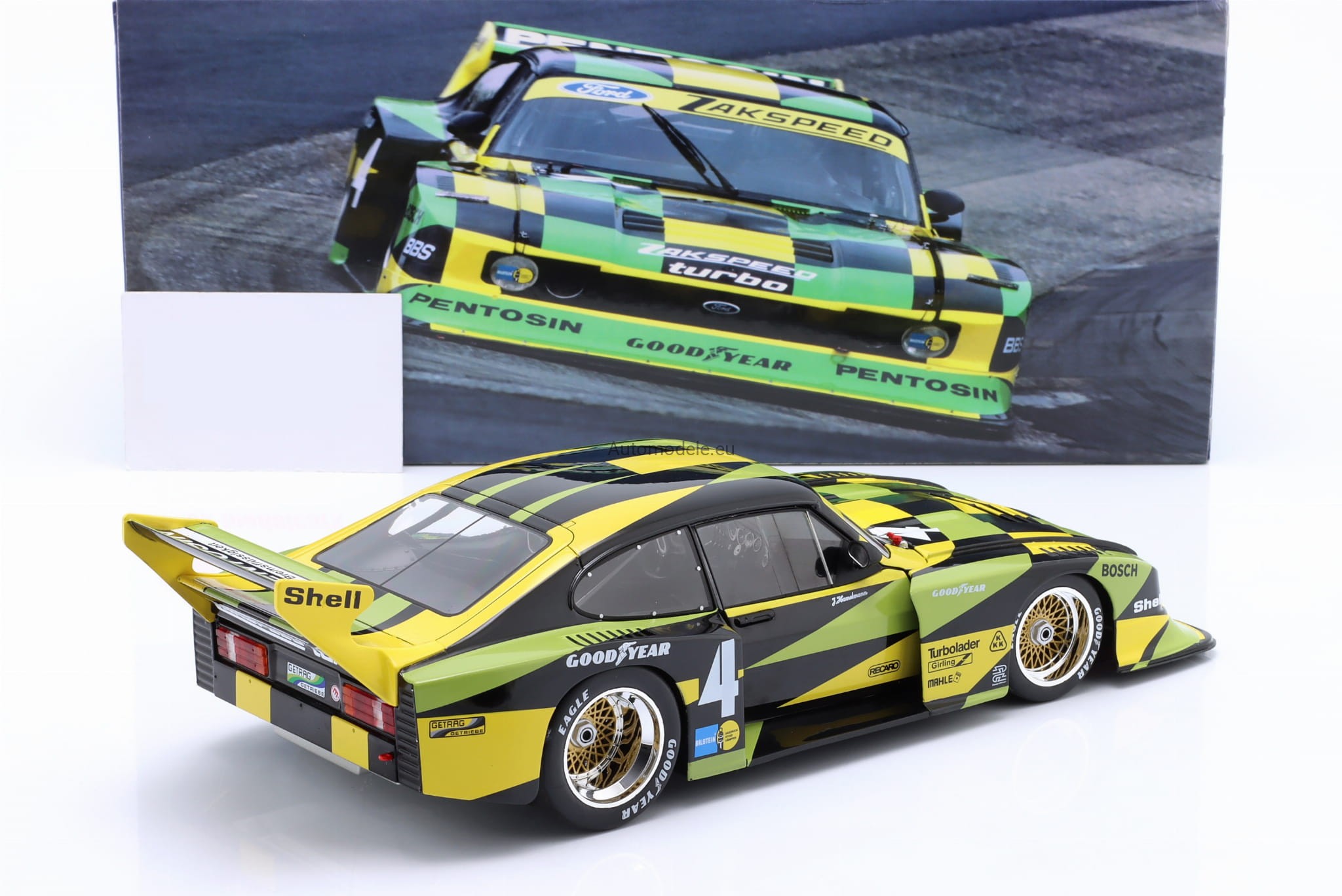 Kolekcjonerski metalowy model samochodu Ford Capri Turbo Gr.5 Gr. Gruppe 5 #4 Zakspeed DRM - Jürgen J. Hamelmann z 1980 roku w skali 1/18 wyprodukowany przez firmę WERK83