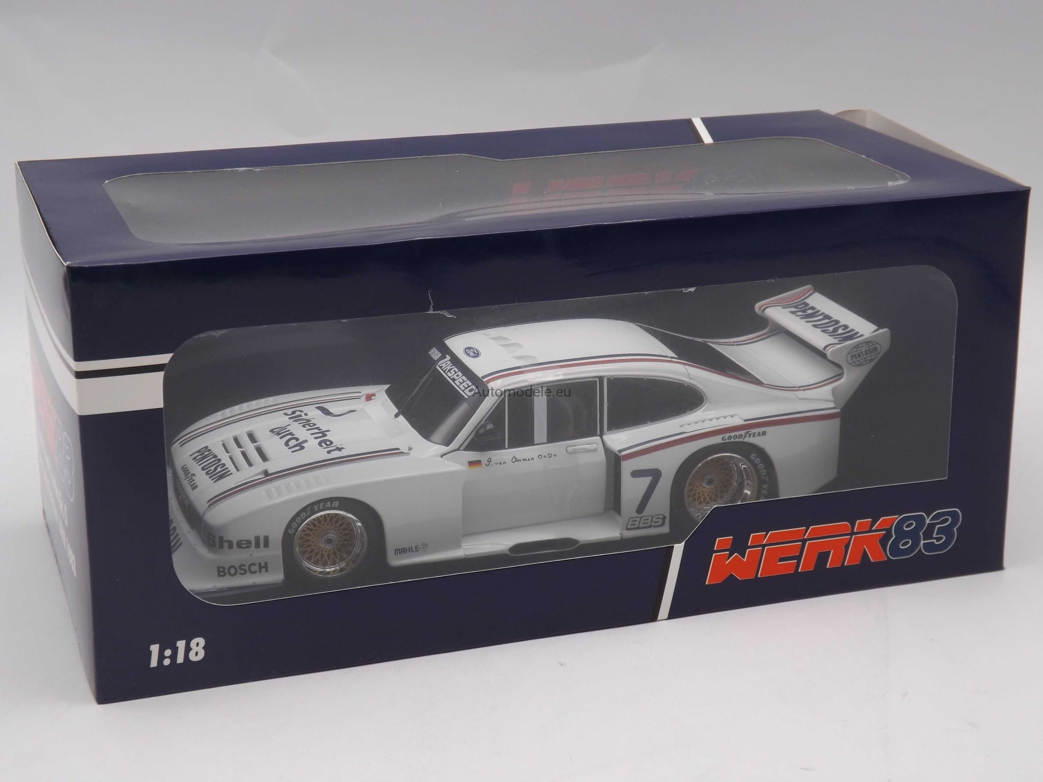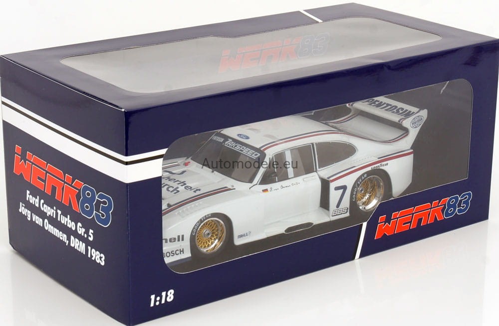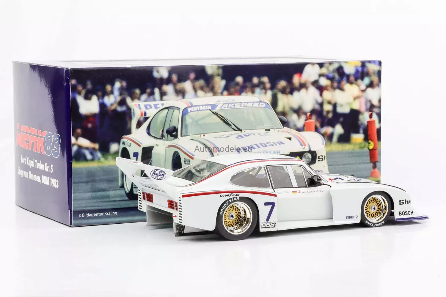 Kolekcjonerski metalowy model samochodu Ford Capri Turbo Zakspeed Gr.5 Gr. Gruppe 5 #7 DRM - Jörg van Ommen z 1983 roku w skali 1/18 wyprodukowany przez firmę WERK83