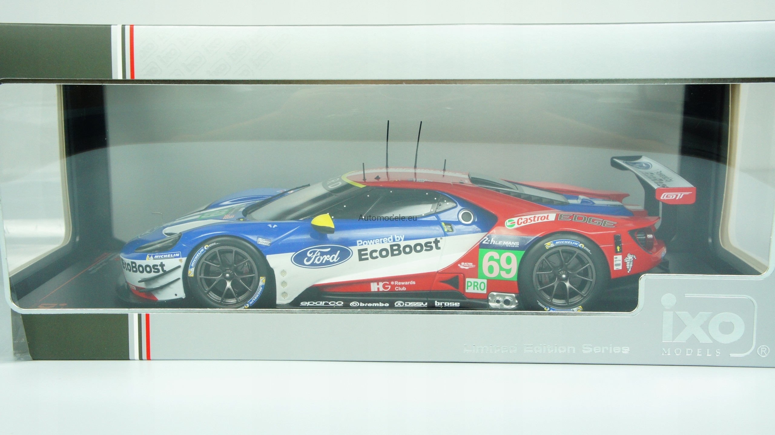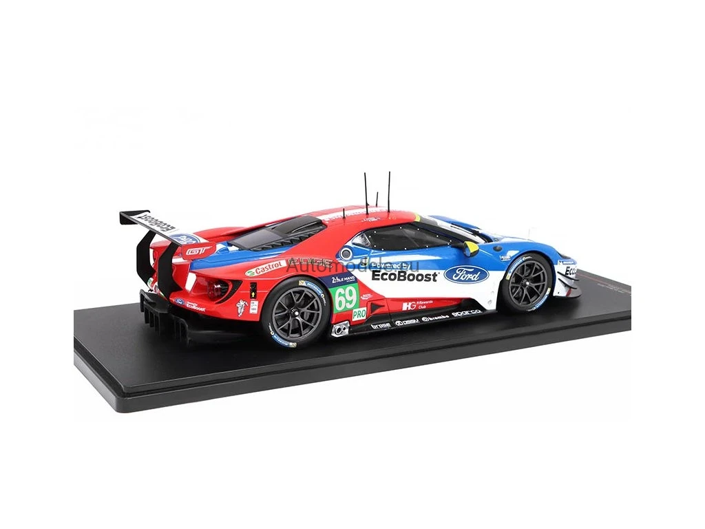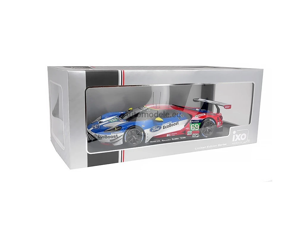 Kolekcjonerski metalowy model samochodu Ford GT 3.5L Turbo V6 #69 24h LeMans - R. Briscoe / R. Westbrook / S. Dixon z 2016 roku w skali 1/18 wyprodukowany przez firmę IXO Models