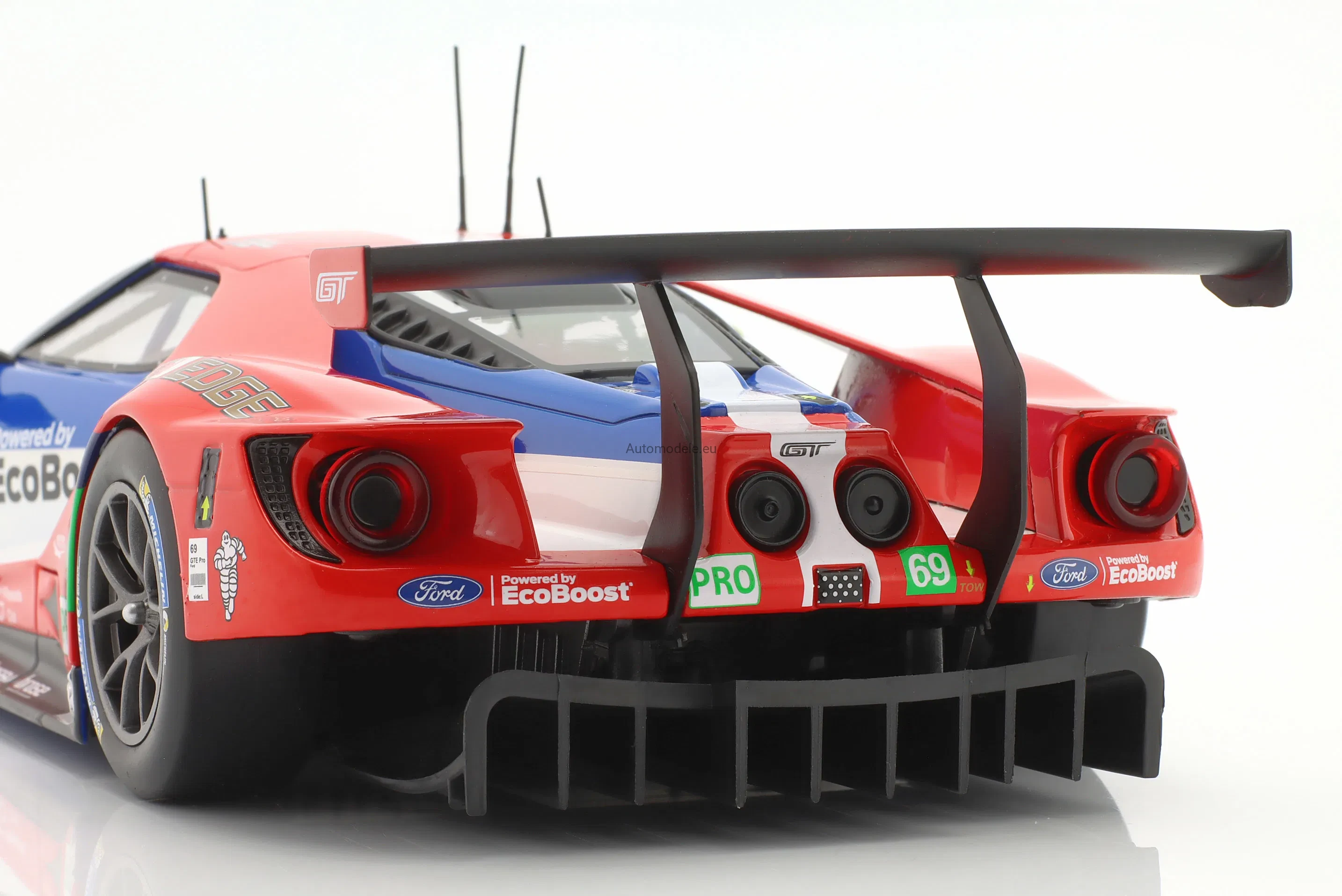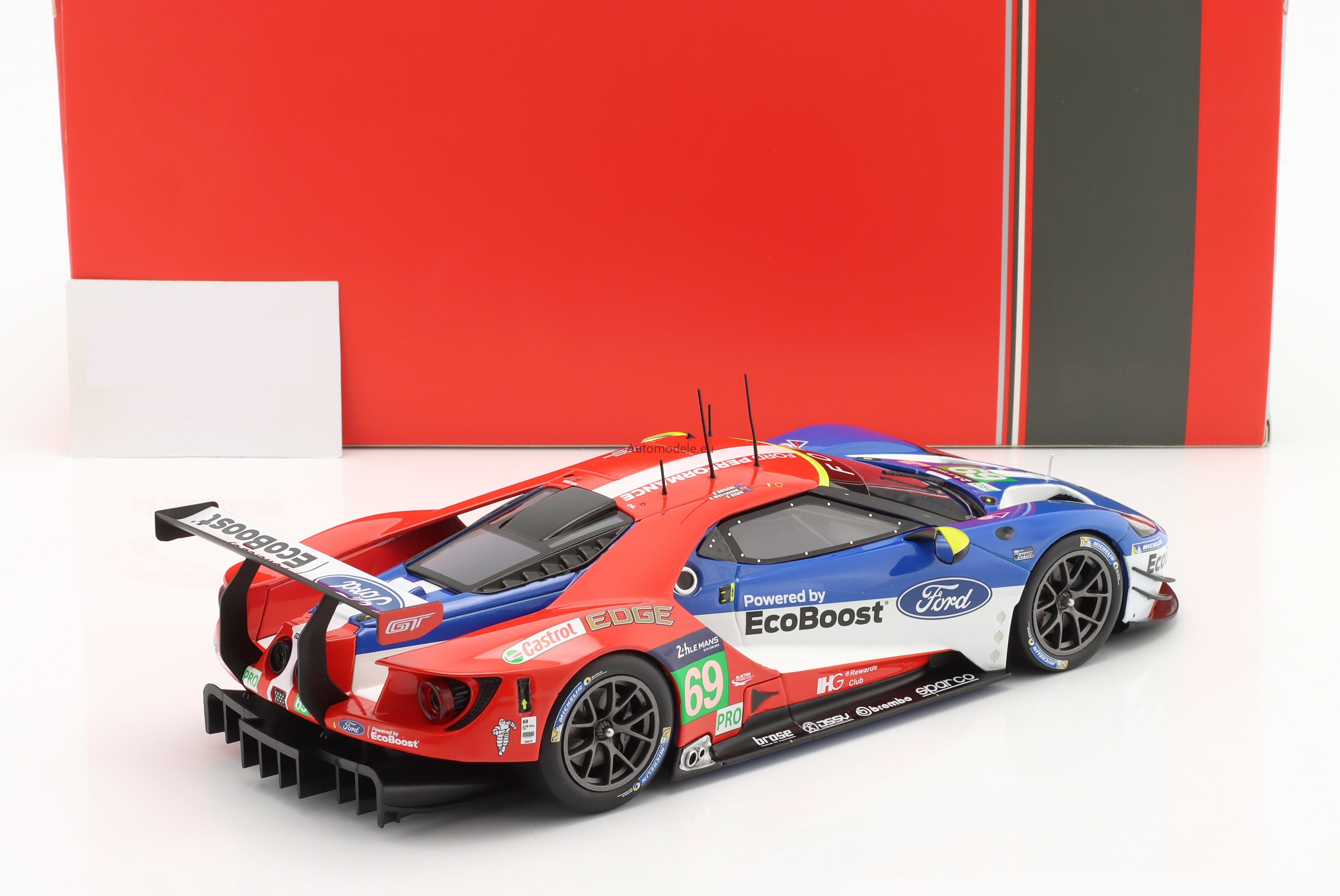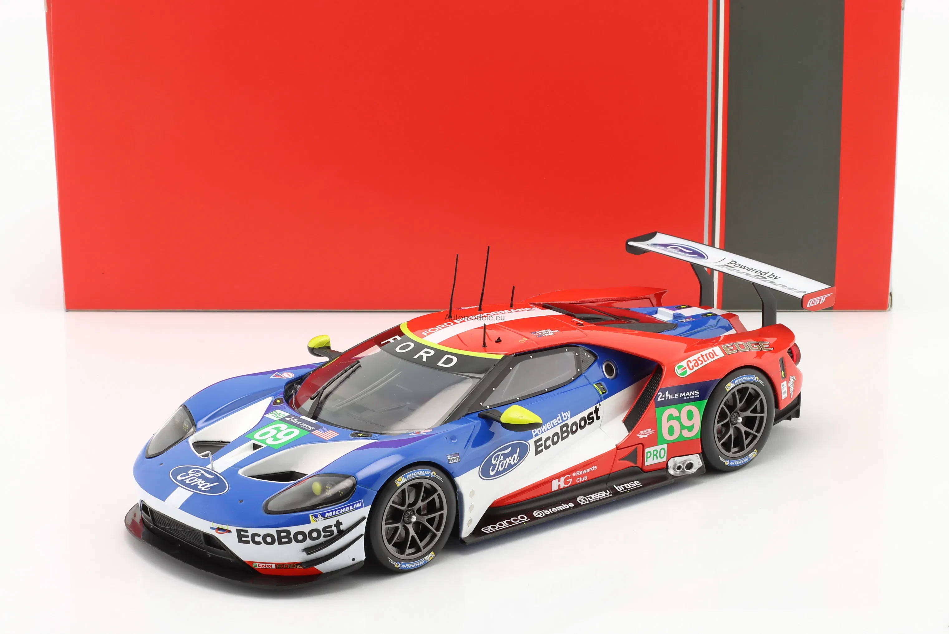 Kolekcjonerski metalowy model samochodu Ford GT 3.5L Turbo V6 #69 24h LeMans - R. Briscoe / R. Westbrook / S. Dixon z 2016 roku w skali 1/18 wyprodukowany przez firmę IXO Models