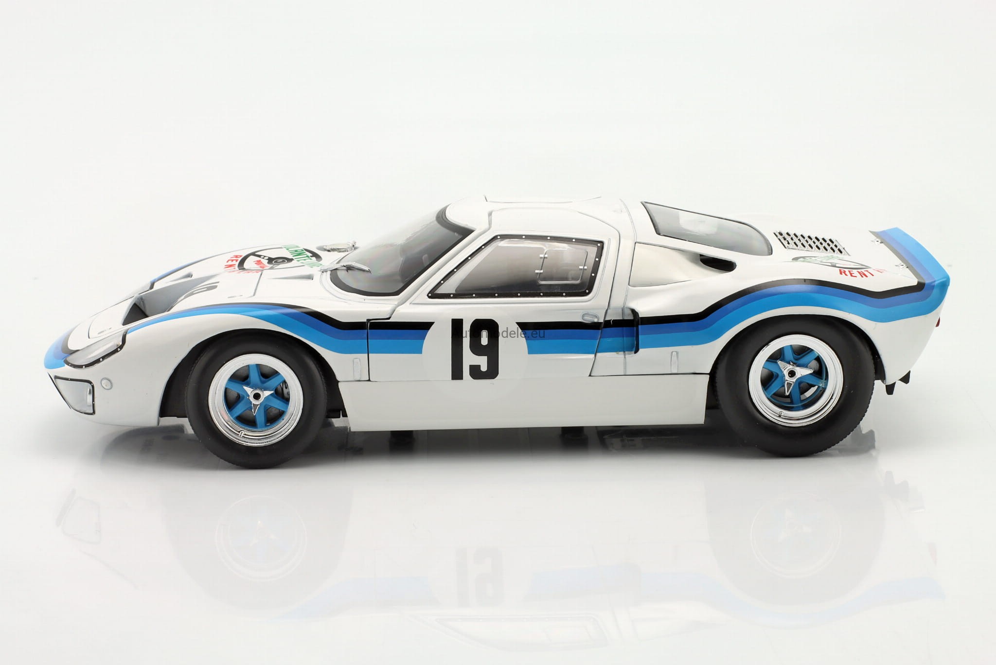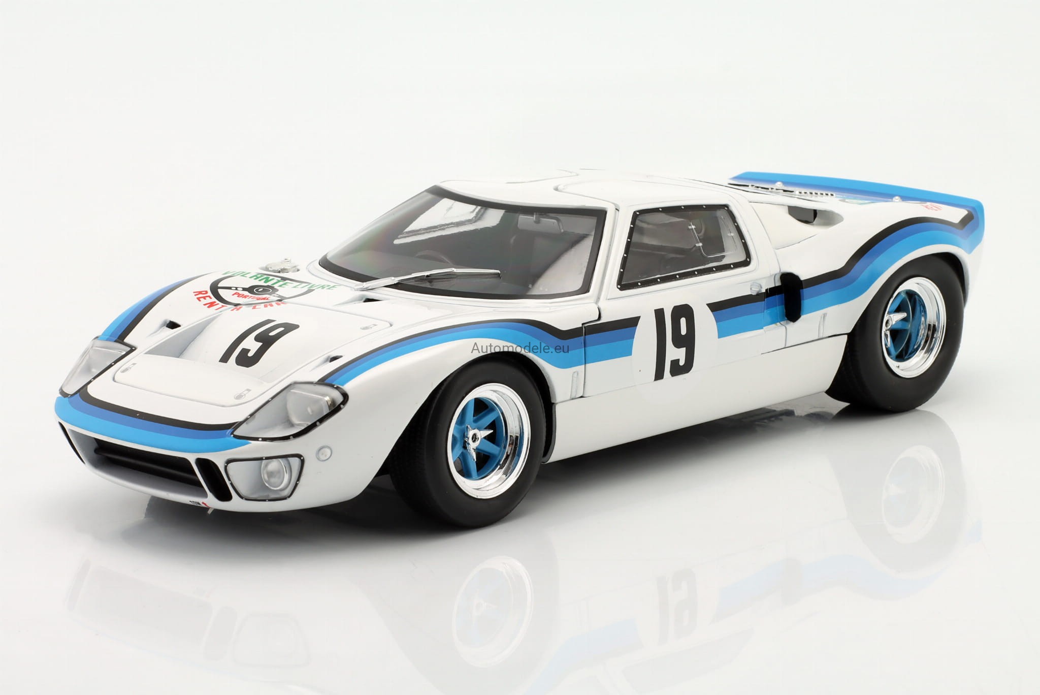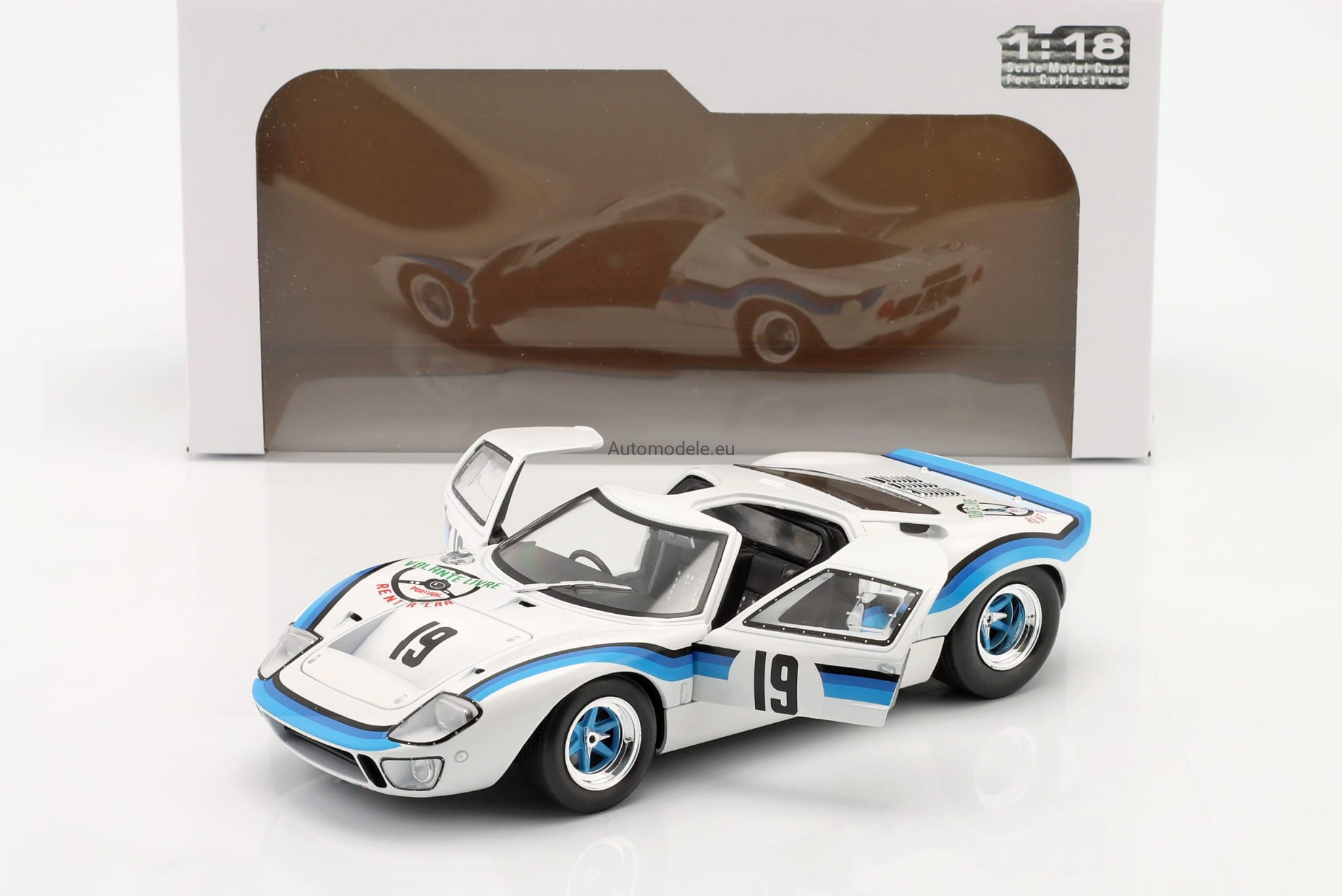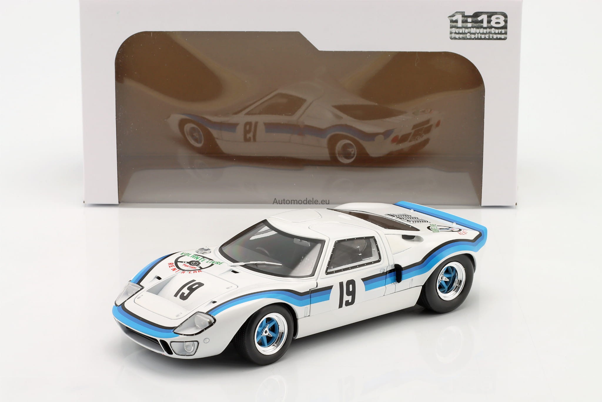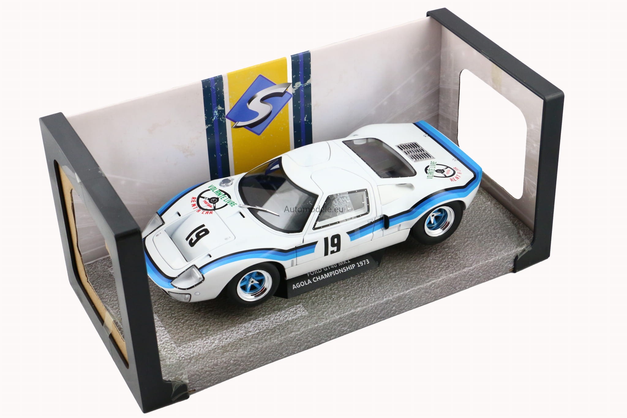 Model samochodu Ford GT40 GT 40 MK I MK1 MK.1 #19 Marta Winner Angola Championship z 1973 roku w skali 1:18 od Solido. Numer katalogowy: S1803006 / SO-1803006 / 421182050