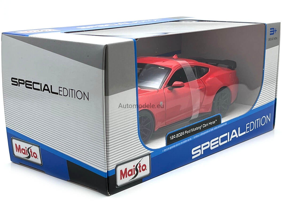 Kolekcjonerski metalowy model samochodu Ford Mustang Darkhorse Dark Horse Coupe z 2024 roku w skali 1:24, wyprodukowany przez znaną, cenioną i renomowaną firmę Maisto.