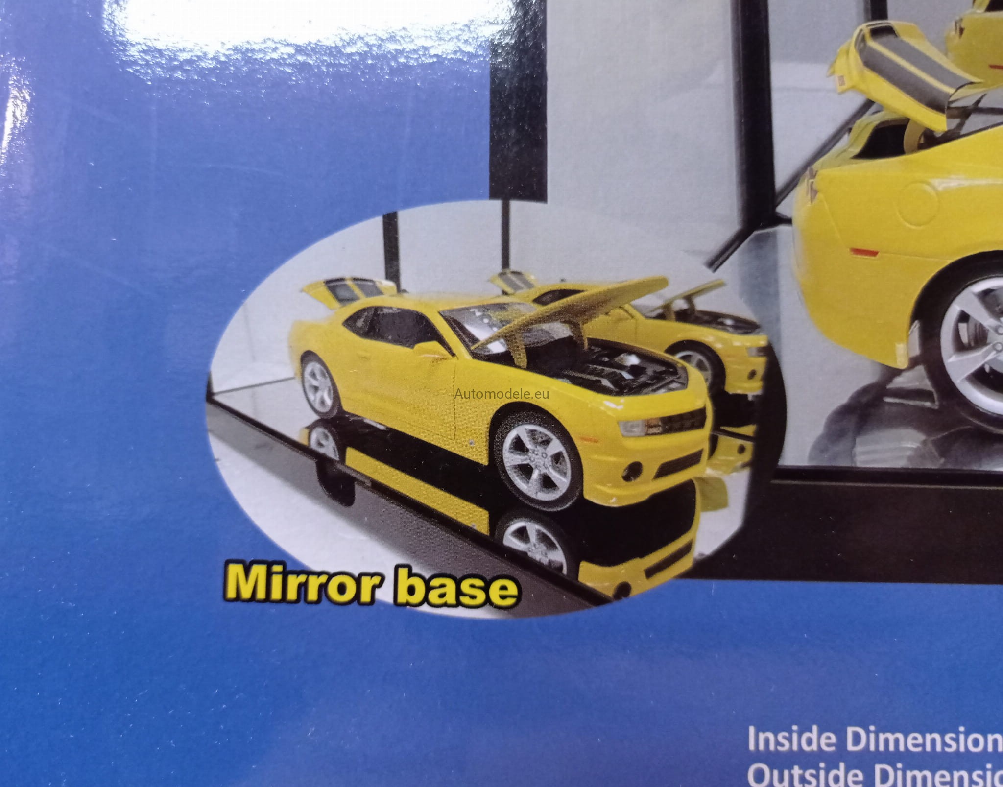 Lustro znajduje się na tylnej ścianie gablotki, dzięki czemu można podziwiać eksponowane modele z każdej strony.