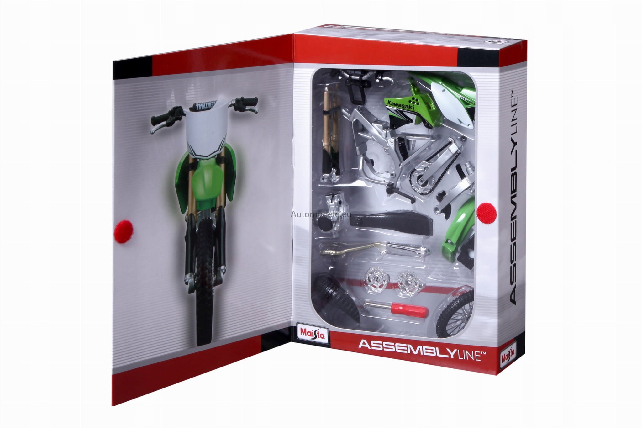 MODEL DO SKŁADANIA (nie wymaga klejenia i malowania, śrubokręt w komplecie). Modele z serii Maisto Assembly Line Model Kit wykonane są z dbałością o najmniejsze szczegóły. Posiadają ruchome elementy, pomalowane metalowe i plastikowe elementy konstrukcyjne, gumowe koła i amortyzowane zawieszenie. Po złożeniu otrzymujemy w pełni funkcjonalny, jeżdżący pojazd idealny jako zabawka dla dziecka lub model dla kolekcjonera.