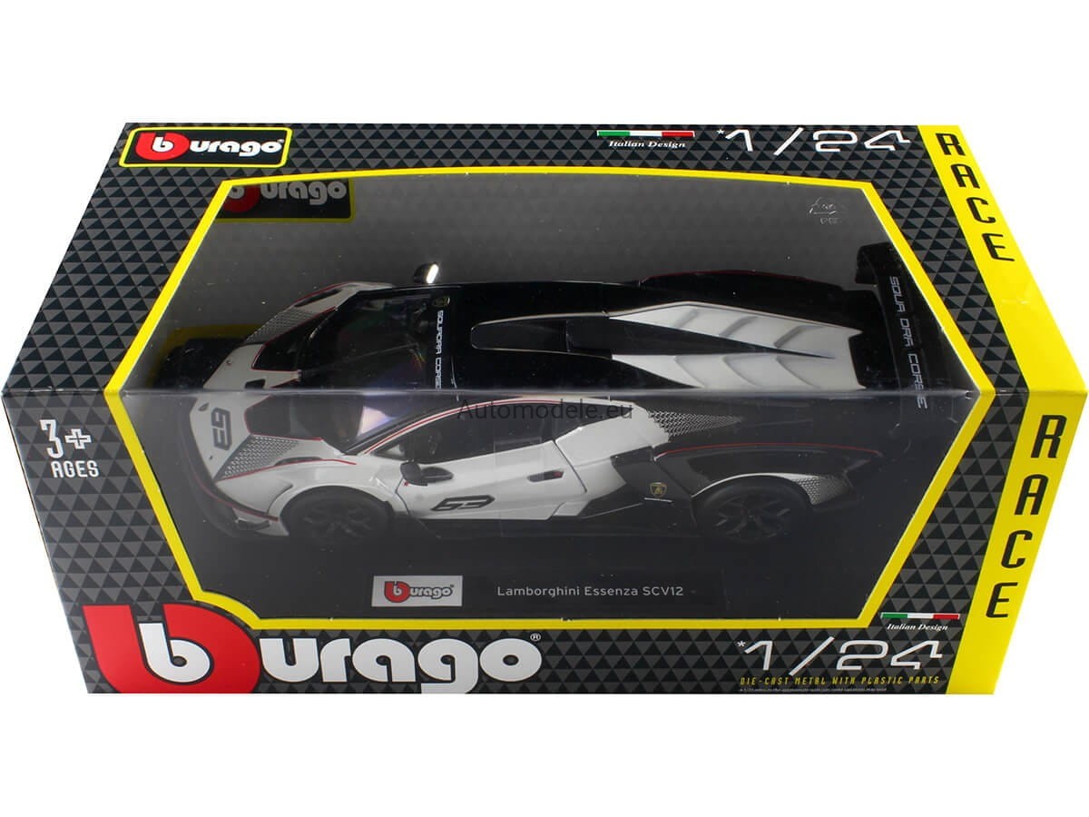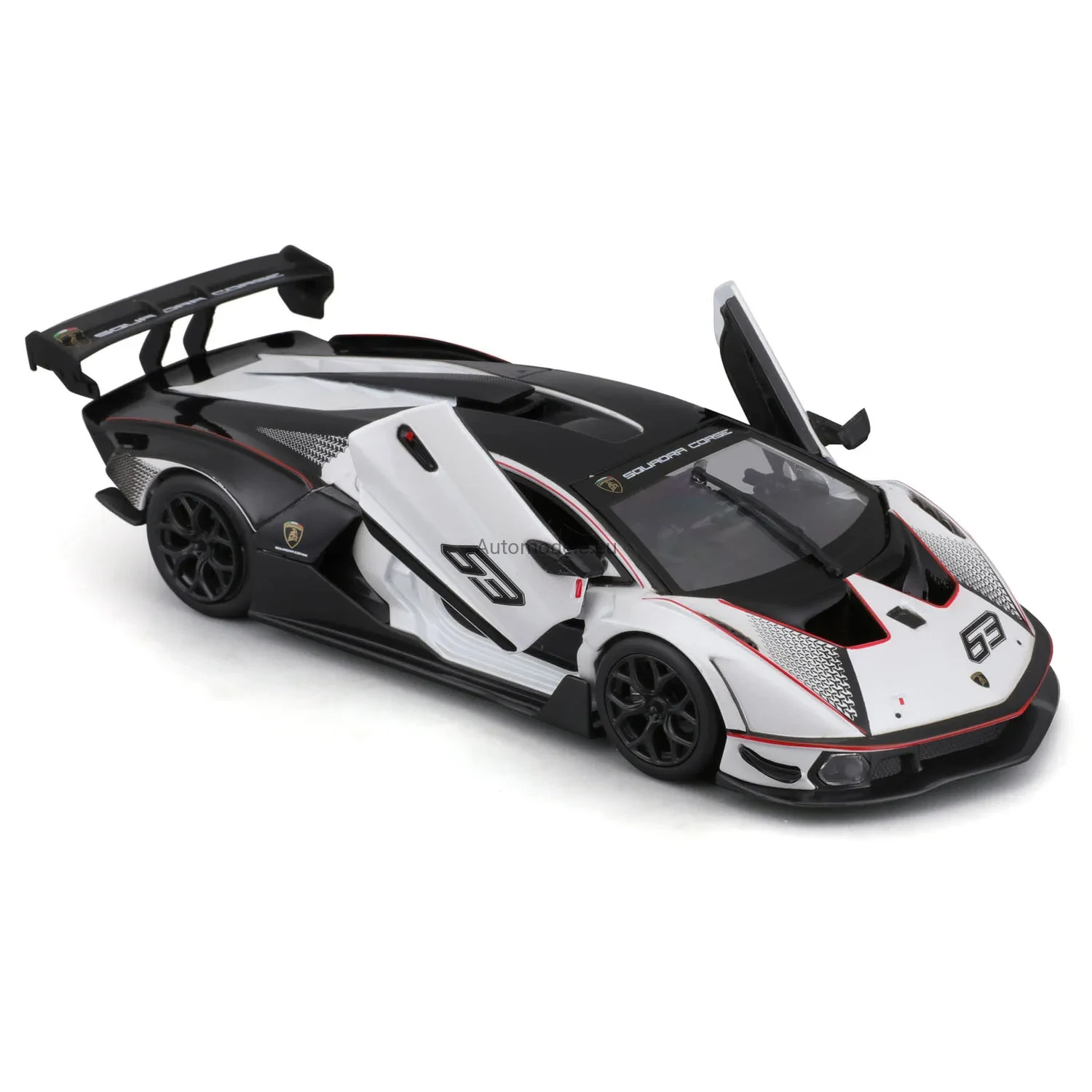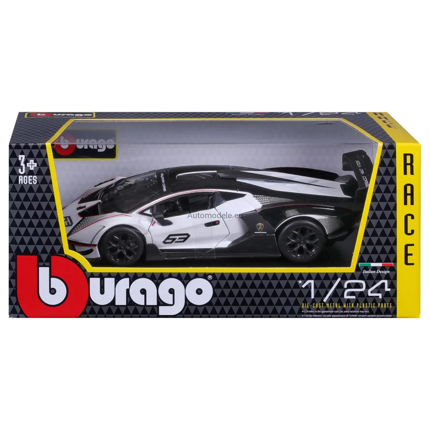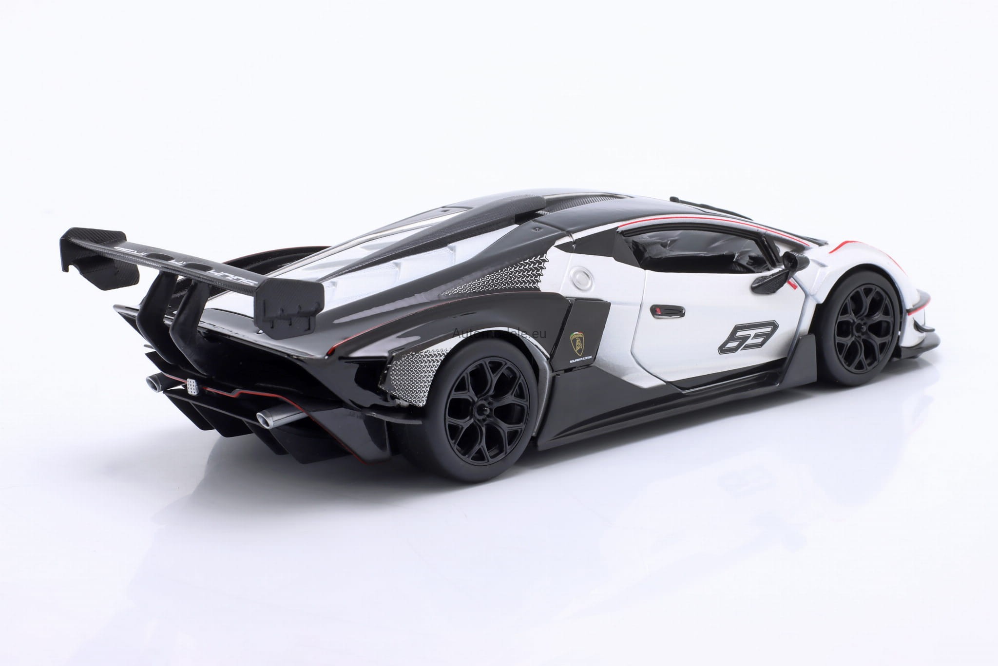 Kolekcjonerski metalowy model samochodu Lamborghini Essenza SCV12 SCV 12 #63 z 2021 roku Racing Race Series w skali 1:24 od Bburago