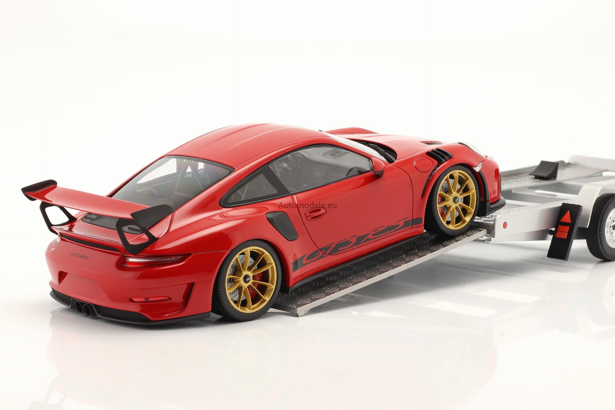 Kolekcjonerski model Laweta Przyczepa Samochodowa z ruchomymi najazdami - Car Hauler Auto Trailer Transporter Anhänger Autotrailer w skali 1:18 od IXO Models