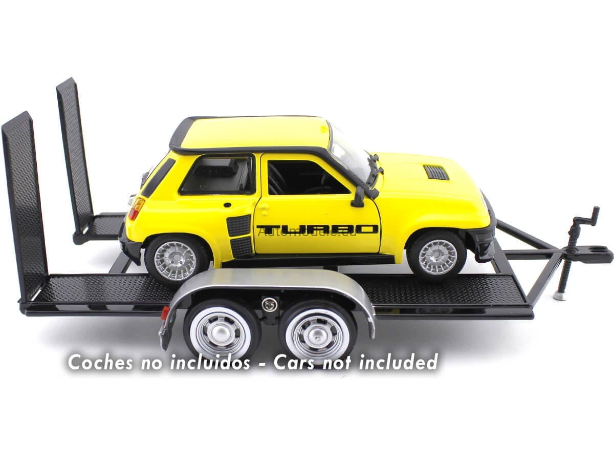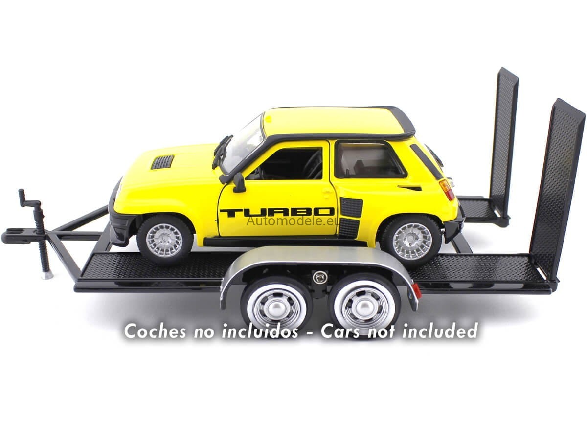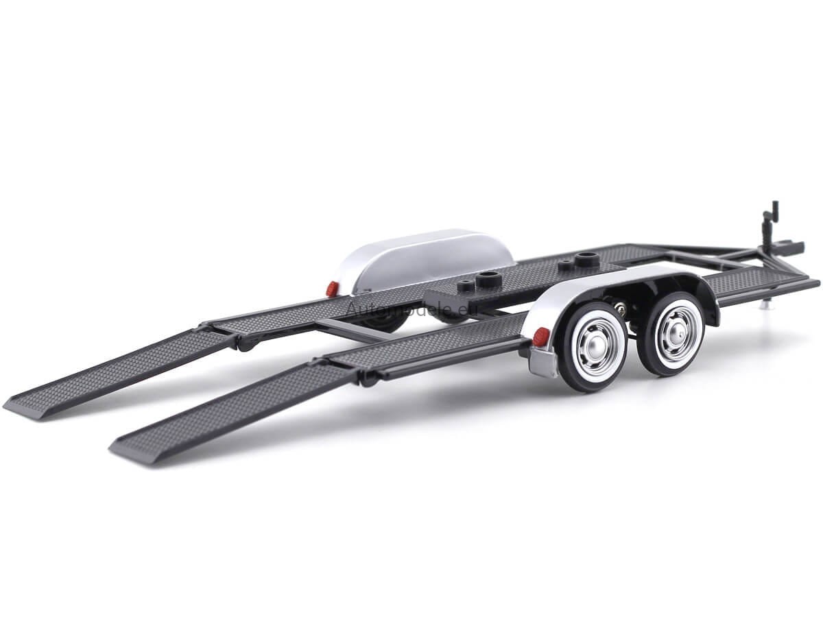 Kolekcjonerski model Laweta Przyczepa Samochodowa z ruchomymi najazdami (rampami) - Car Transport Carrier with Double Axle - Car Hauler Auto Trailer Transporter Anhänger Autotrailer w skali 1:24 od MotorMax / Motor Max