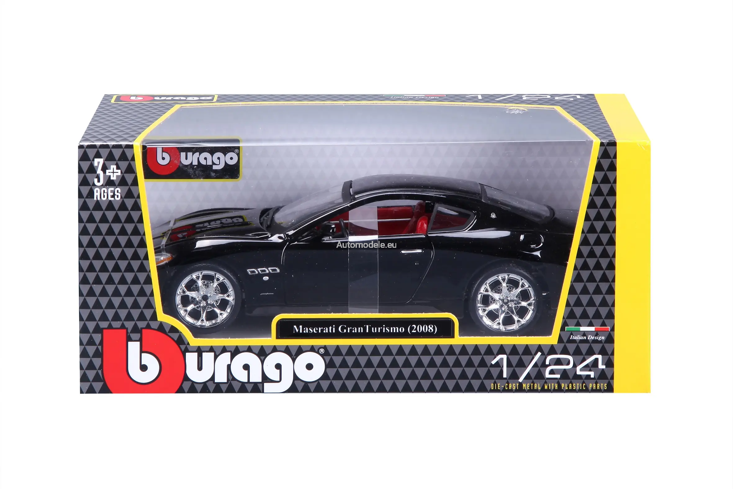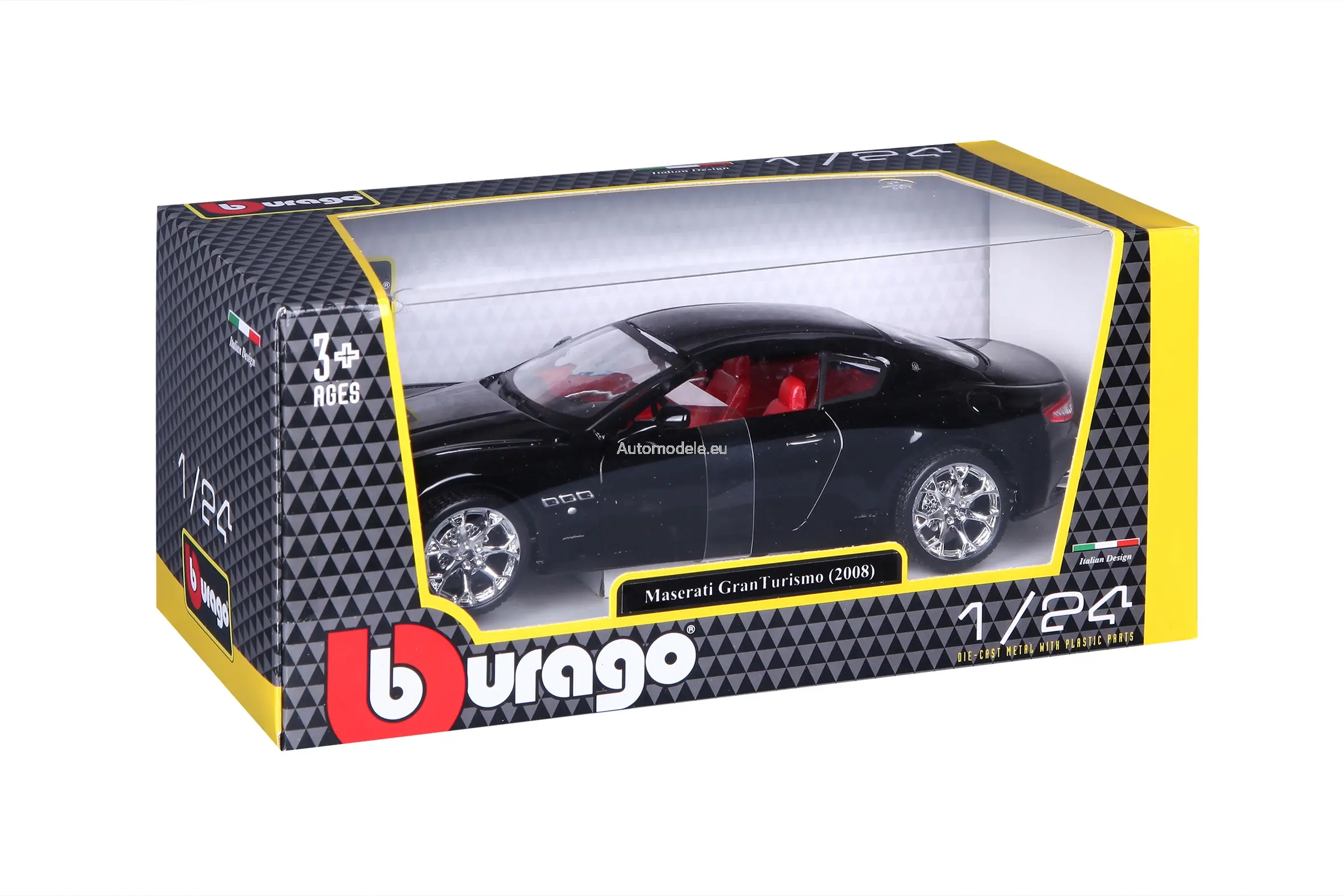 Model samochodu Maserati GranTurismo z 2008 roku w skali 1:24 od Bburago. Numer katalogowy: 22107Bk
