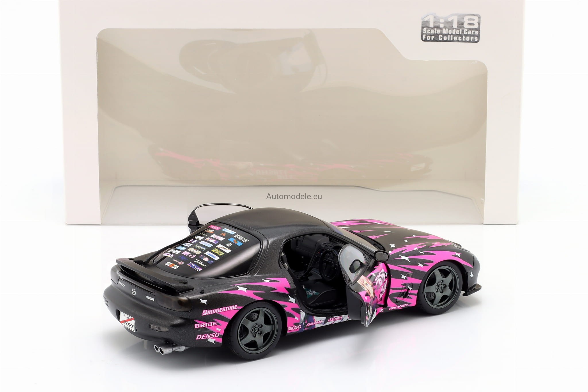 Kolekcjonerski metalowy model samochodu Mazda RX-7 RX7 (FD3) RS FD3RS Itasha Club z 1999 roku w skali 1/18 wyprodukowany przez firmę Solido