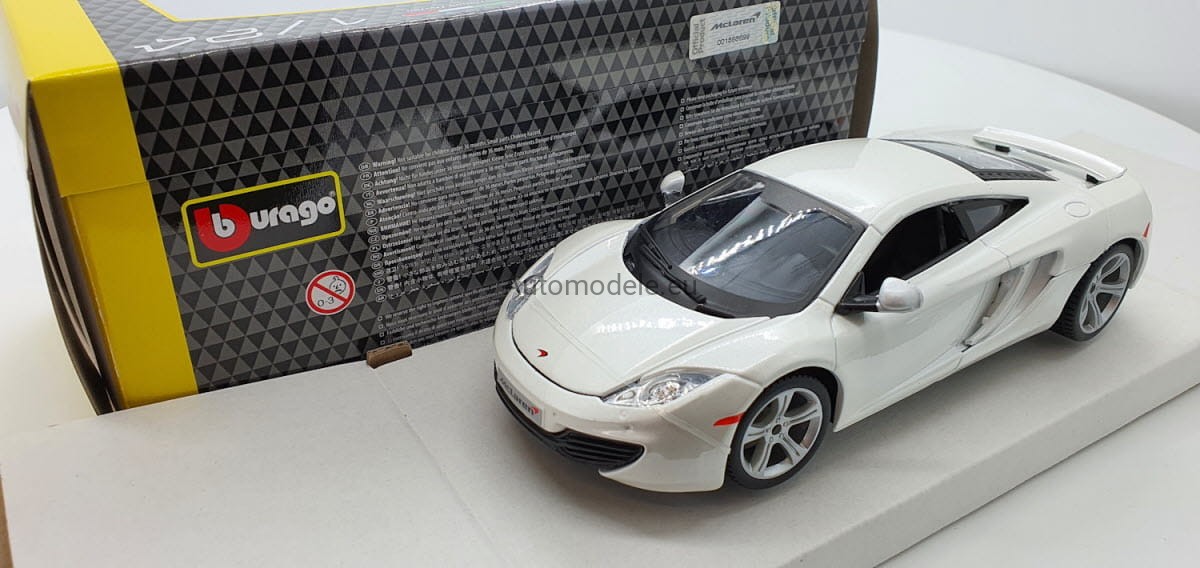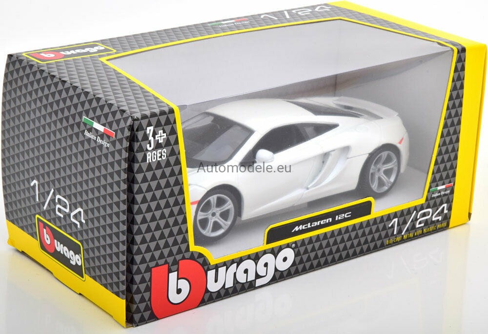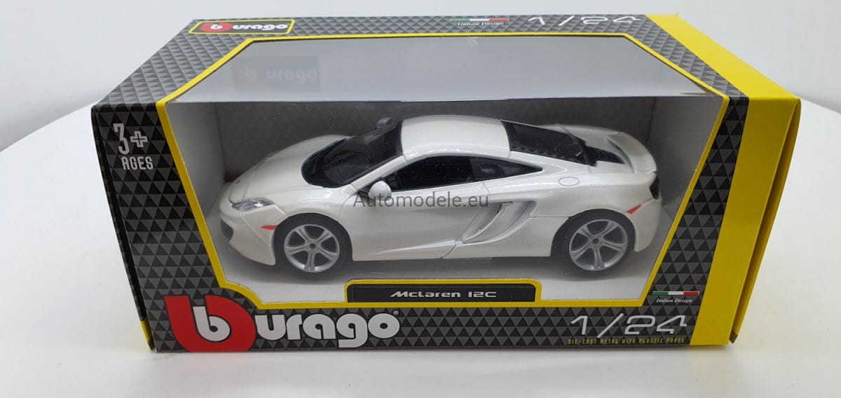 Model samochodu McLaren MP4-12C z 2011 roku w skali 1:24 od Bburago. Numer katalogowy: 21074