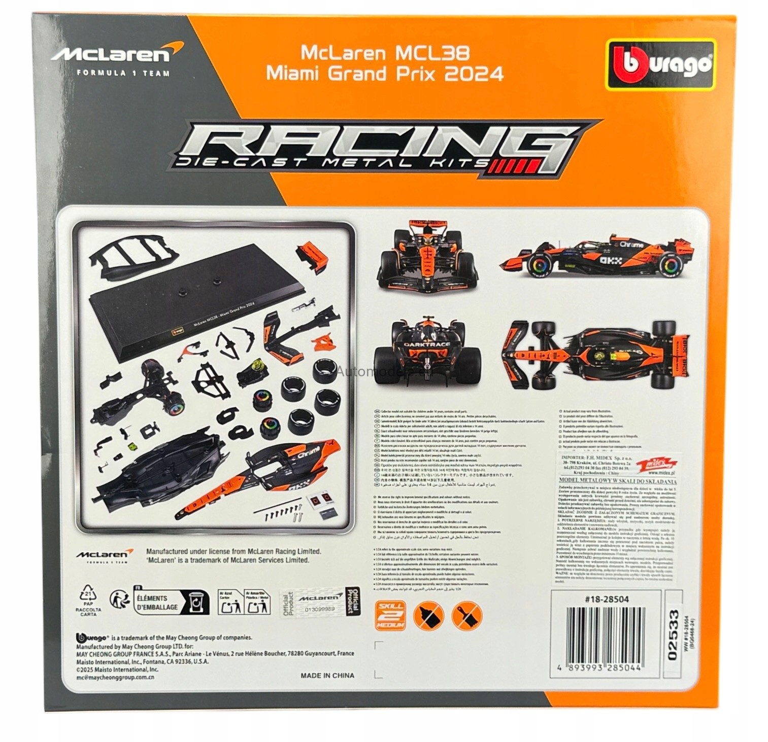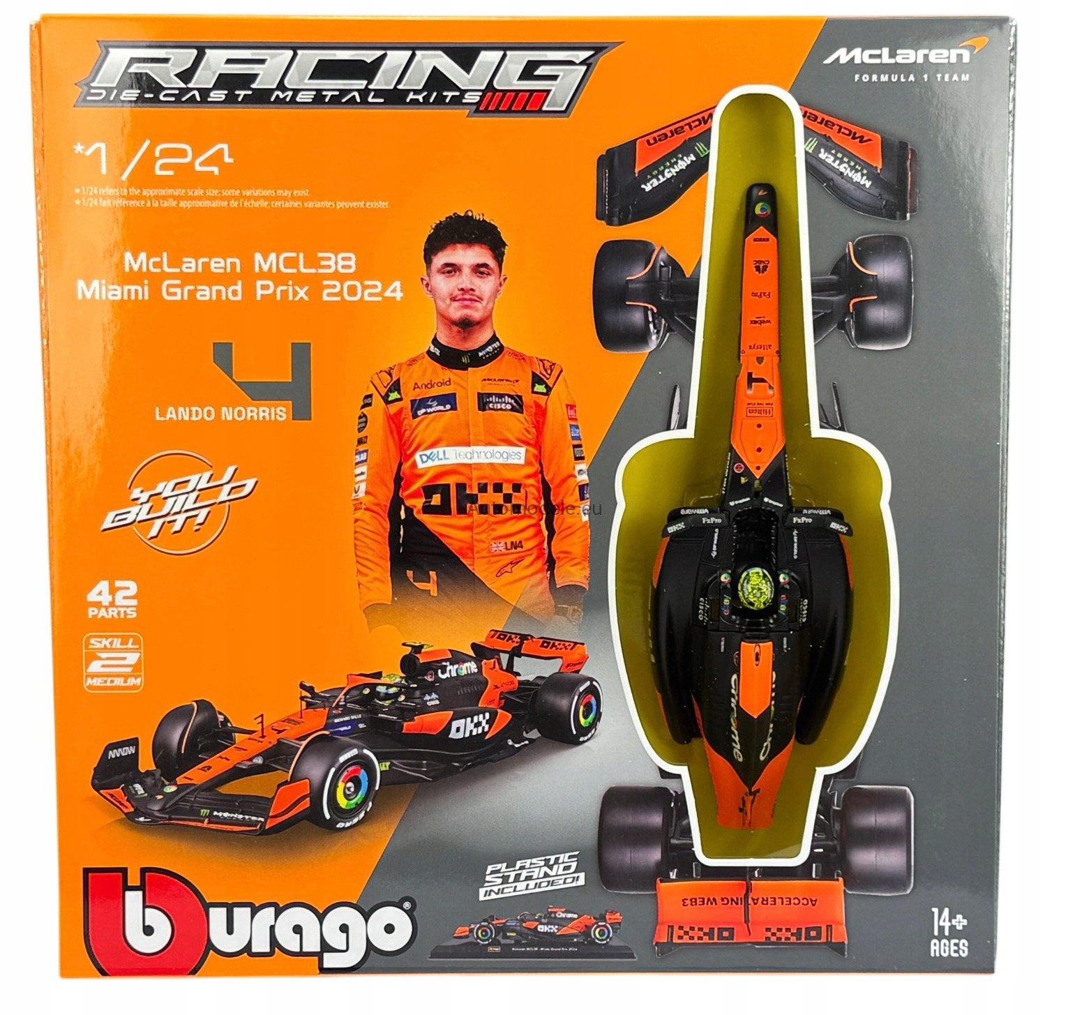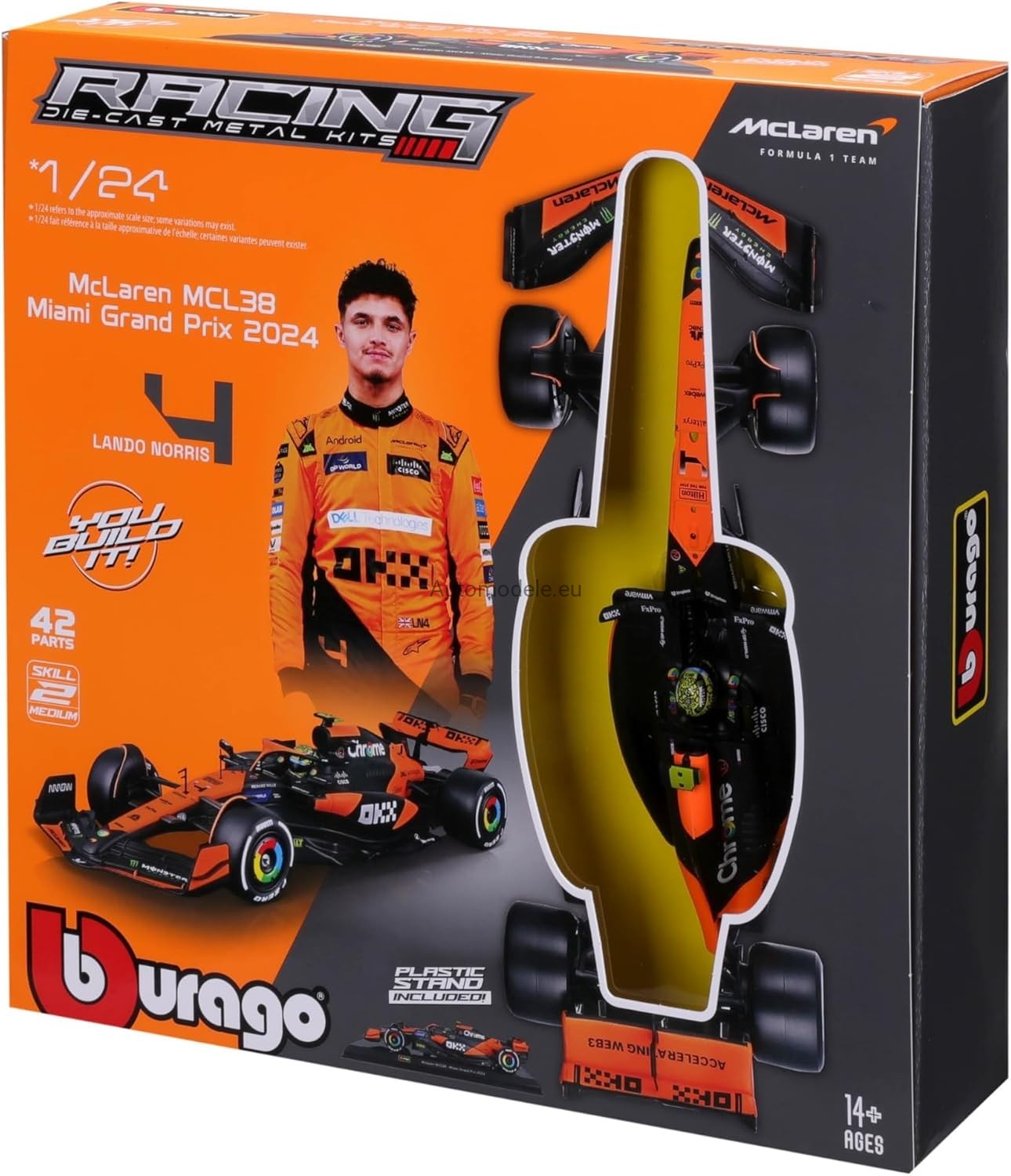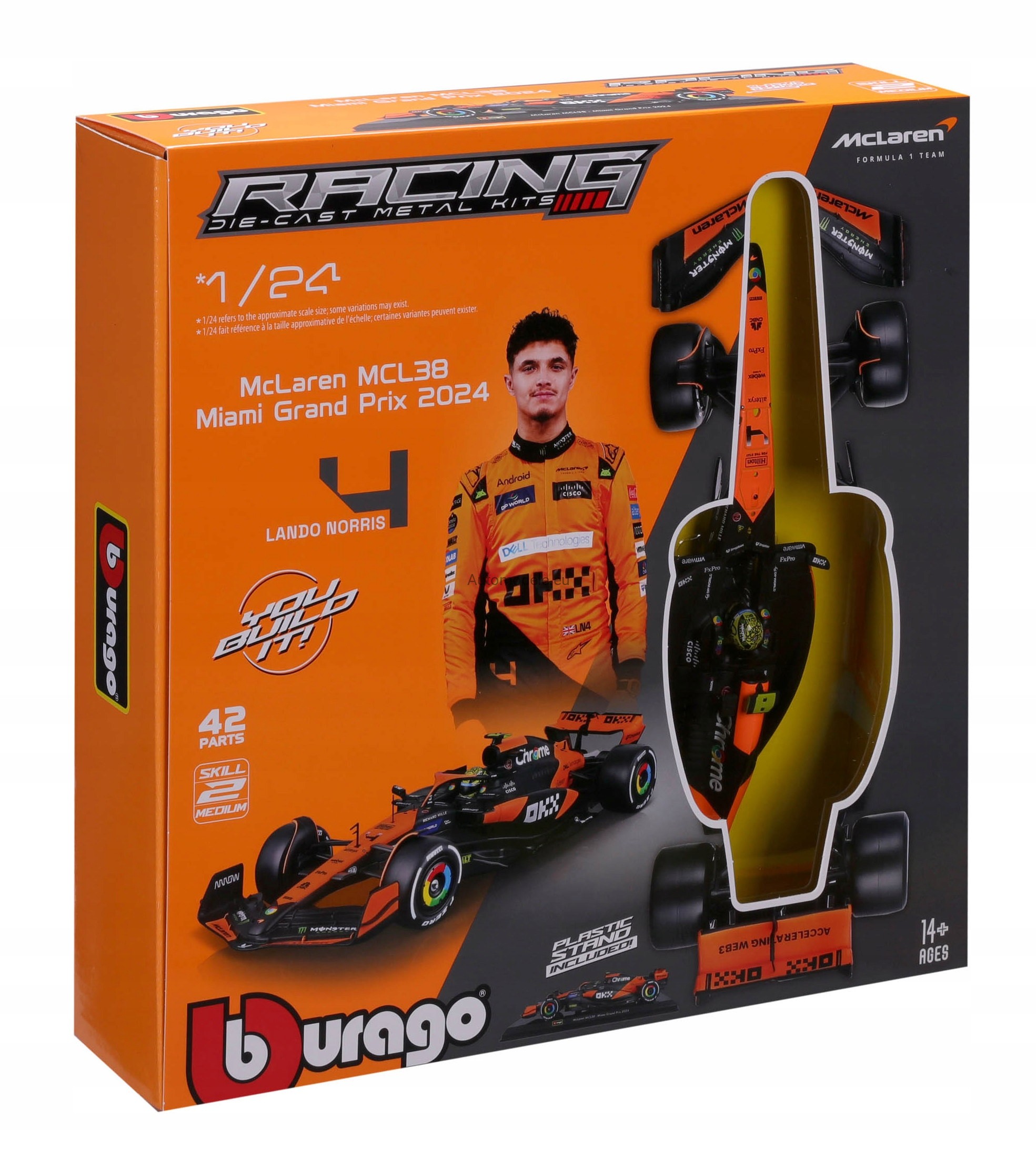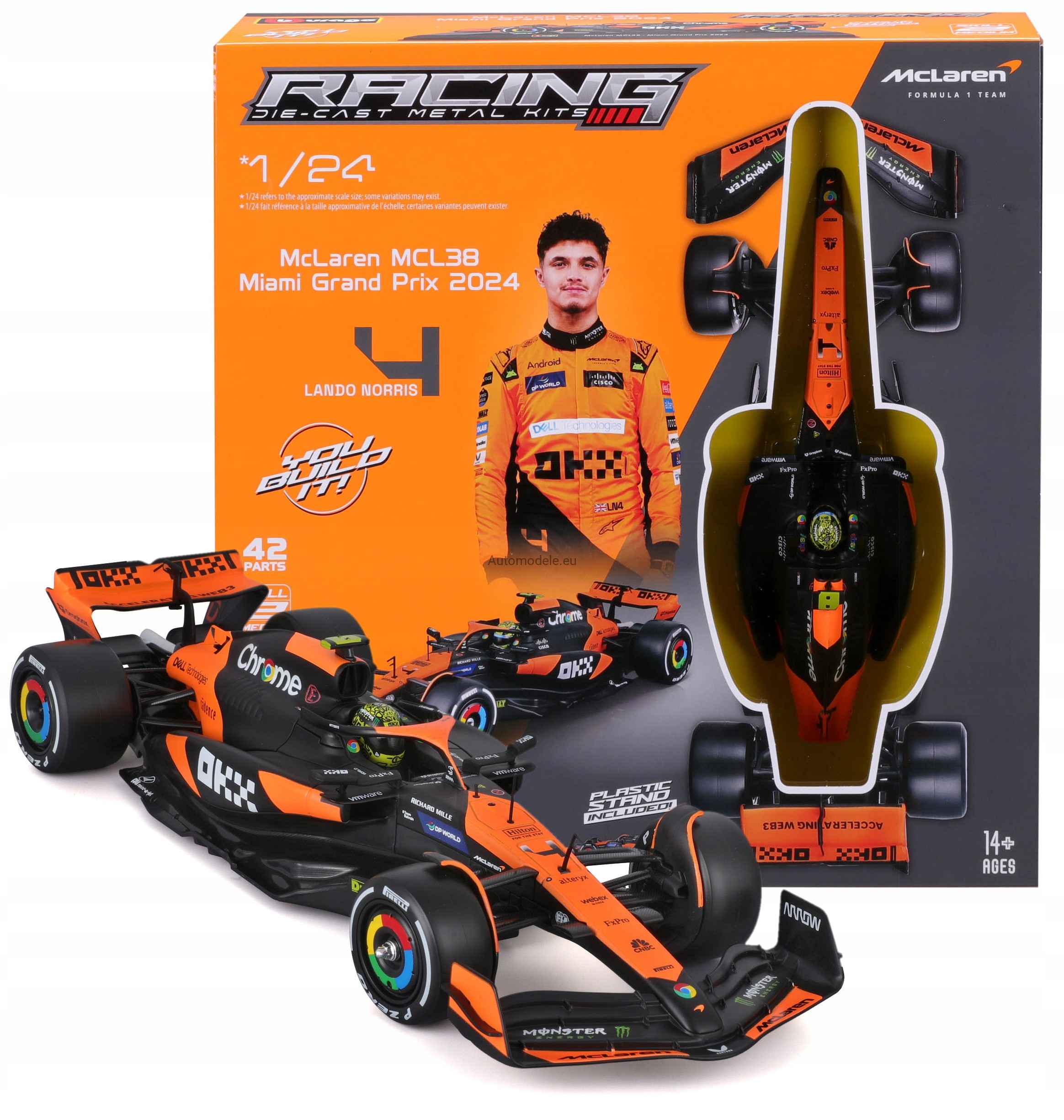 McLaren MCL38 #4 Lando Norris F1 Formula 1 Model Bolid do Składania Złożenia Bburago KIT 1:24