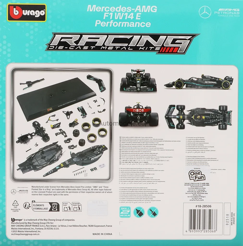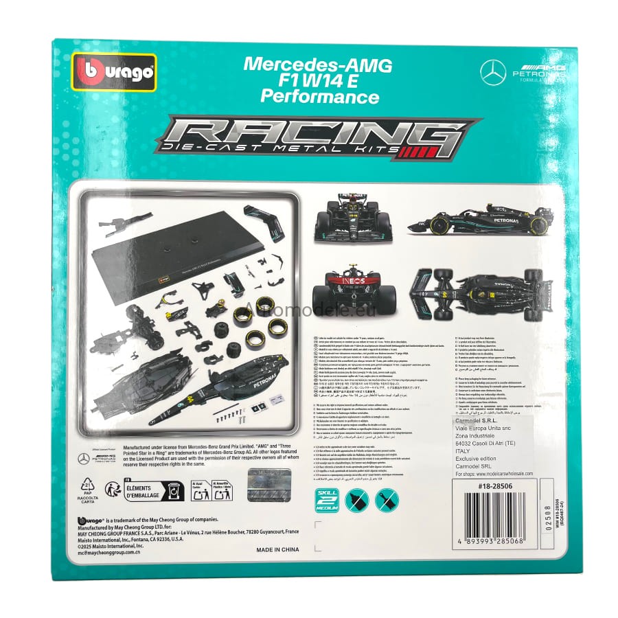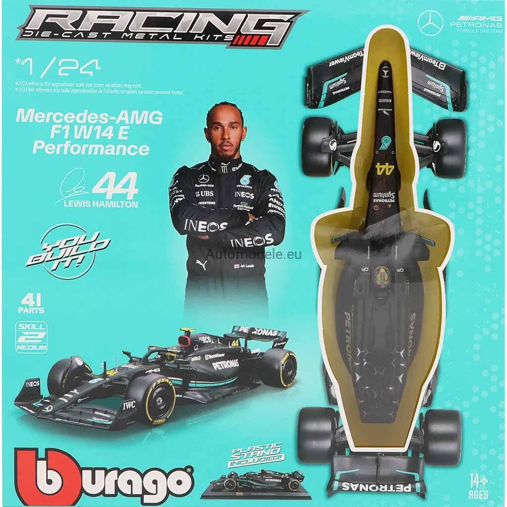 Mercedes-AMG F1 W14 E Performance #44 Lewis Hamilton 2023 F1 Formula 1 Model Bolid do Składania Złożenia Bburago KIT 1:24