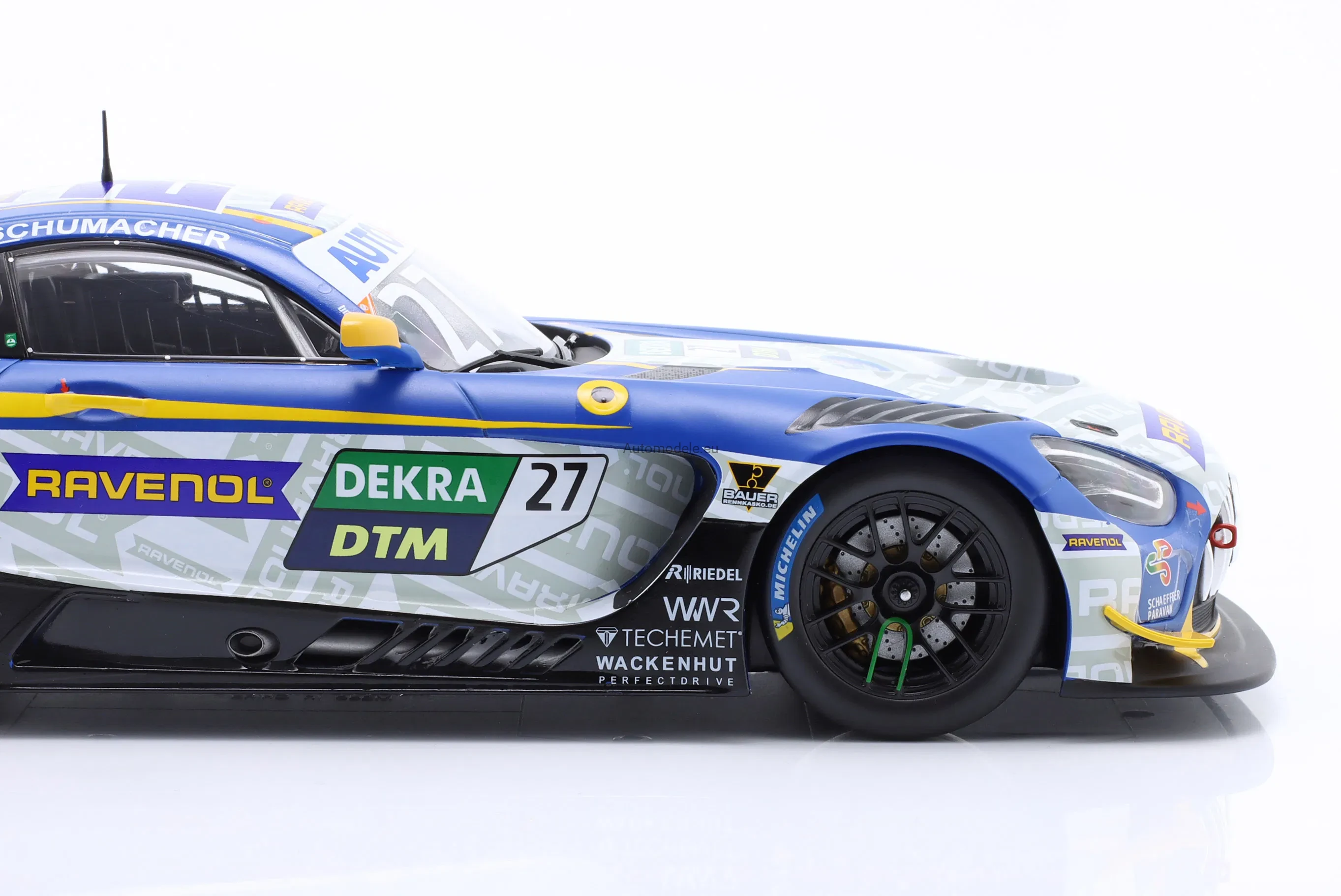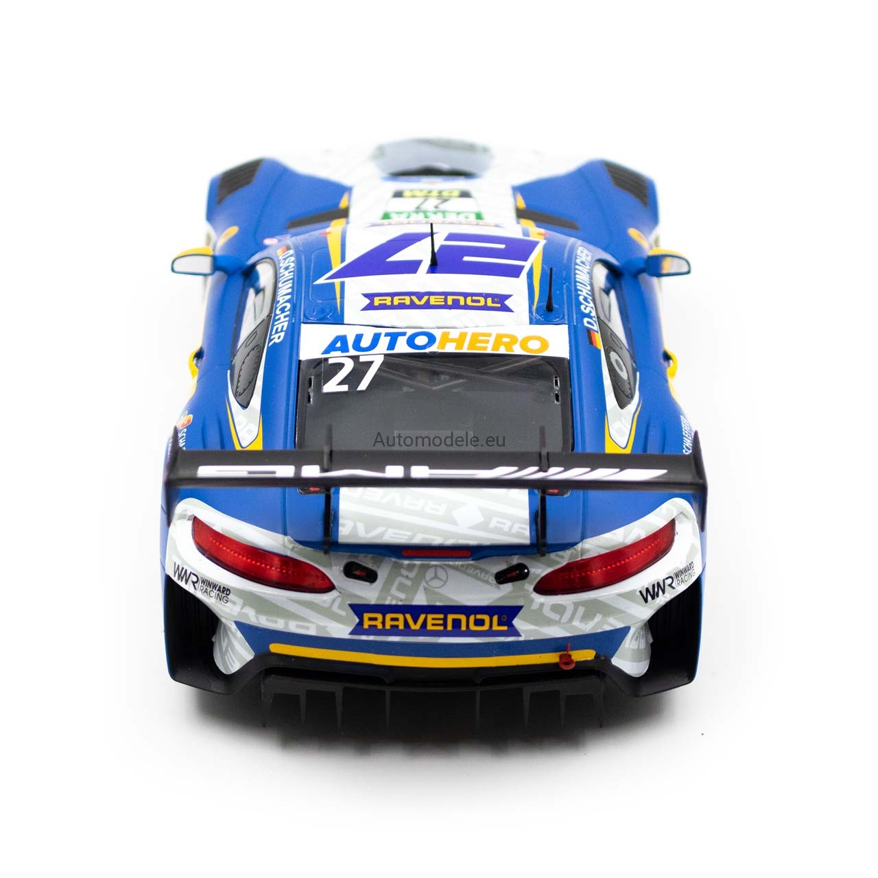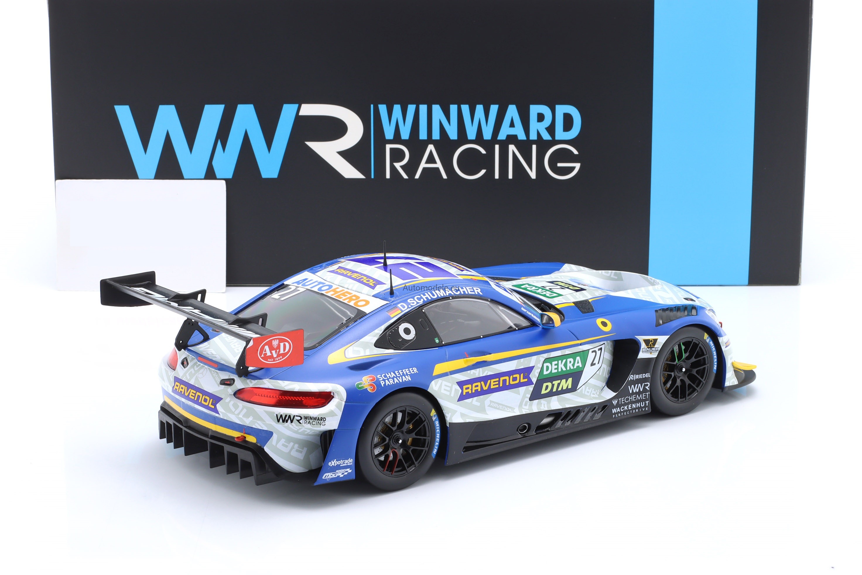 Kolekcjonerski metalowy model samochodu Mercedes-Benz AMG GT3 Evo #27 Team Winward DTM - D. Schumacher z 2022 roku w skali 1/18 wyprodukowany przez firmę IXO Models