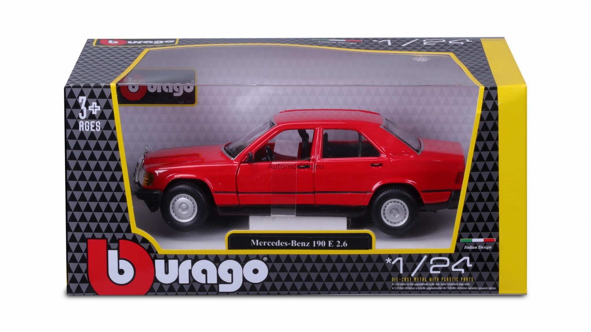 Kolekcjonerski metalowy model samochodu Mercedes-Benz 190E 190 E 2.6 (W201) W201 z 1987 roku w skali 1:24 od Bburago