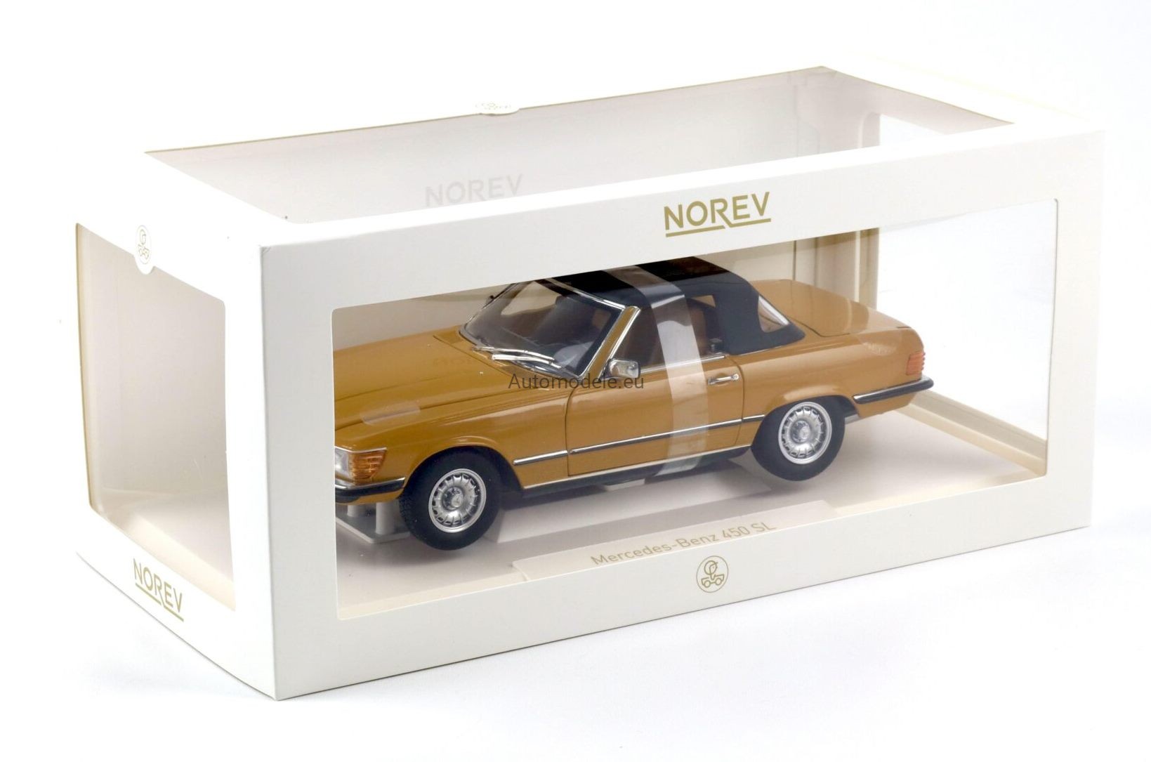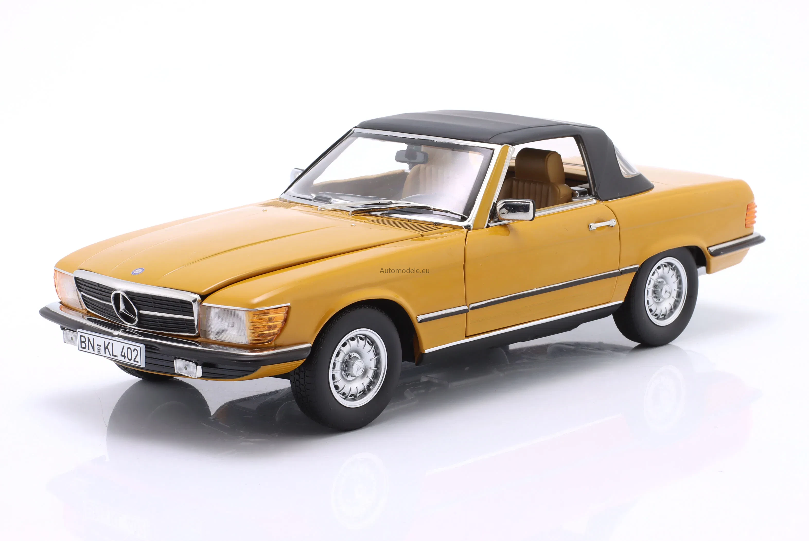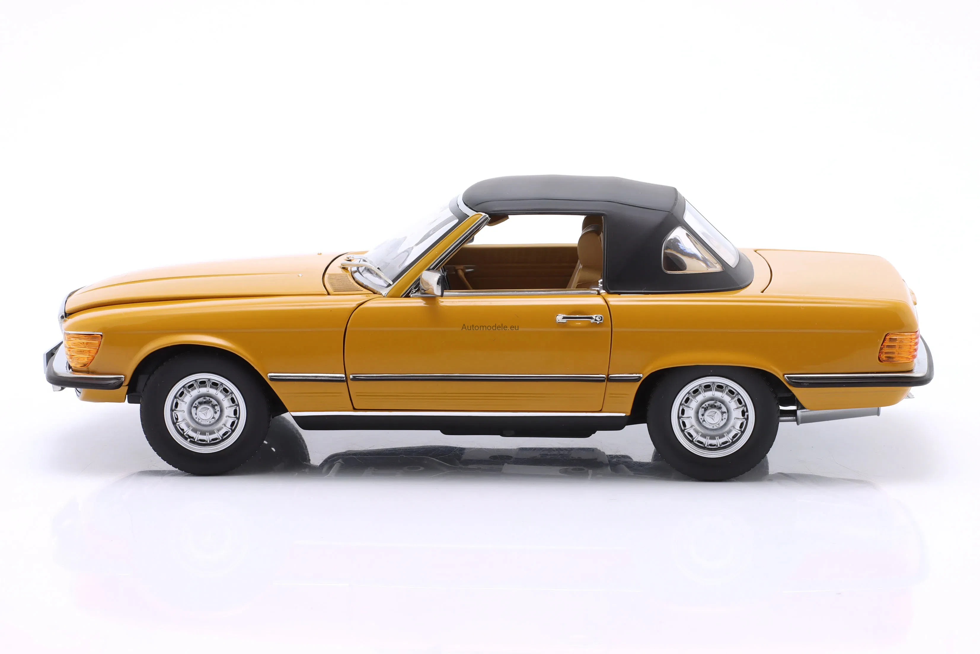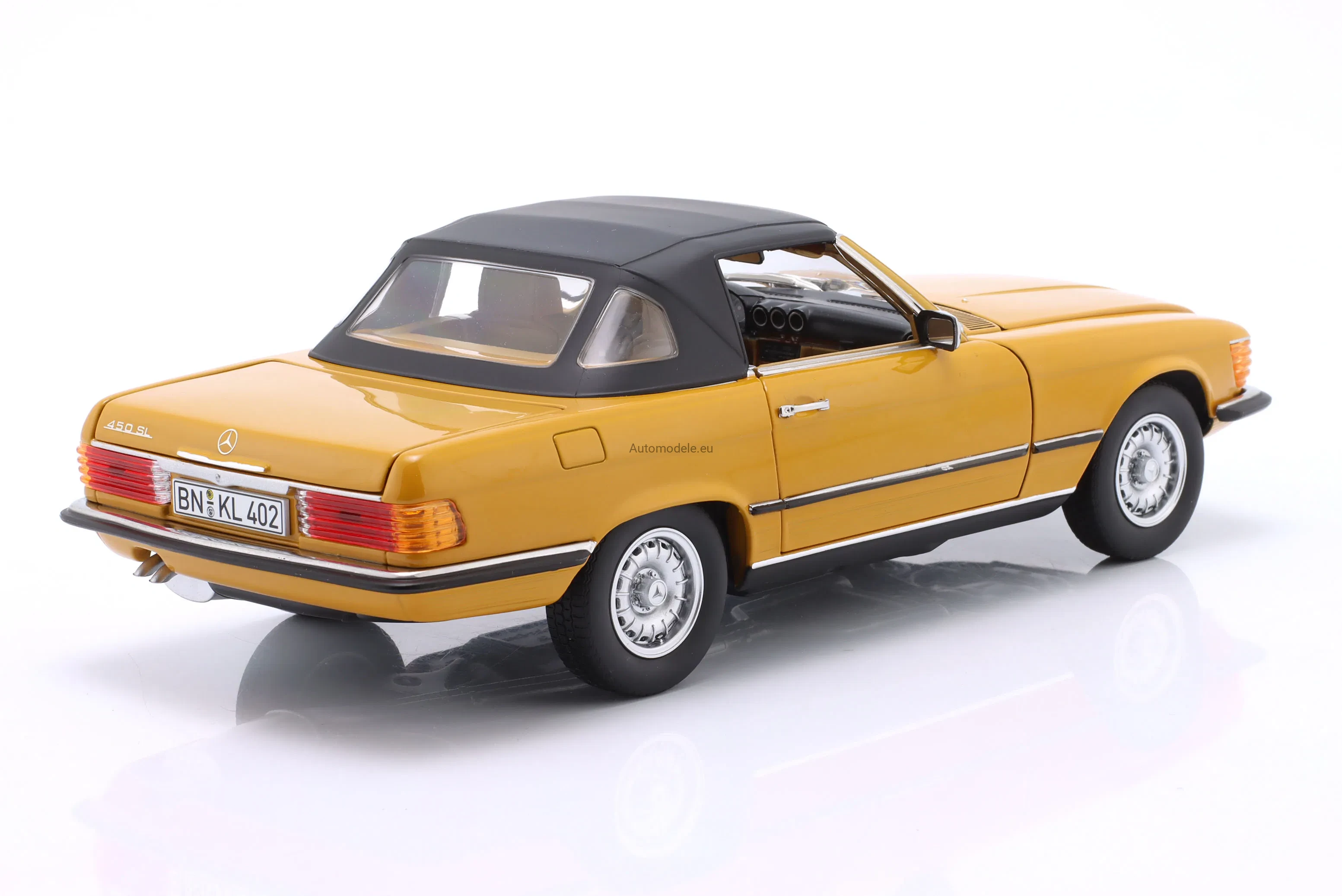 Kolekcjonerski metalowy model samochodu Mercedes-Benz Mercedes MB 450 SL 450SL SL450 (R107) R107 SL-Class Cabriolet Spider Convertible Roadster z 1975 roku w skali 1/18 wyprodukowany przez firmę Norev
