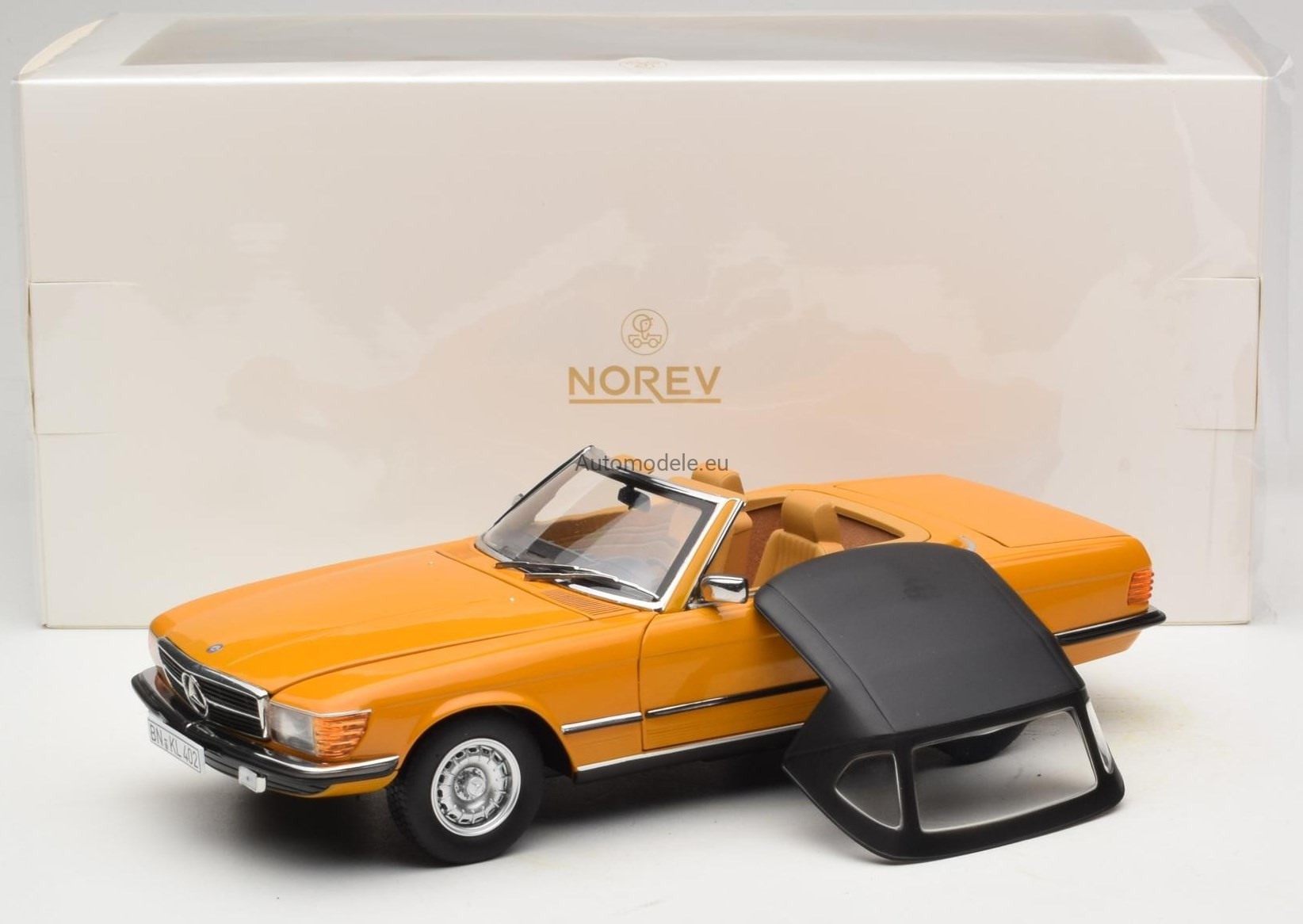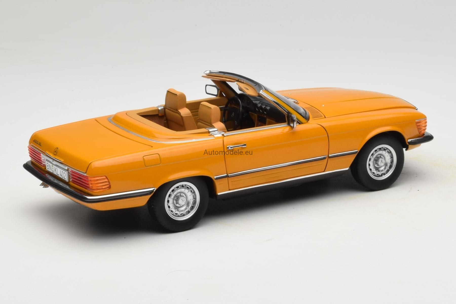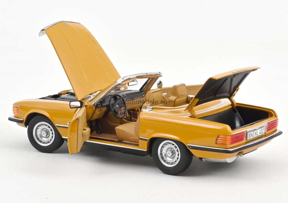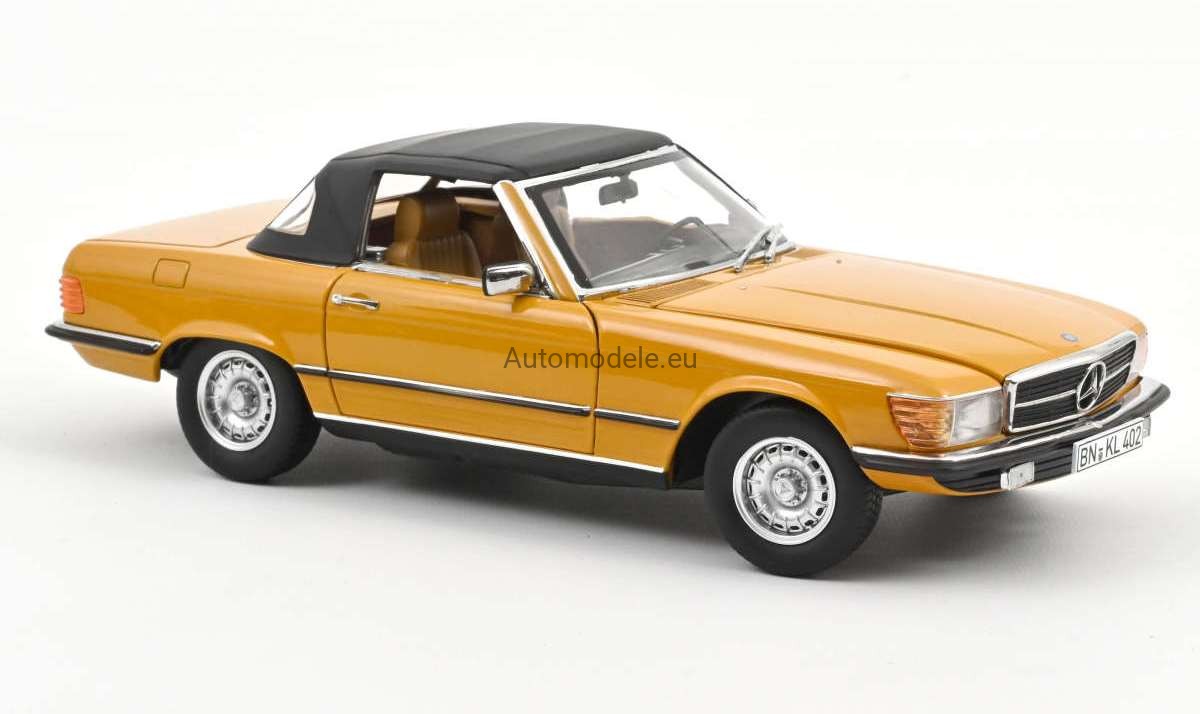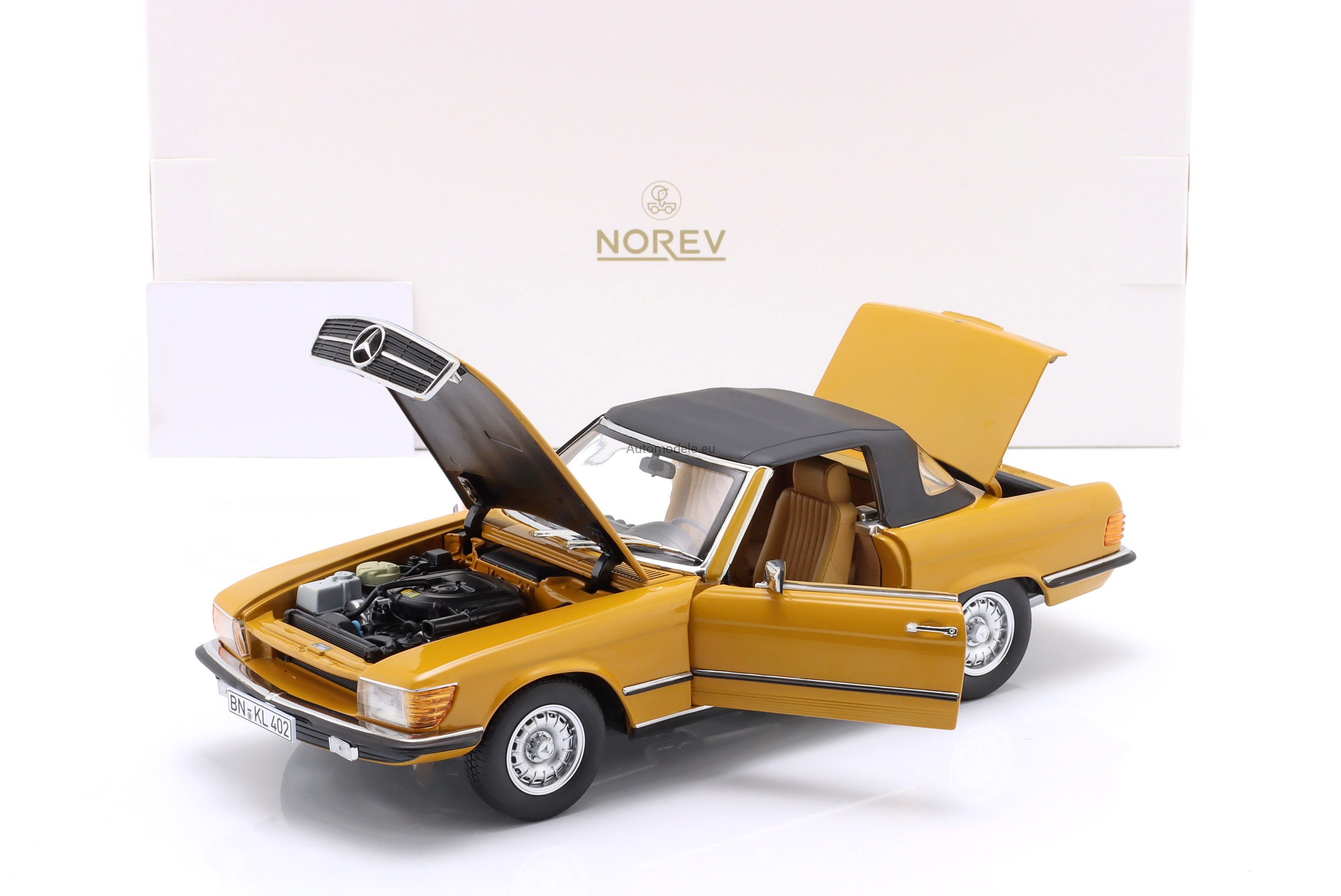 Kolekcjonerski metalowy model samochodu Mercedes-Benz Mercedes MB 450 SL 450SL SL450 (R107) R107 SL-Class Cabriolet Spider Convertible Roadster z 1975 roku w skali 1/18 wyprodukowany przez firmę Norev
