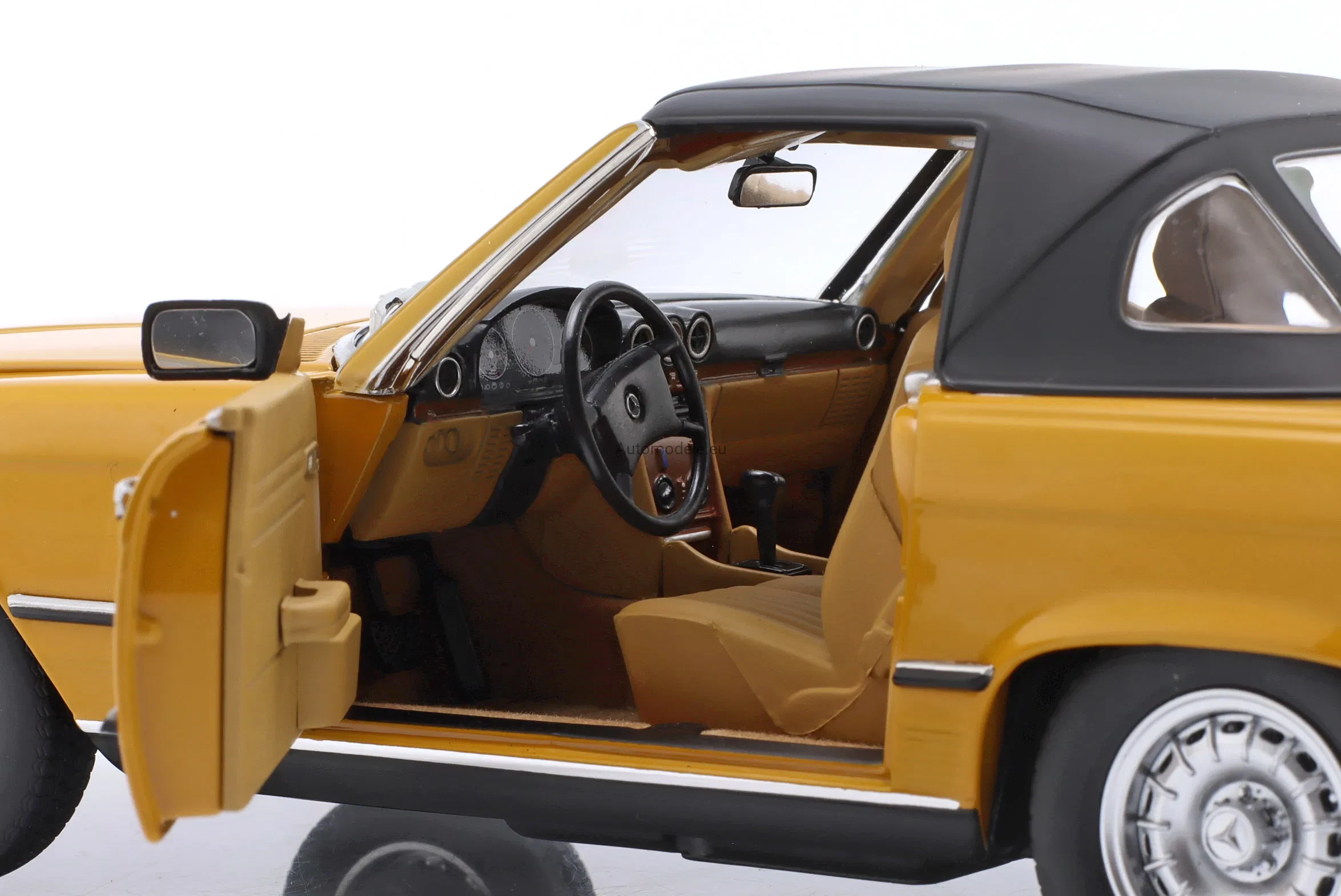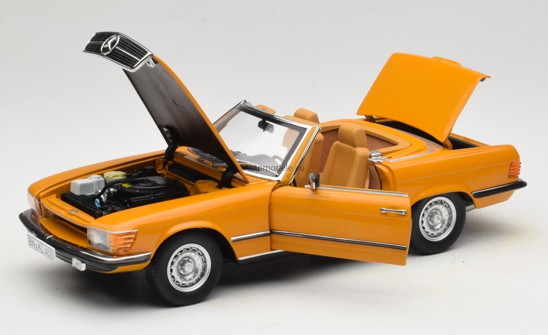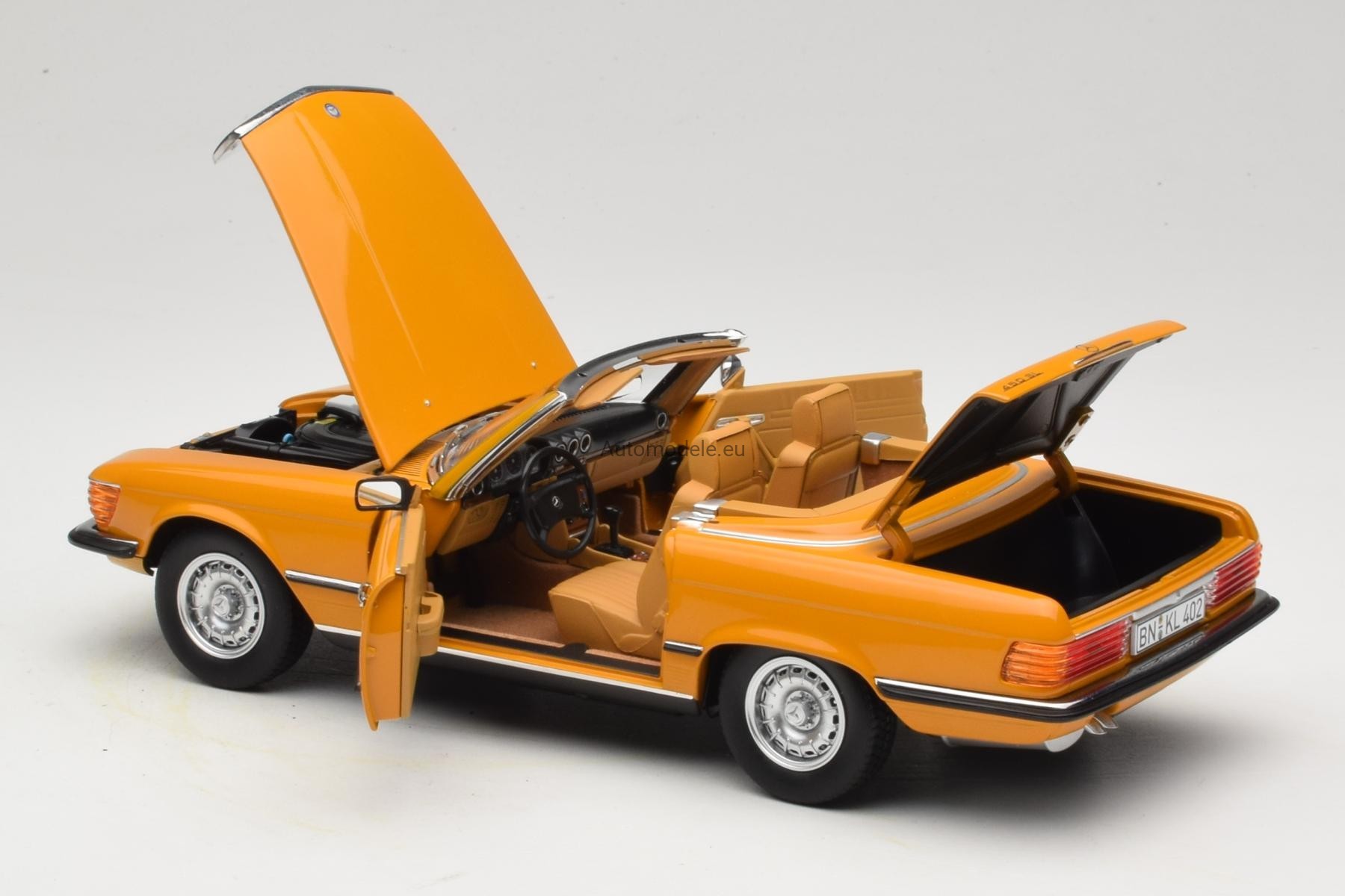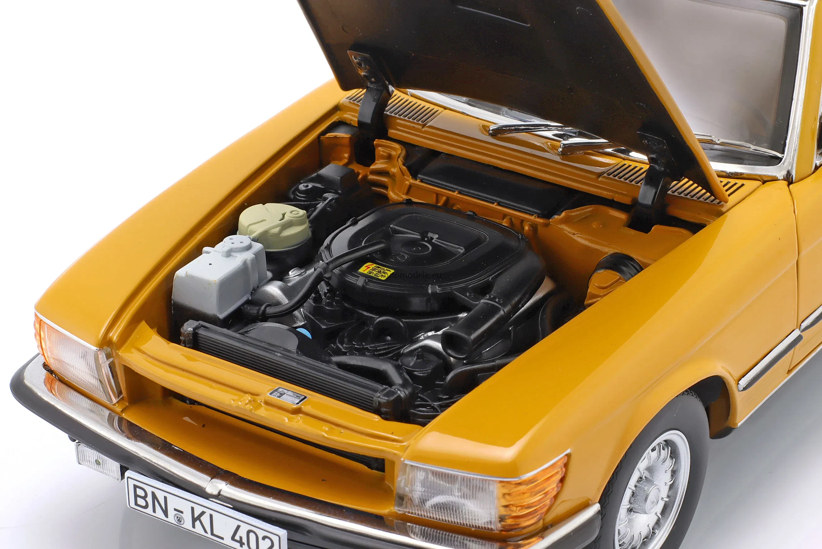 Kolekcjonerski metalowy model samochodu Mercedes-Benz Mercedes MB 450 SL 450SL SL450 (R107) R107 SL-Class Cabriolet Spider Convertible Roadster z 1975 roku w skali 1/18 wyprodukowany przez firmę Norev