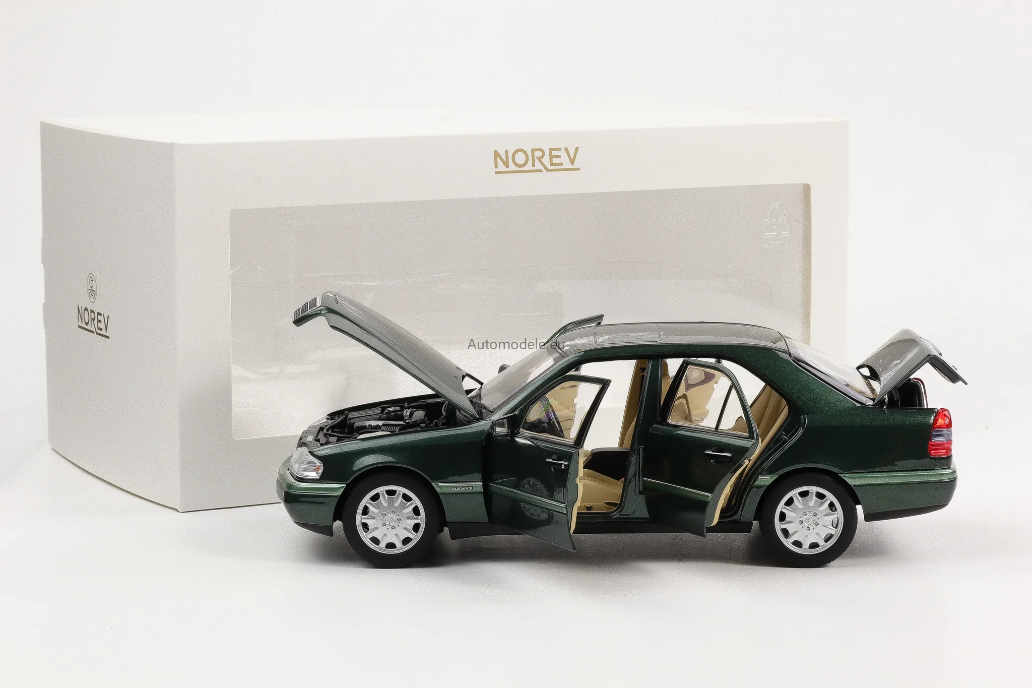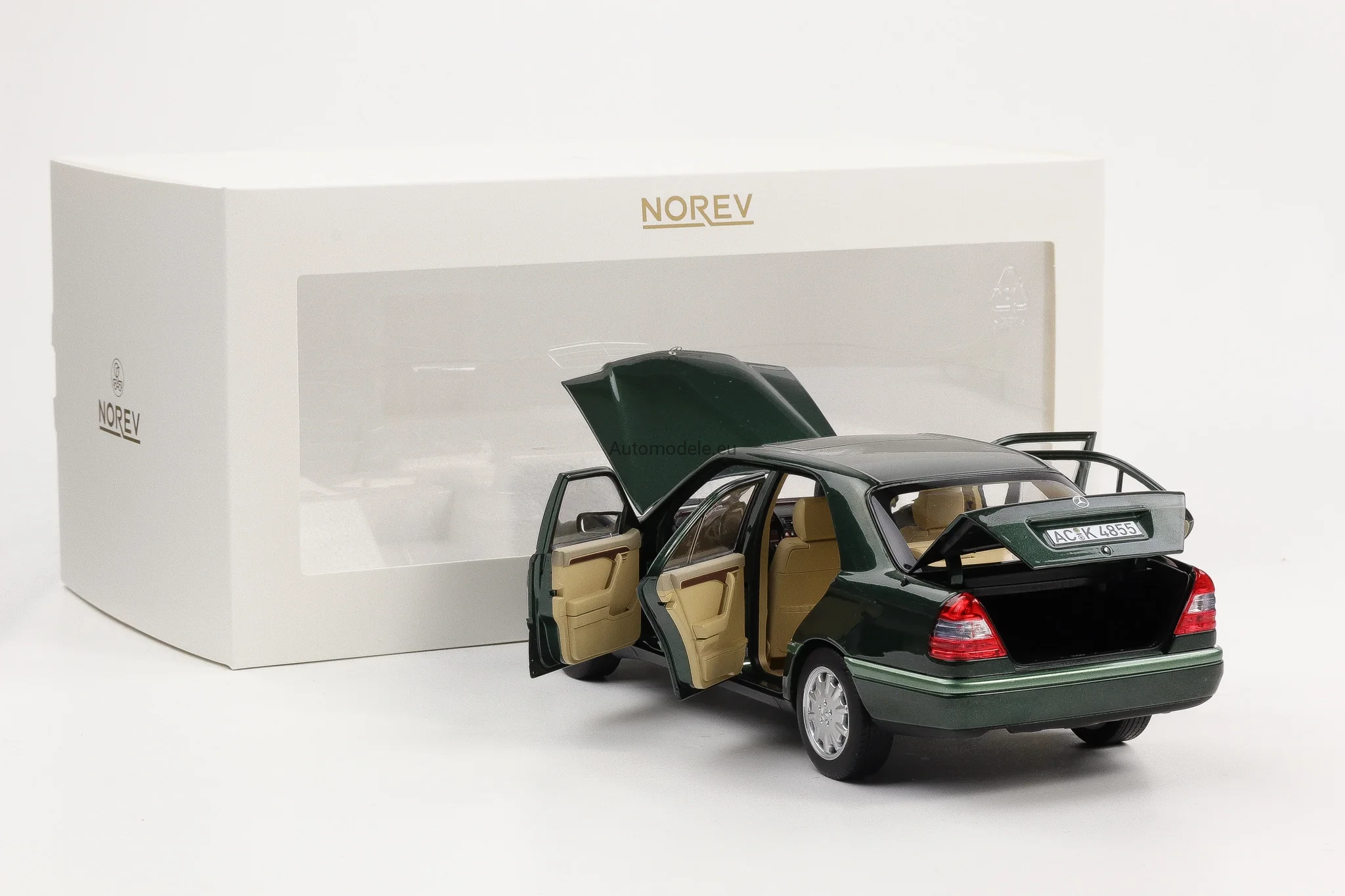 Kolekcjonerski metalowy model samochodu Mercedes-Benz C-Class 200 C200 (W202) W202 z 1993 roku w skali 1/18 wyprodukowany przez firmę Norev