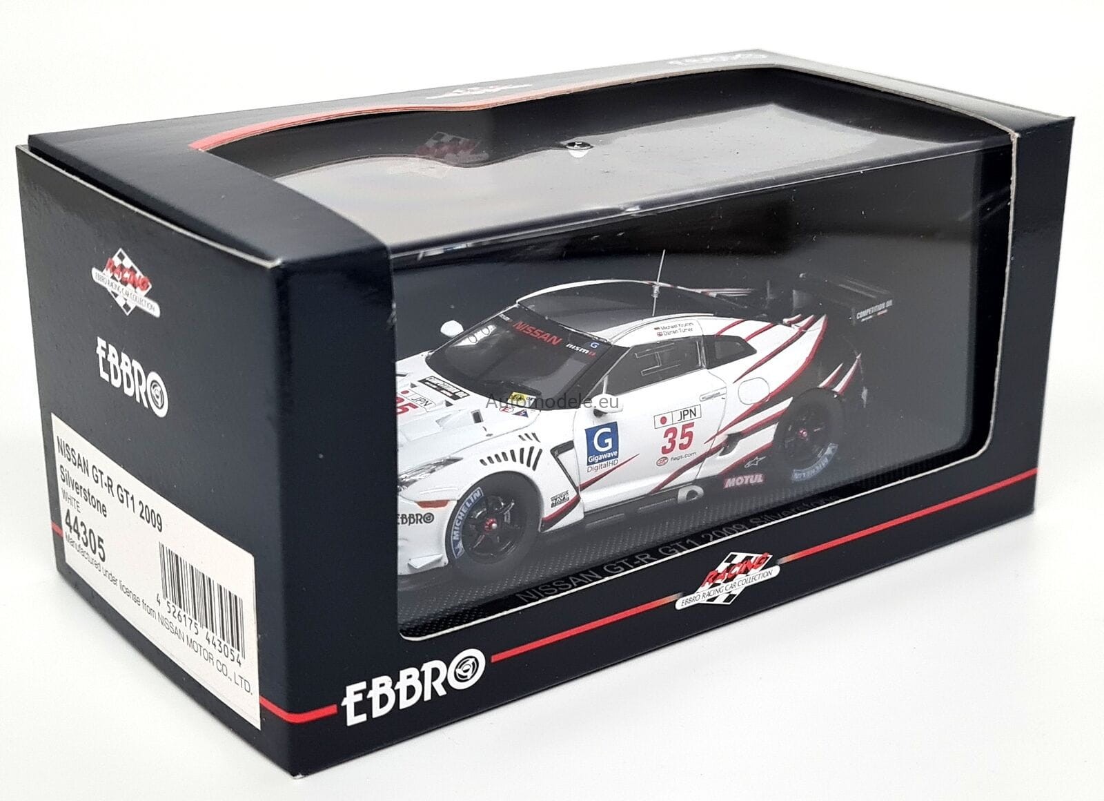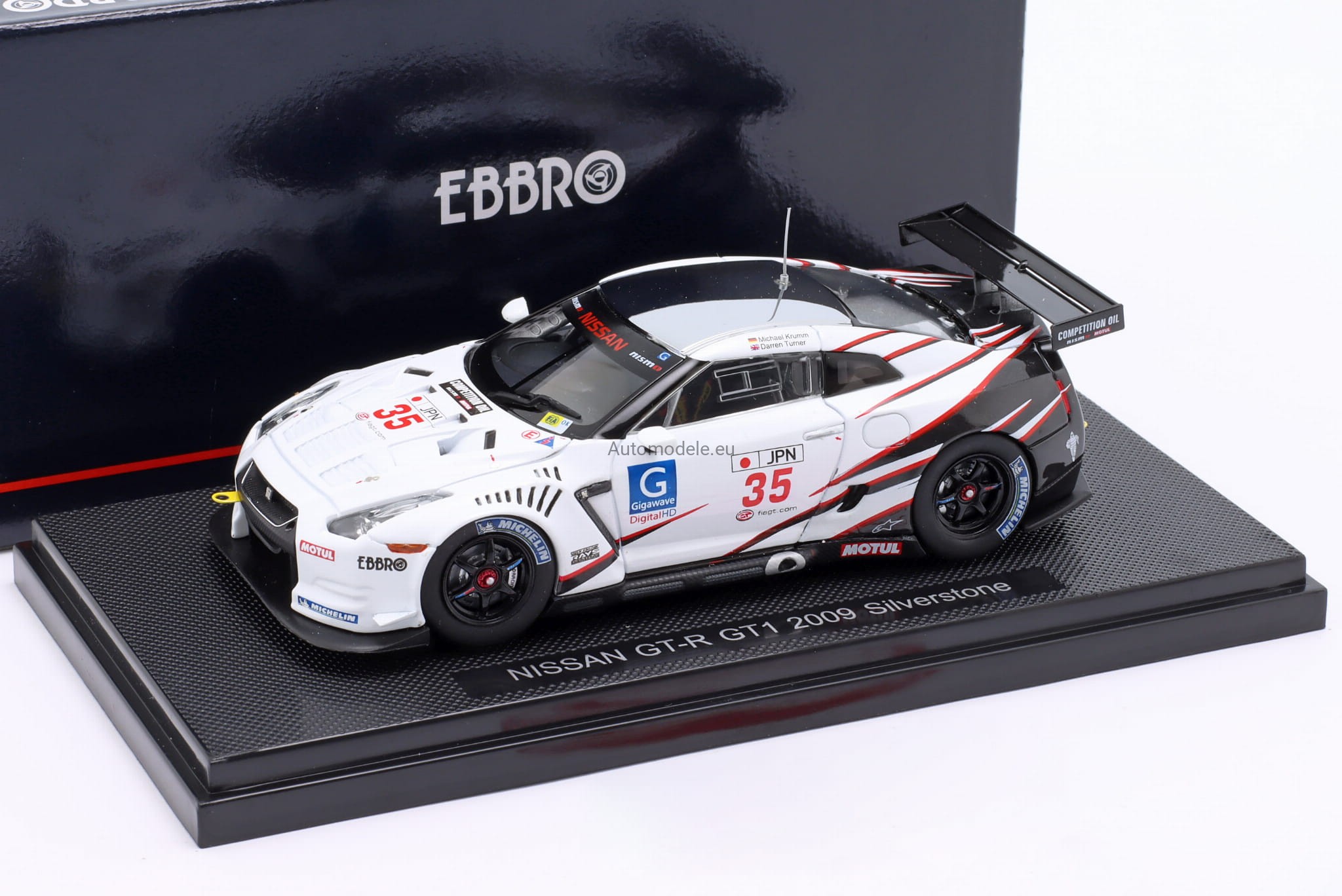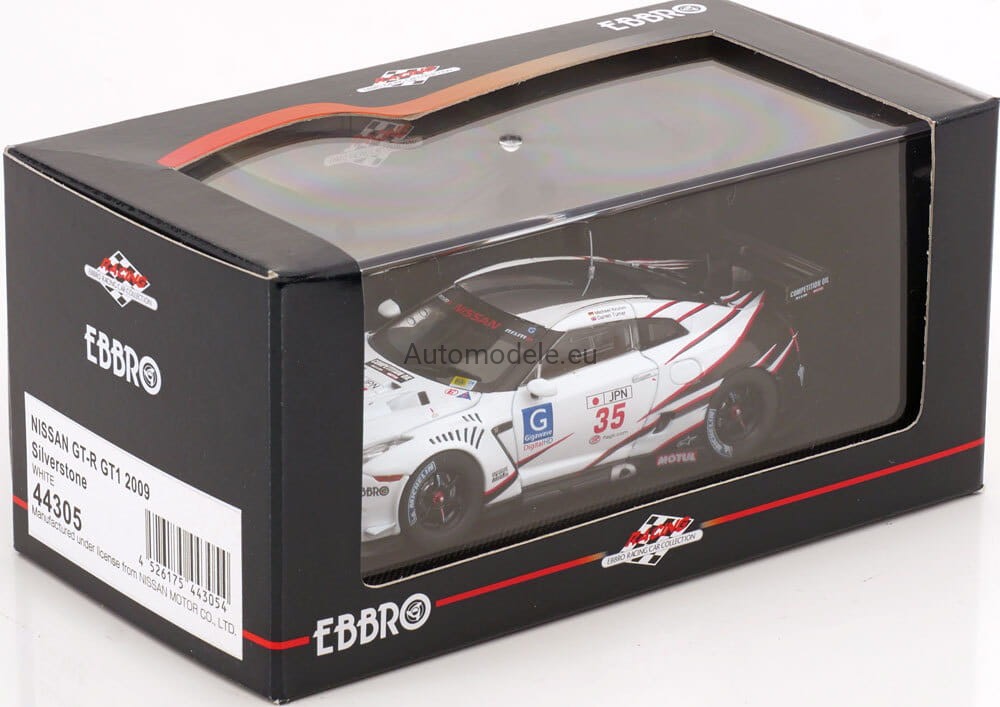 Kolekcjonerski model samochodu Nissan GT-R GTR R35 GT1 #35 FIA GT Championship Silverstone - Turner, Krumm z 2009 roku w skali 1:43 od Ebbro