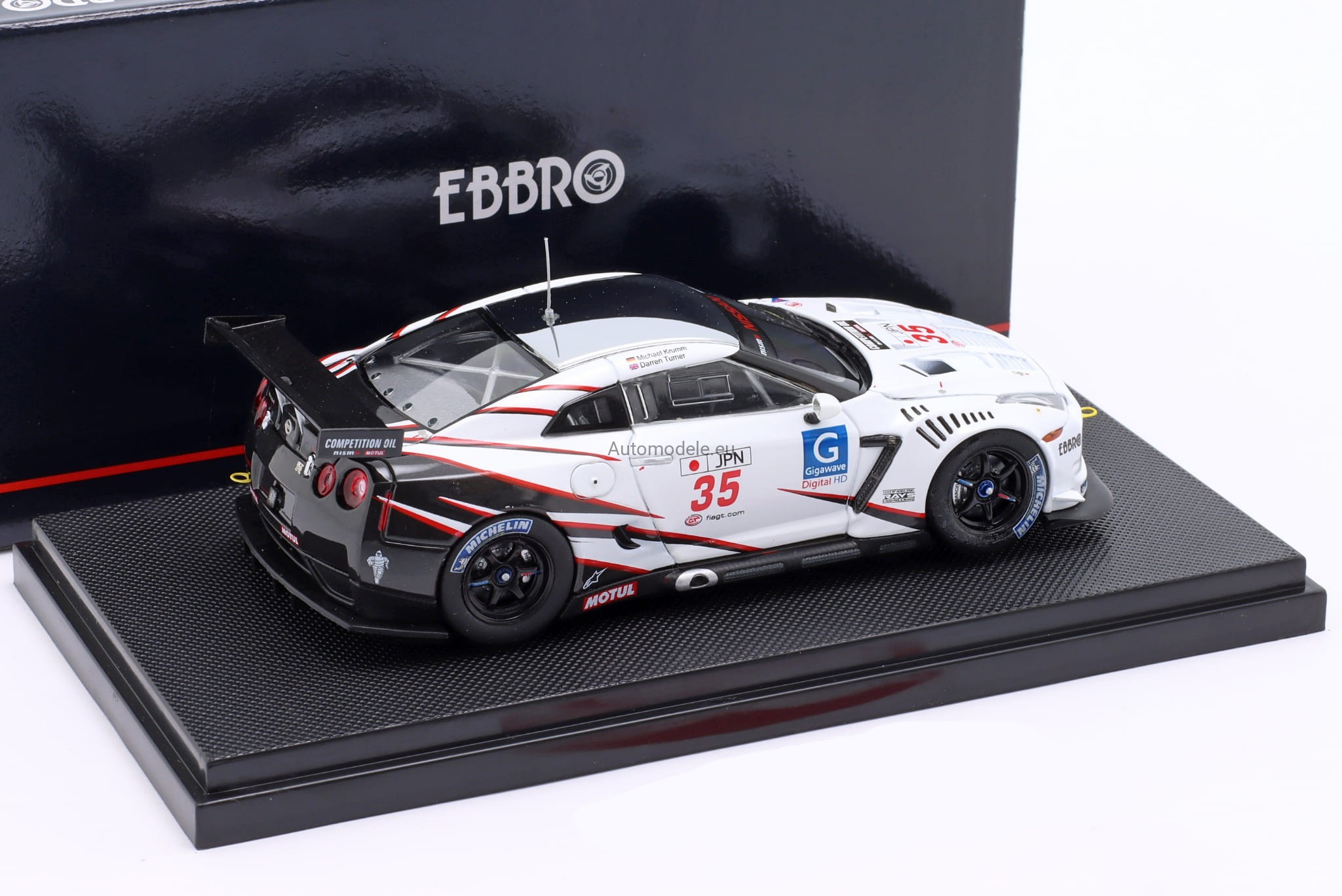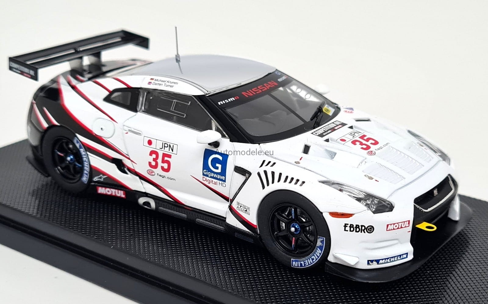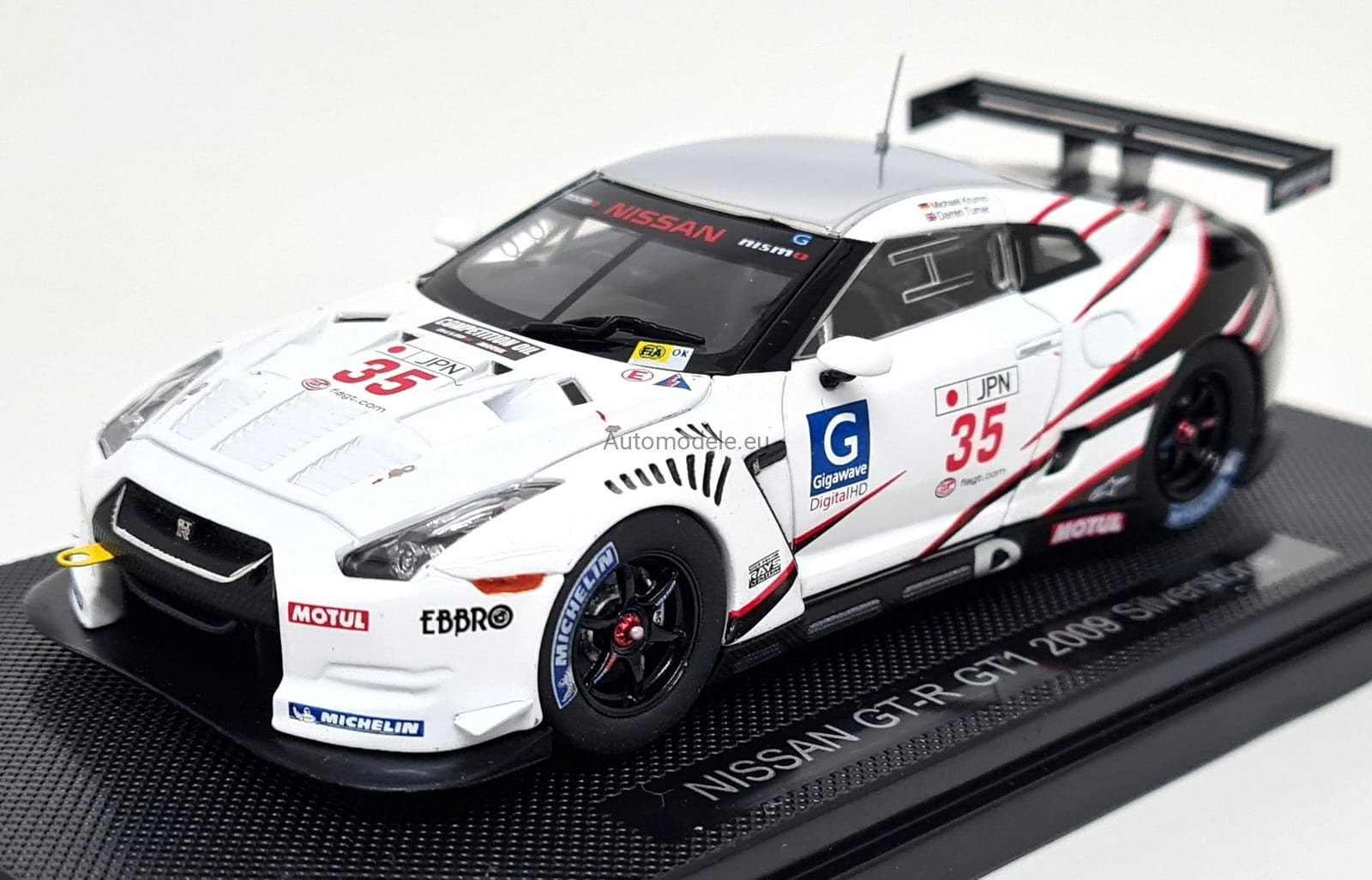 Kolekcjonerski model samochodu Nissan GT-R GTR R35 GT1 #35 FIA GT Championship Silverstone - Turner, Krumm z 2009 roku w skali 1:43 od Ebbro