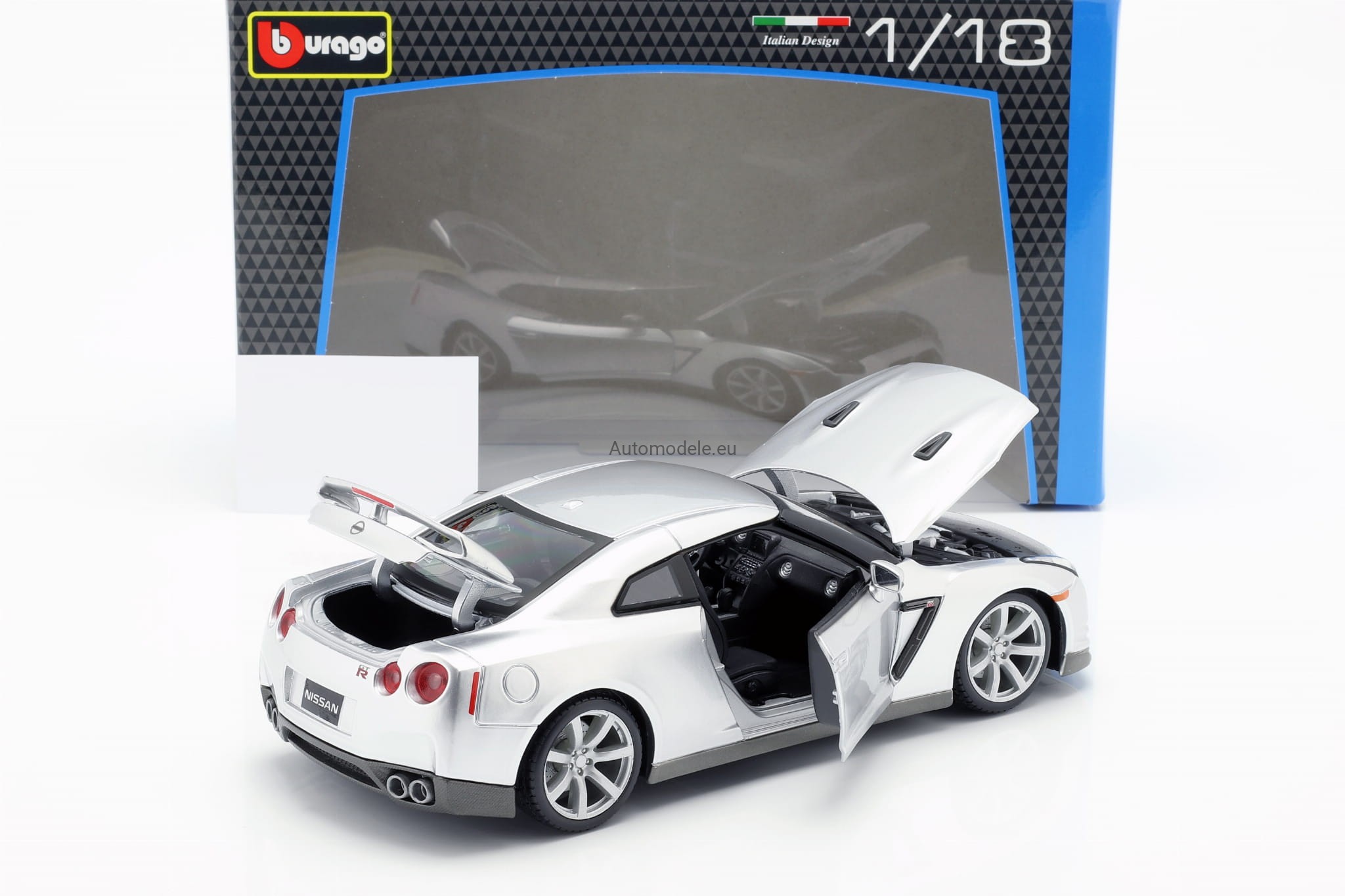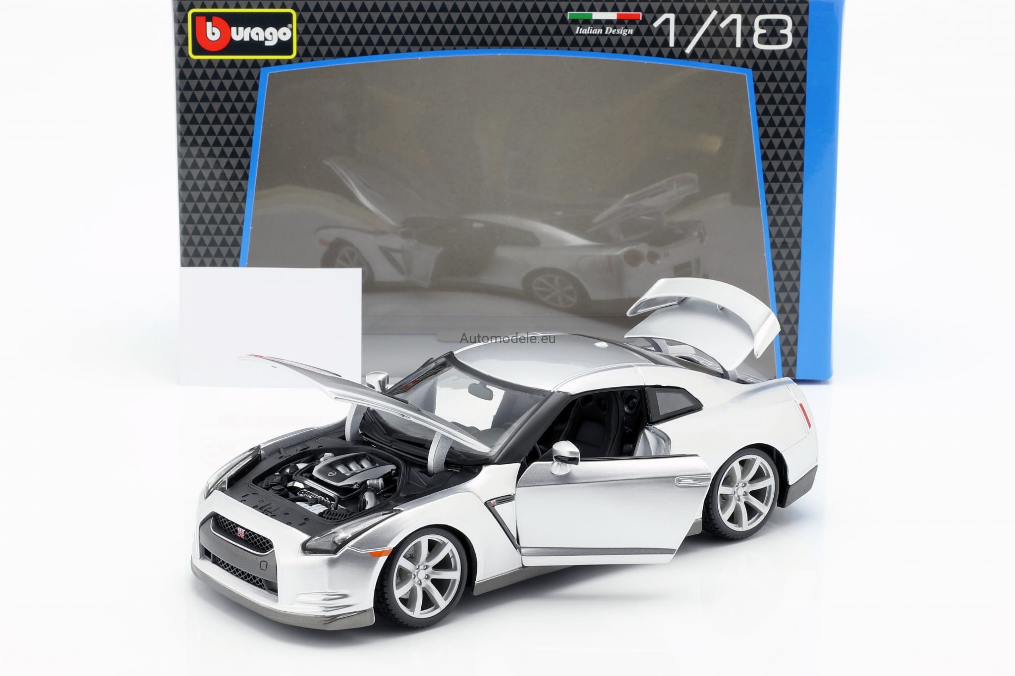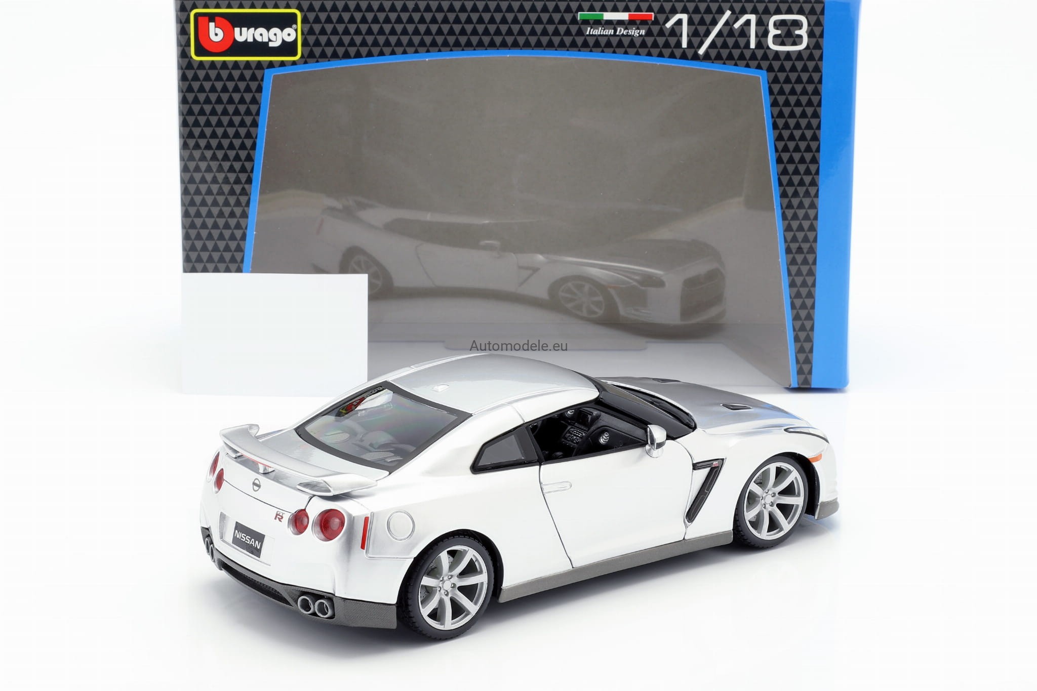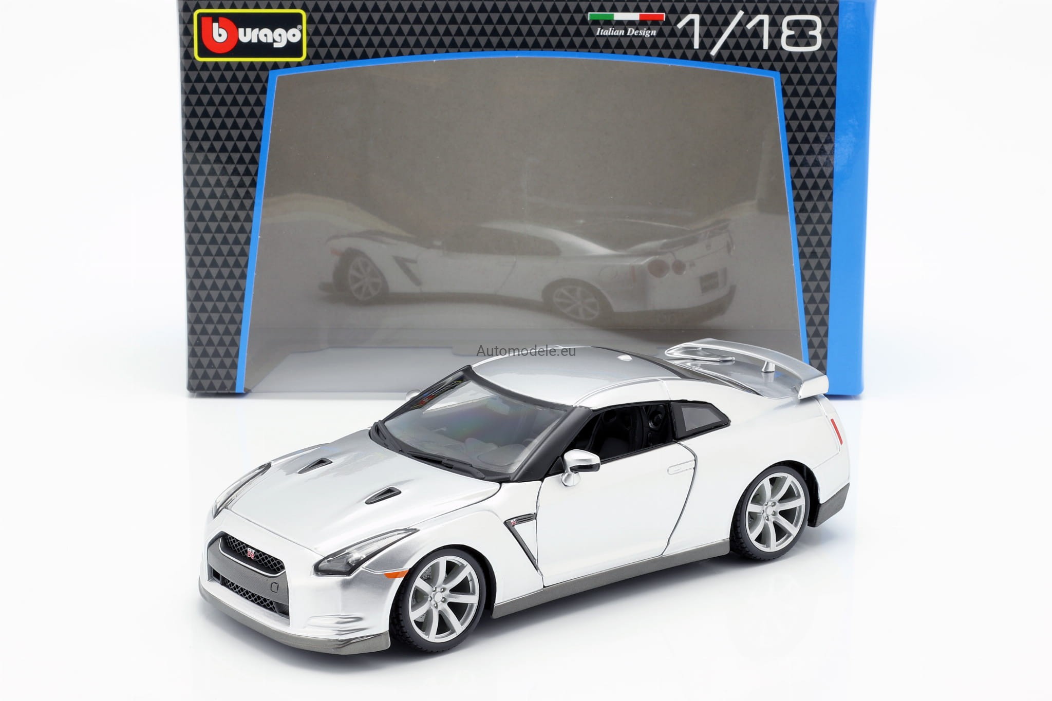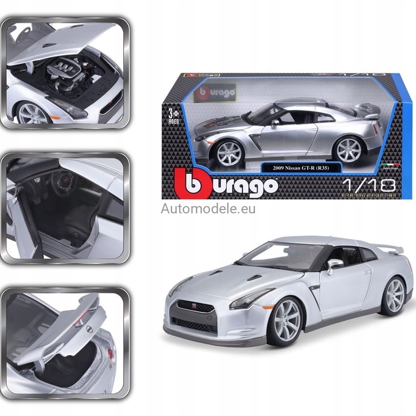 Model samochodu Nissan GT-R z 2009 roku w skali 1:18 od Bburago. Numer katalogowy: 12079S
